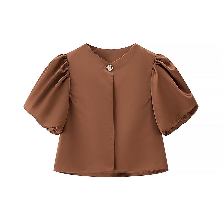2025 primavera nuevo top de calle europeo y americano transfronterizo para mujer moda casual camisa de manga abullonada w091 2536