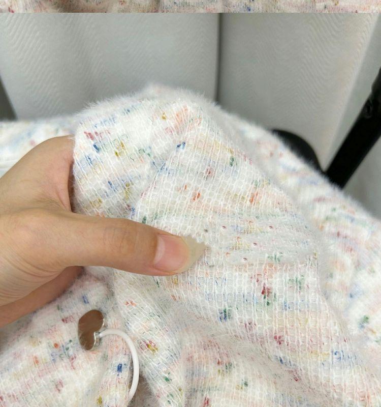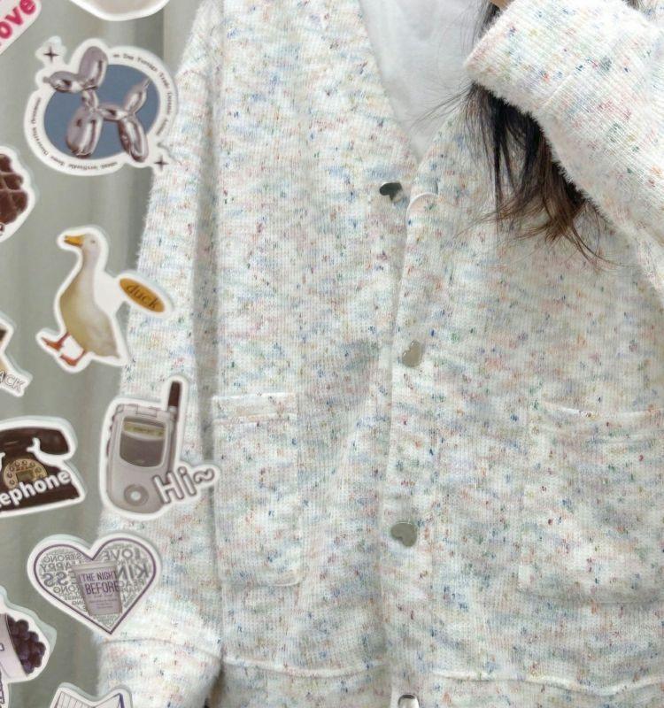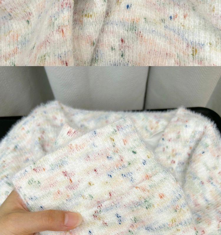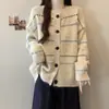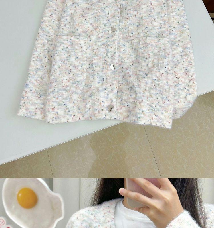 Chaqueta tipo suéter de punto con lunares de color estilo Chanel para mujer, estilo coreano, primavera 2024, nueva, de alta gama, holgada e informal.