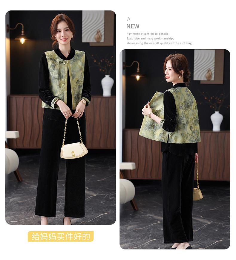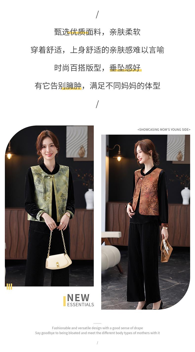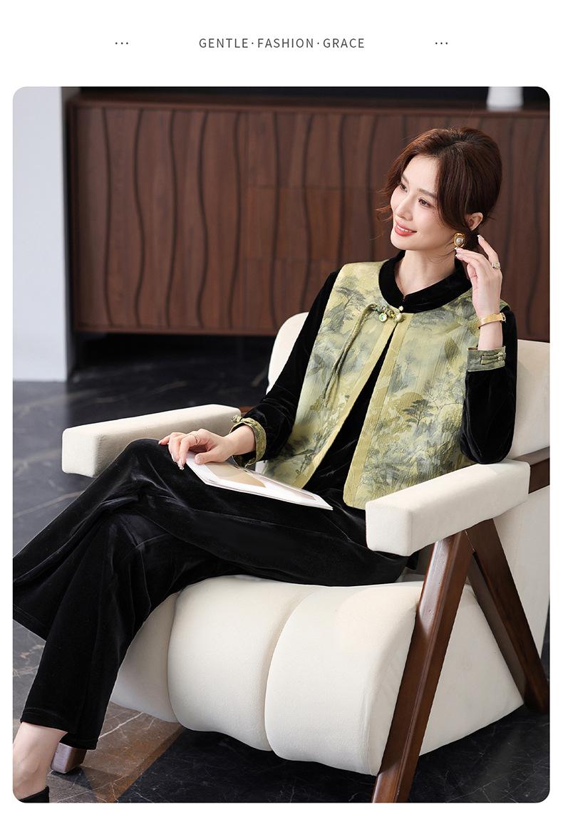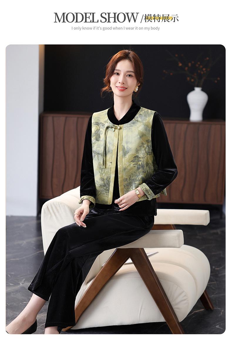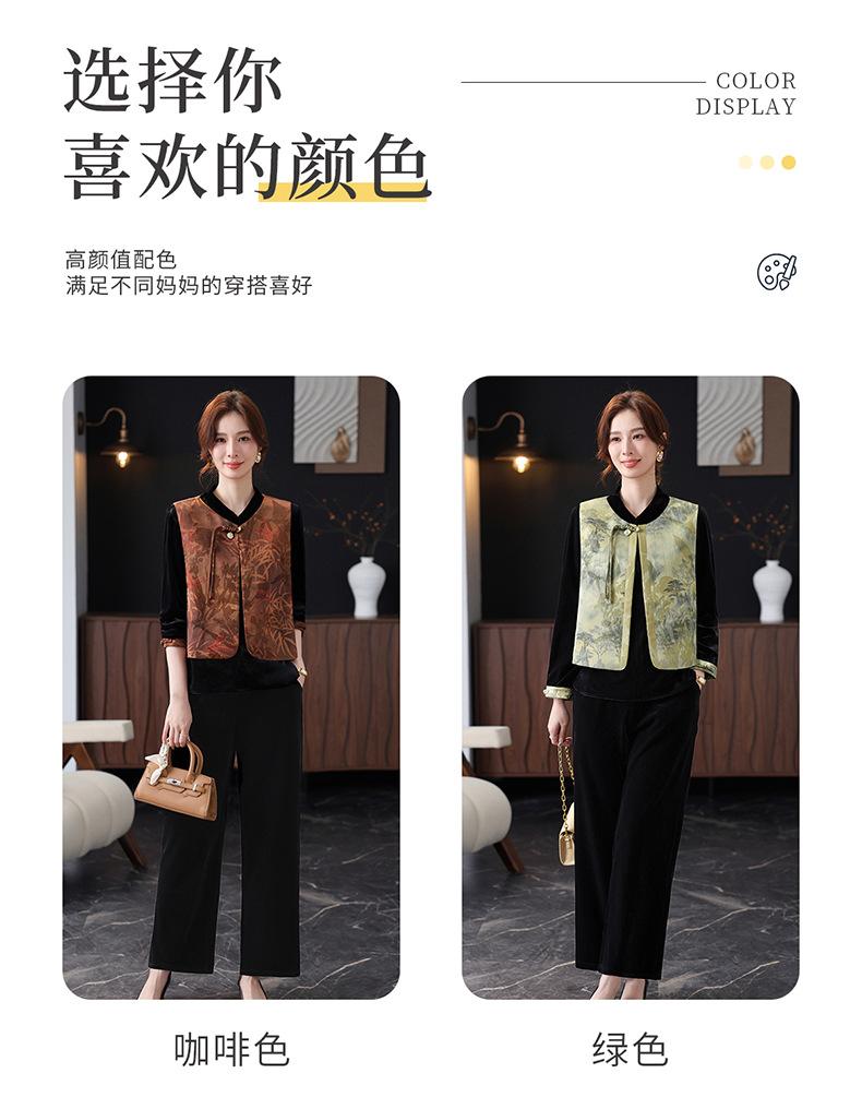 Nuevo chaleco de estilo nacional chino, nuevo traje, vestido de madre 2025, elegante conjunto de tres piezas de estilo occidental para mujeres de mediana edad.