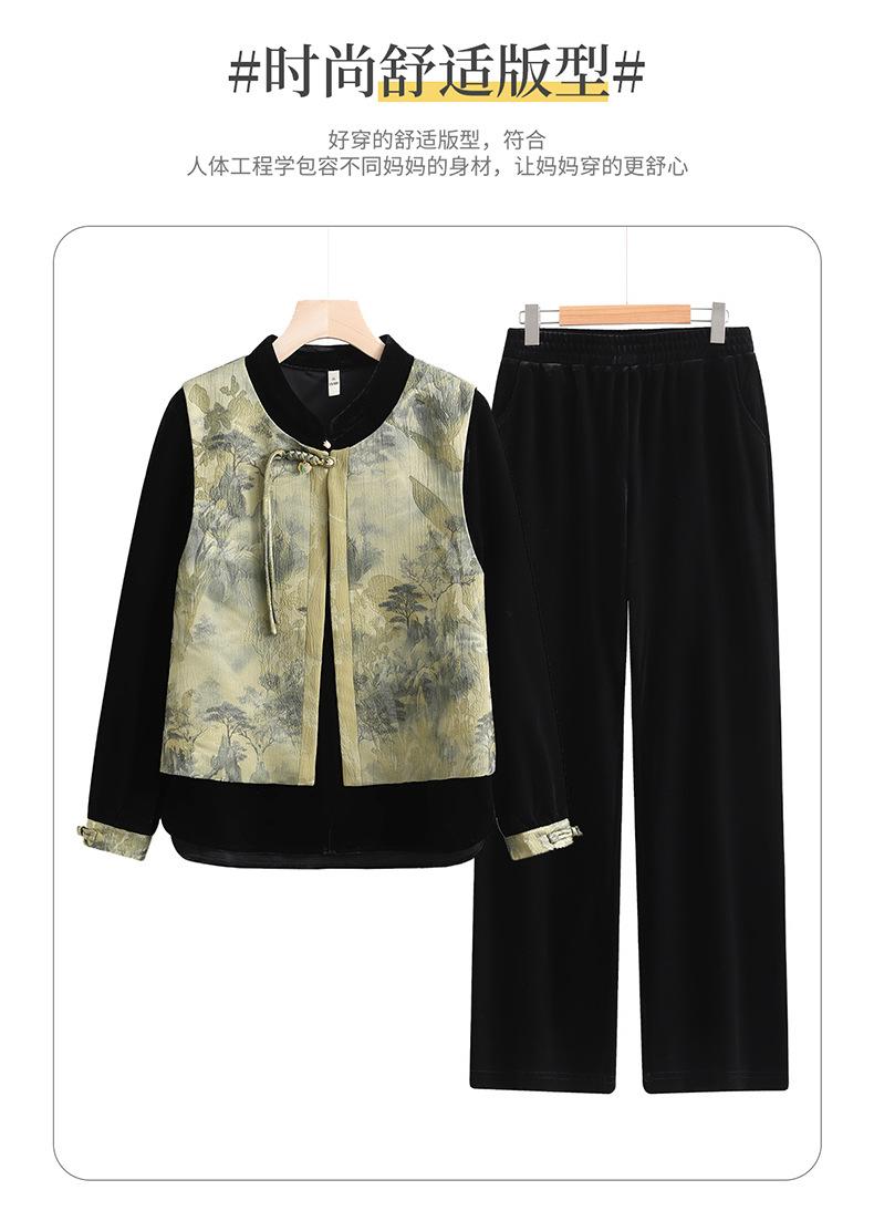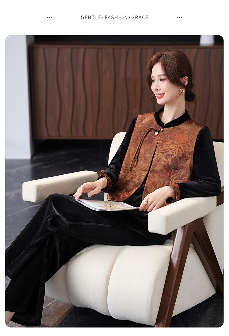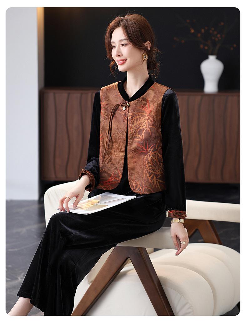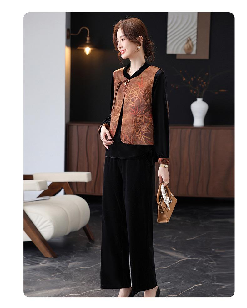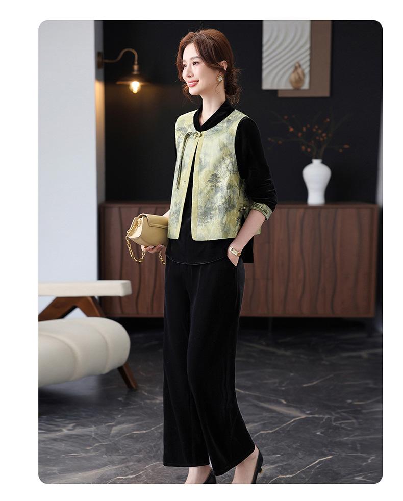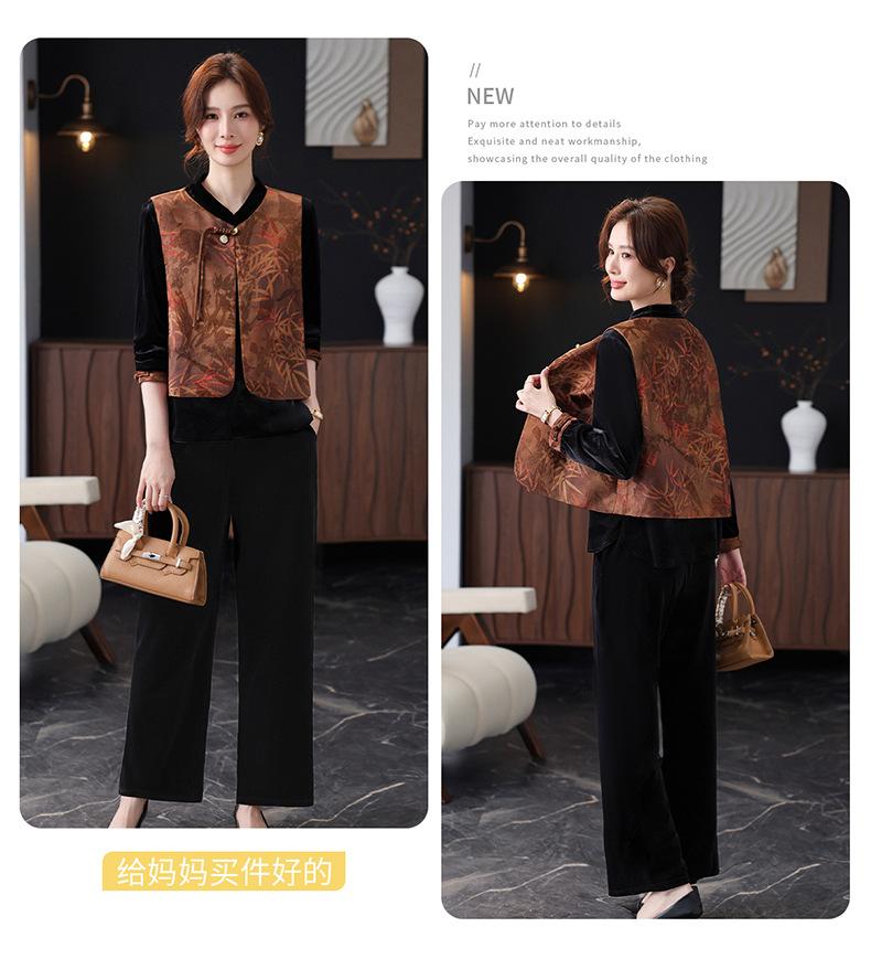 Nuevo chaleco de estilo nacional chino, nuevo traje, vestido de madre 2025, elegante conjunto de tres piezas de estilo occidental para mujeres de mediana edad.