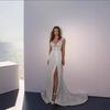 Transfronterizo Europa y América Amazon Vestido de Verano para Mujer Nuevo de Moda Sexy Cuello en V Slim Plisado Color Sólido Venta al por Mayor