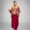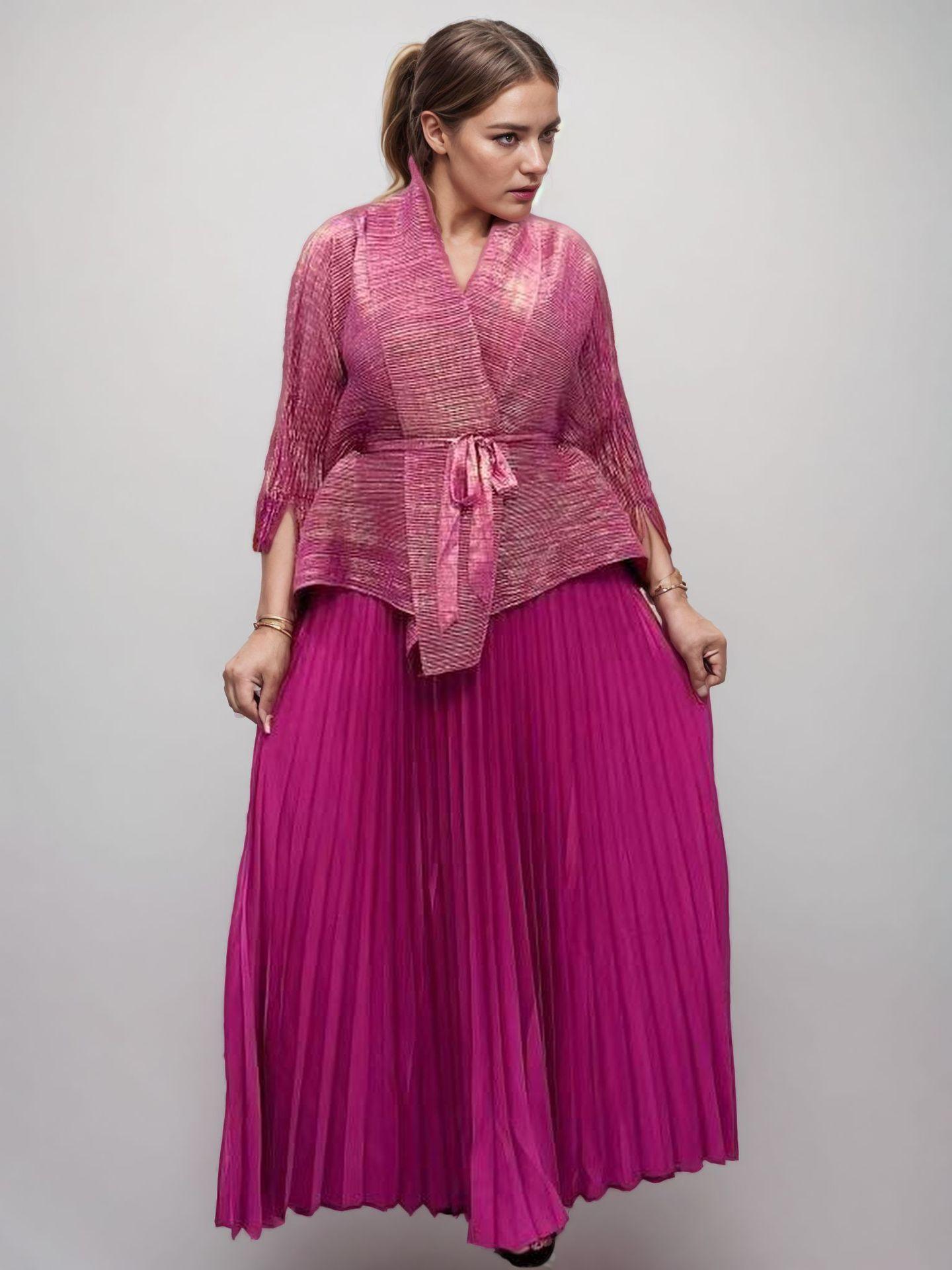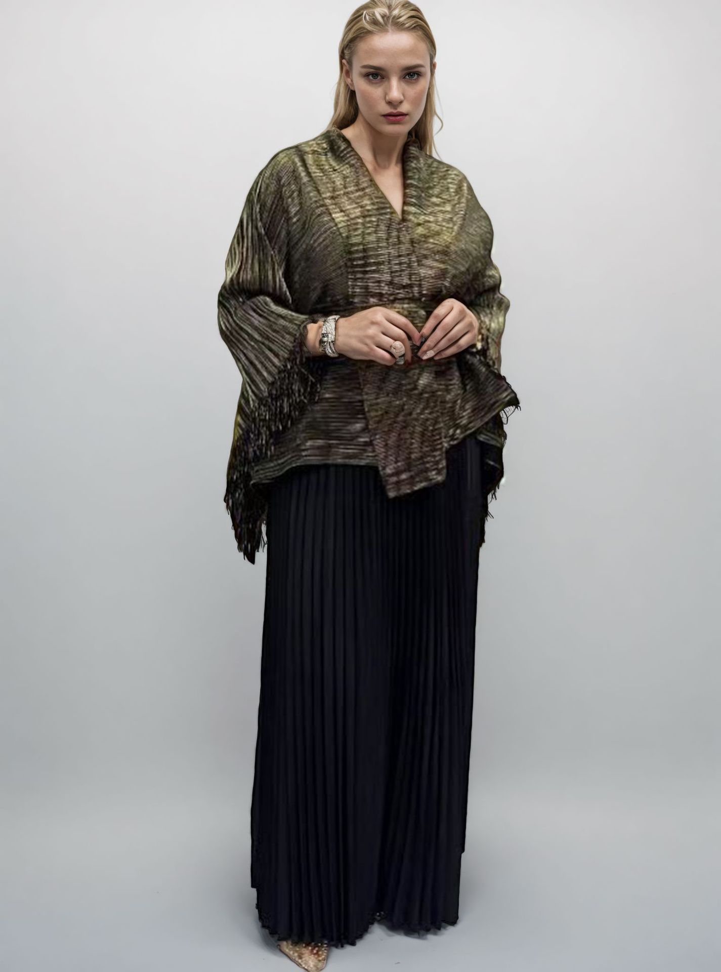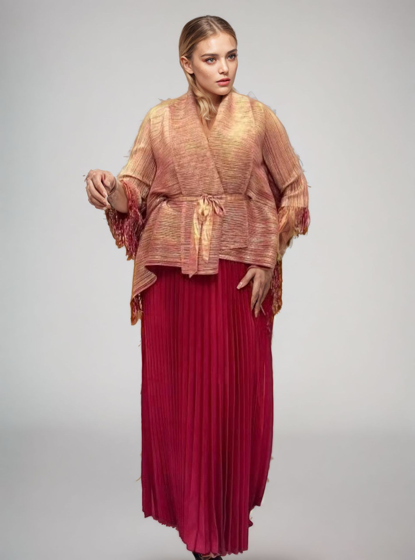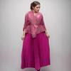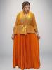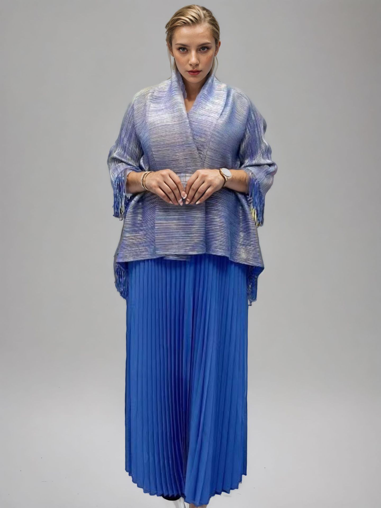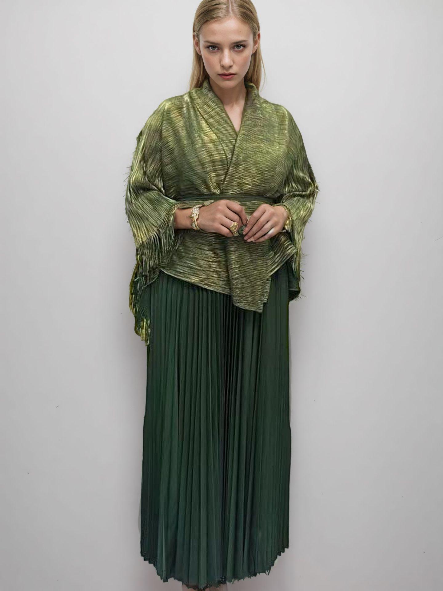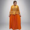 Traje de moda transfronteriza europea y americana para mujer, capa plisada con borlas color bronce, falda larga de cintura alta, conjunto de dos piezas