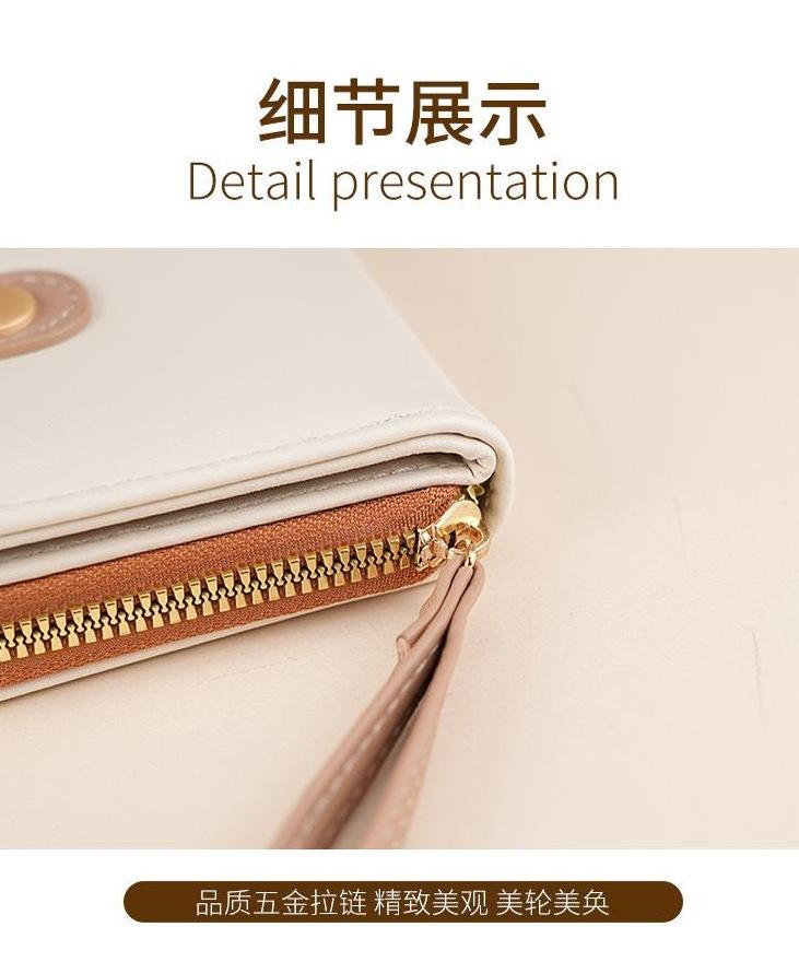 Cartera de mujer de color sólido, nueva, sencilla, de gran capacidad, con cremallera, para niñas, venta al por mayor, 2024