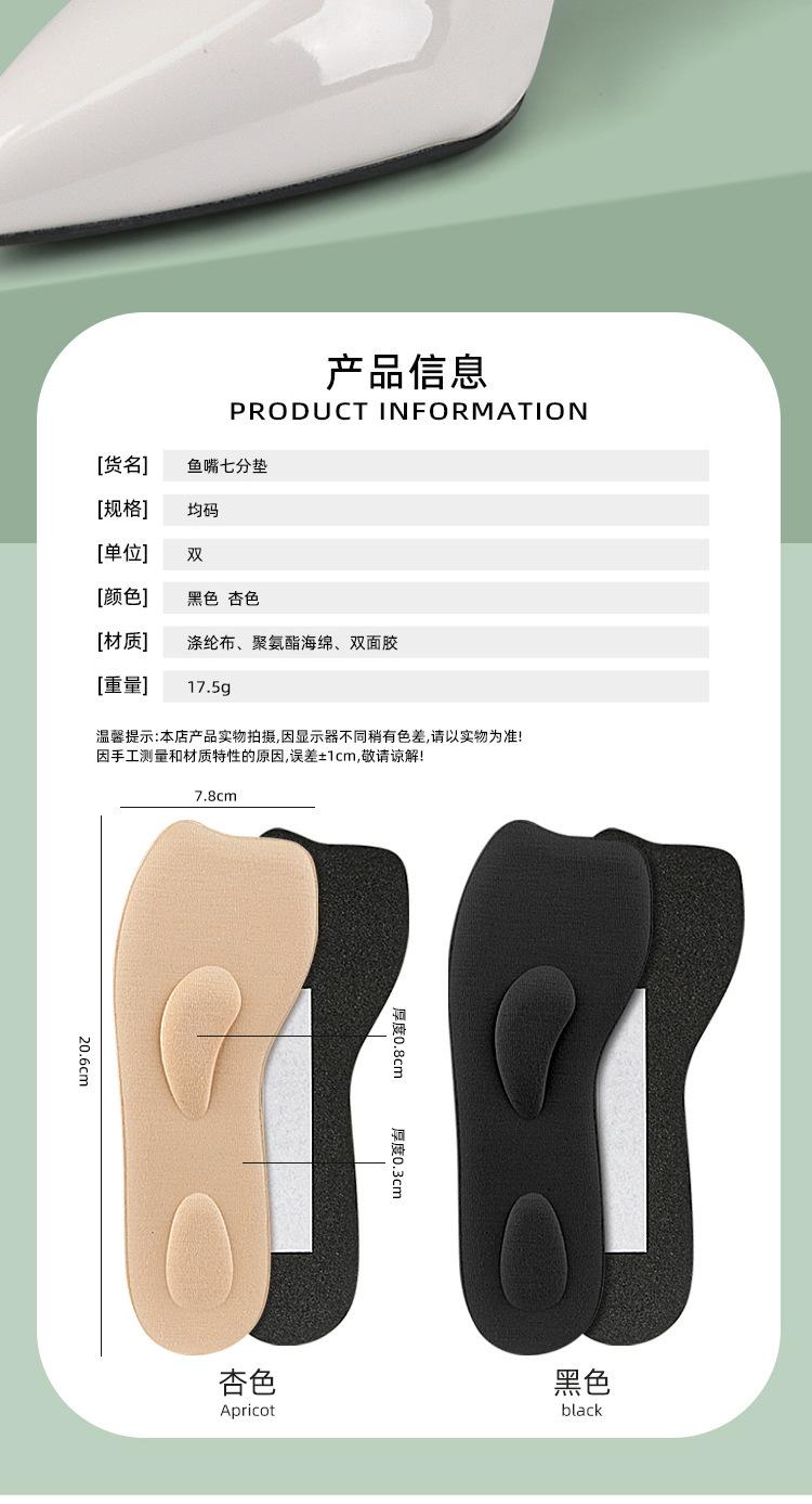 Almohadilla de esponja de boca de pez de siete puntos para zapatos de tacón alto, plantilla de malla que absorbe los impactos y el sudor, almohadilla para el antepié, almohadilla de masaje para el arco