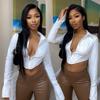 2023 Amazon - Camisa de gasa con cuello transfronterizo para primavera y verano, nueva camiseta sexy de color sólido europea y americana para mujer