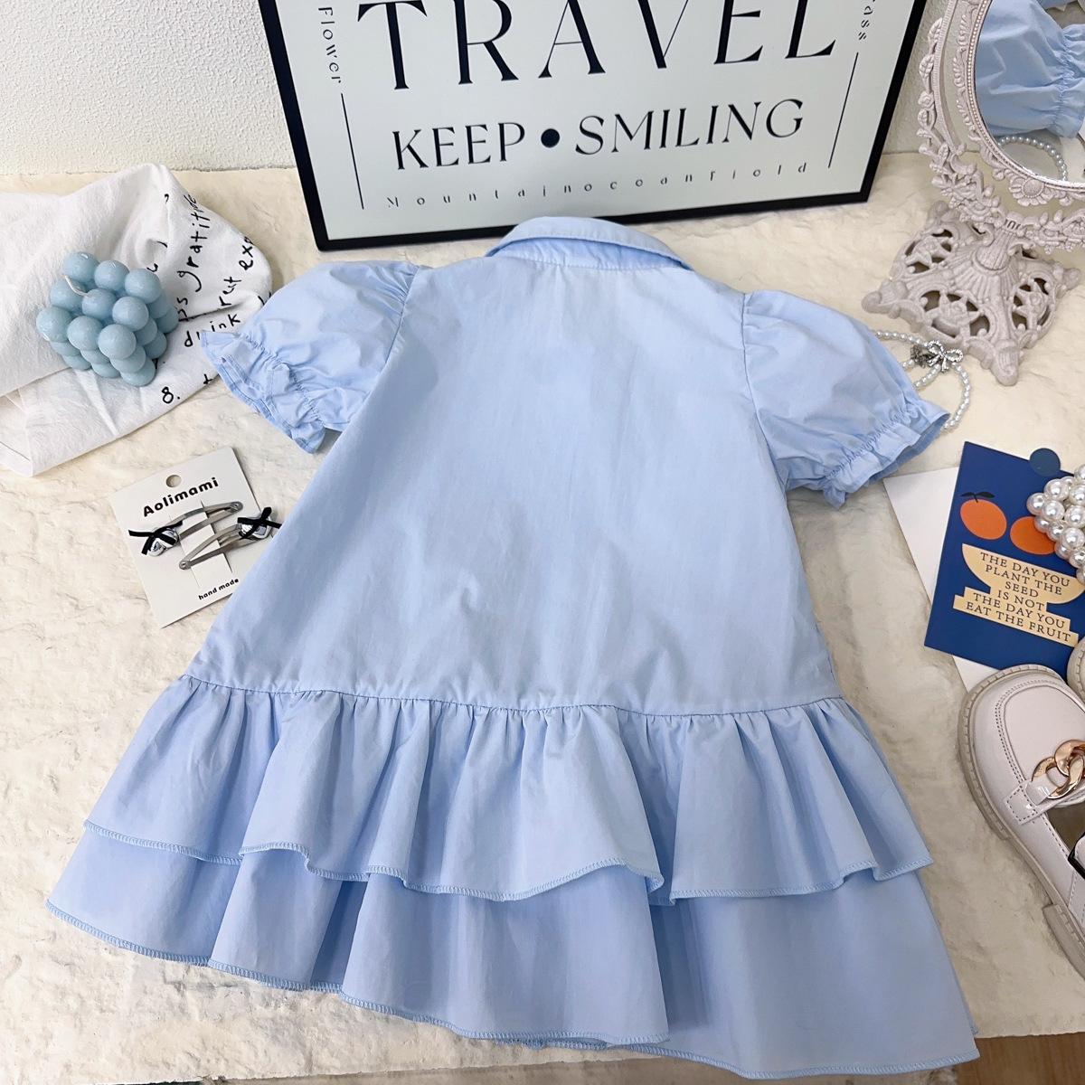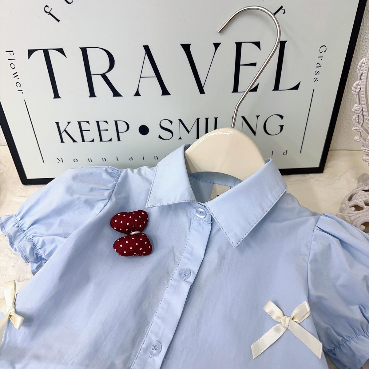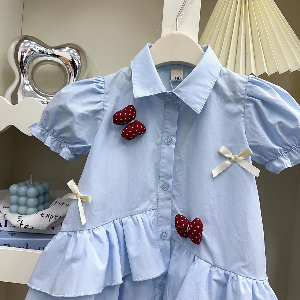 Vestido camisero para niña, estilo coreano de verano 2025, manga corta, nuevo estilo, vestido de princesa con lazo para niña pequeña.