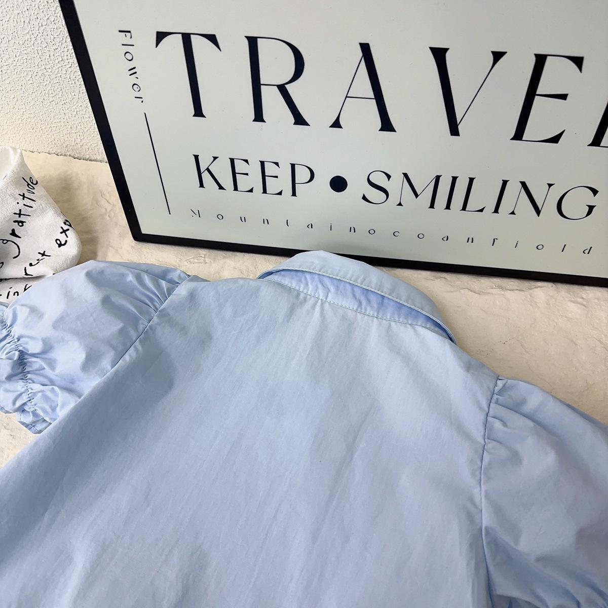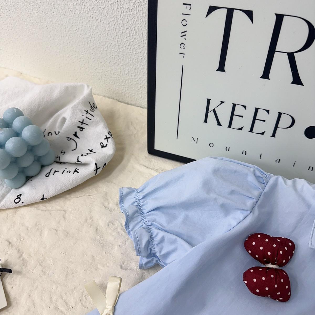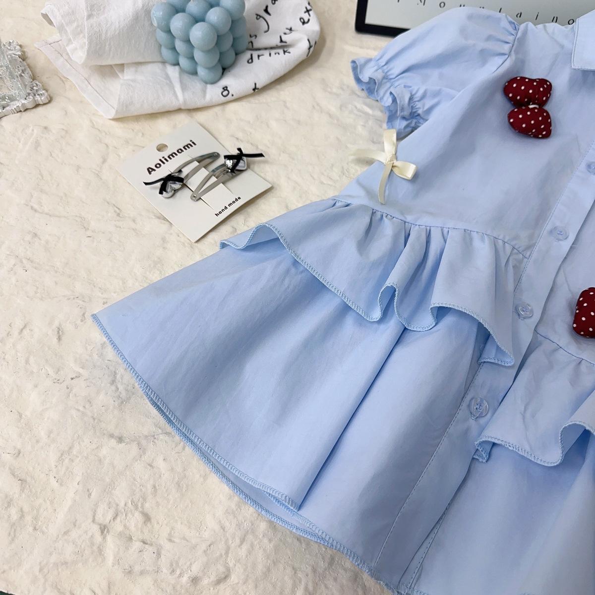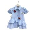 Vestido camisero para niña, estilo coreano de verano 2025, manga corta, nuevo estilo, vestido de princesa con lazo para niña pequeña.