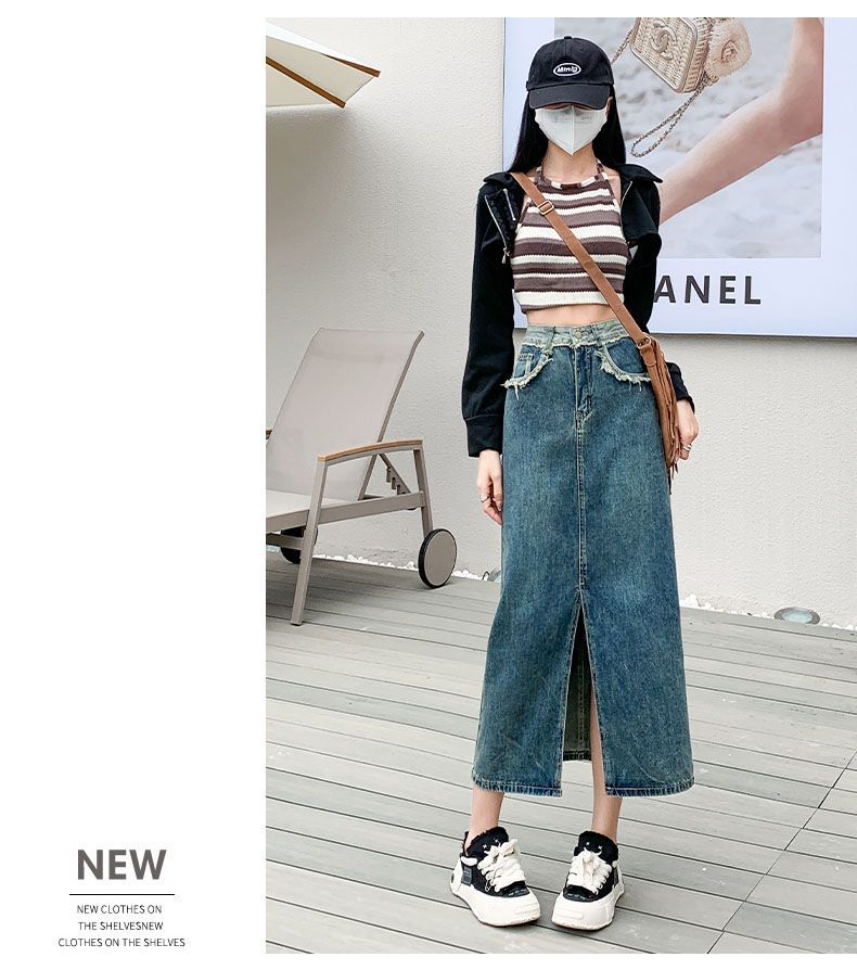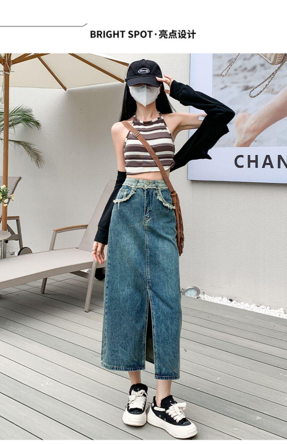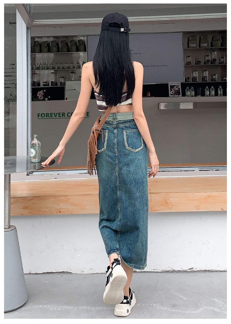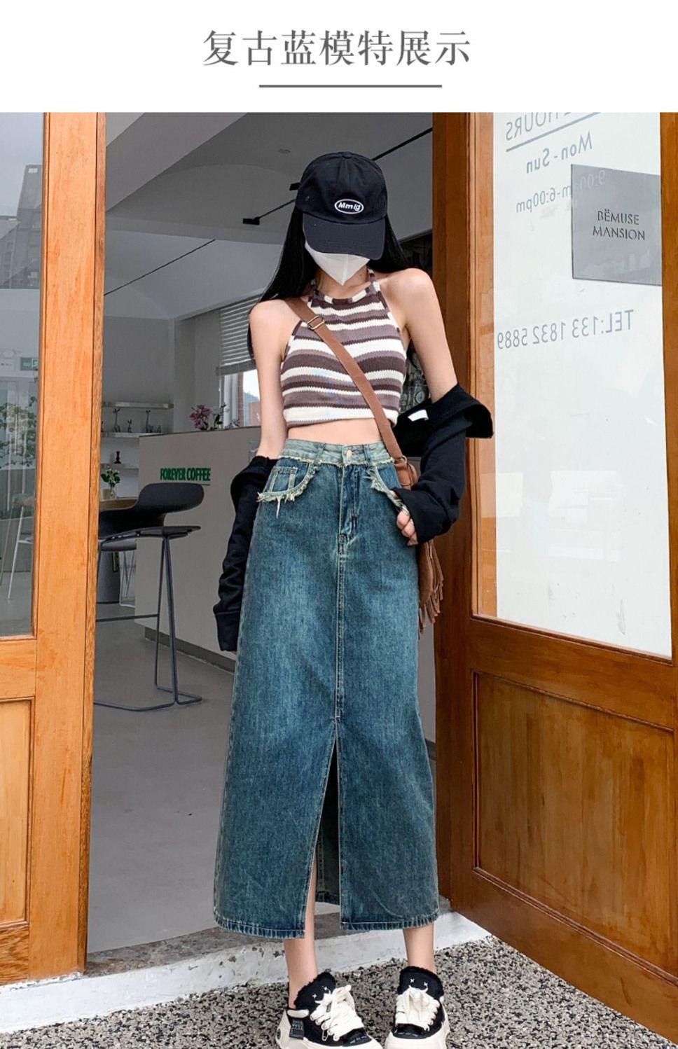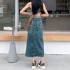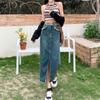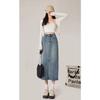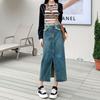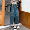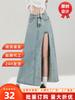 Falda vaquera con abertura en la cadera, estilo retro azul, nueva 2025, con cintura alta, adelgazante, corte A, para mujeres de estilo nicho.