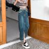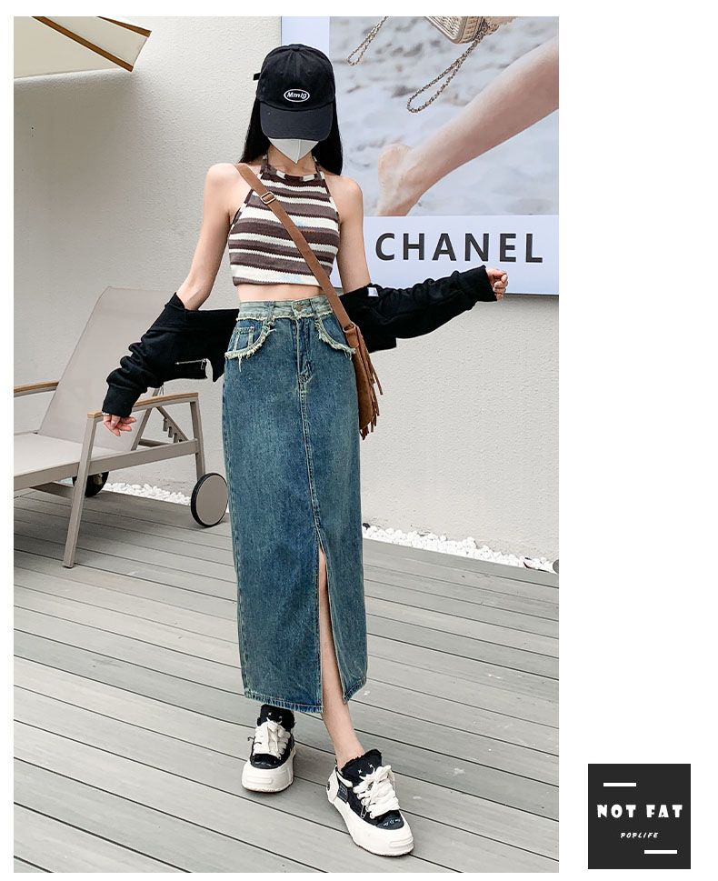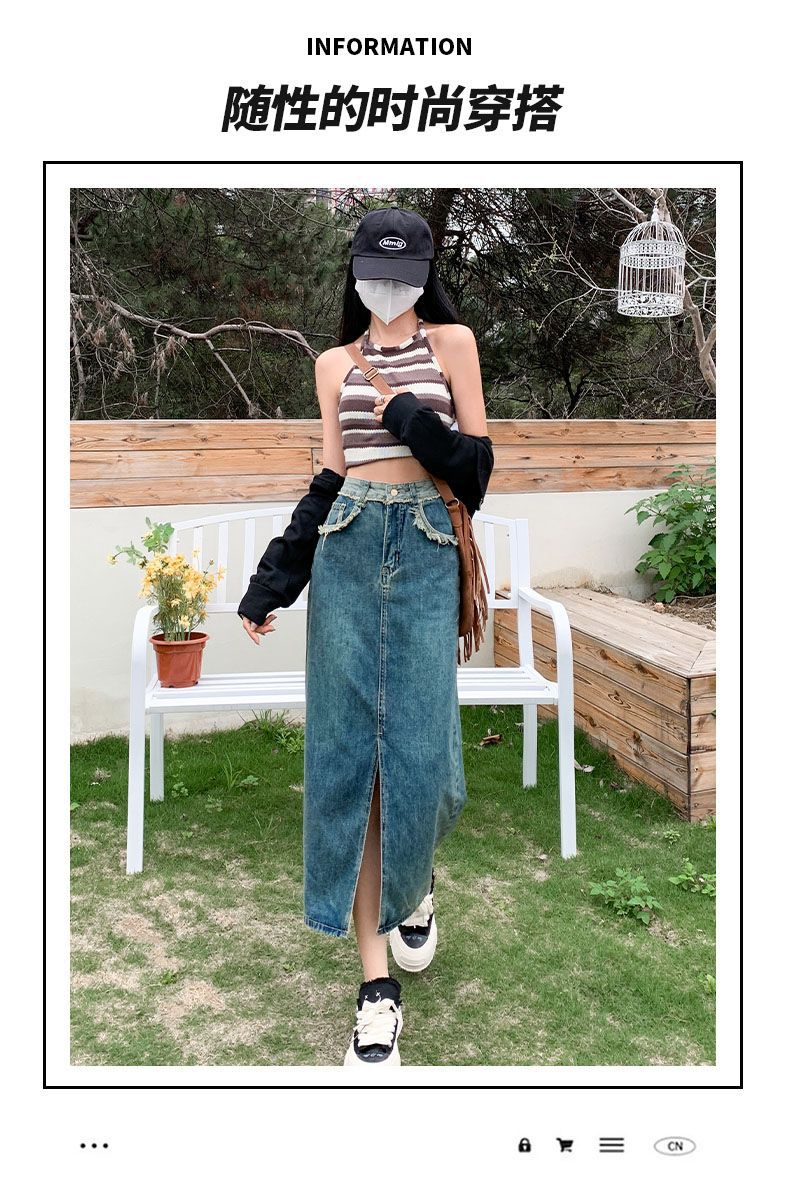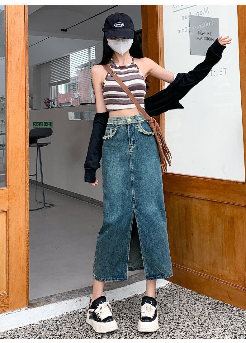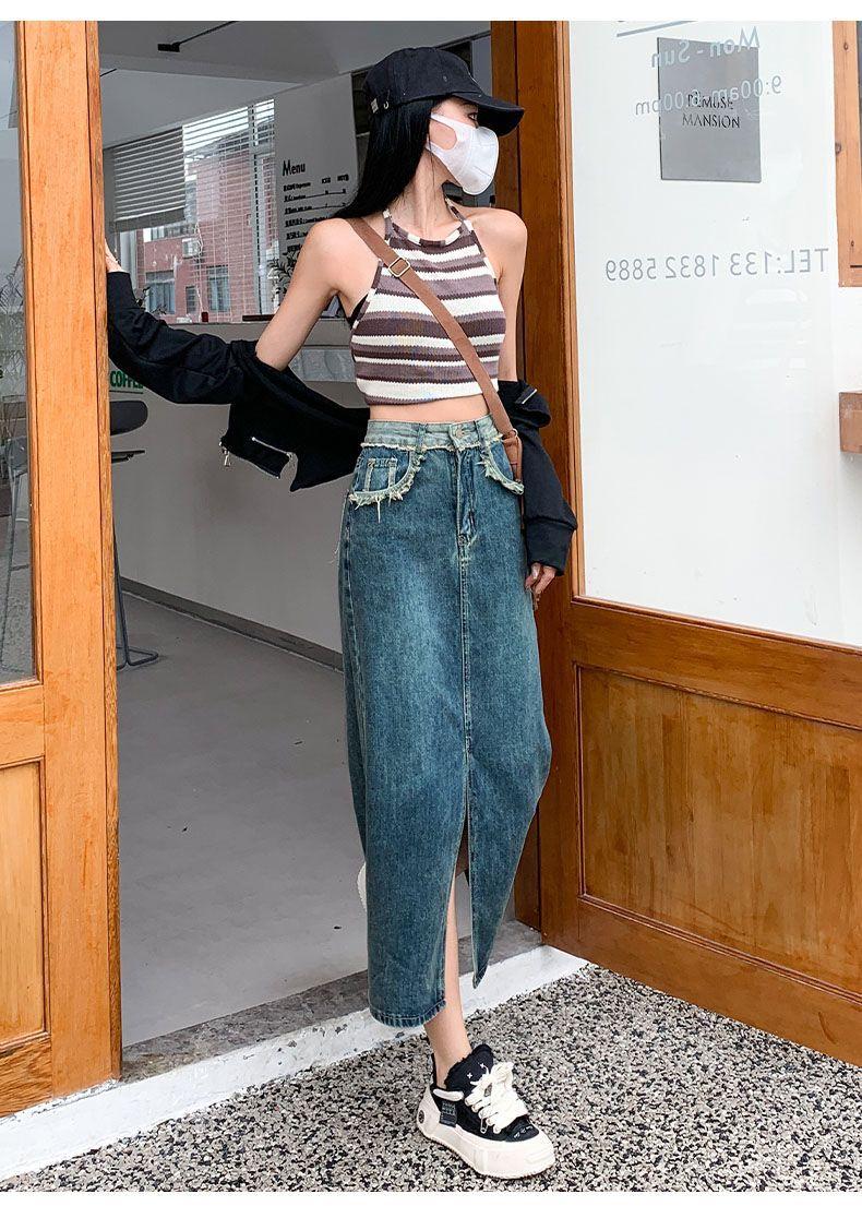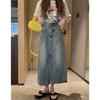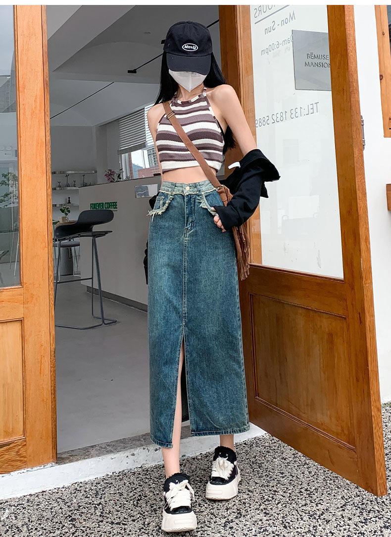 Falda vaquera con abertura en la cadera, estilo retro azul, nueva 2025, con cintura alta, adelgazante, corte A, para mujeres de estilo nicho.