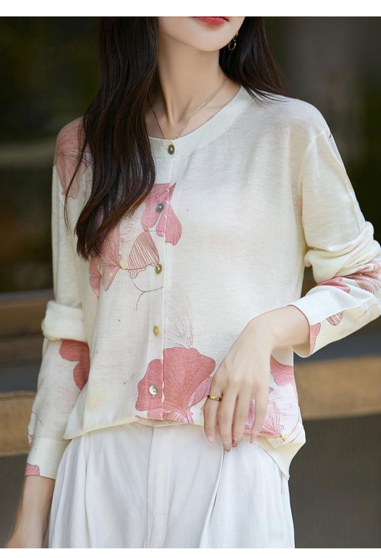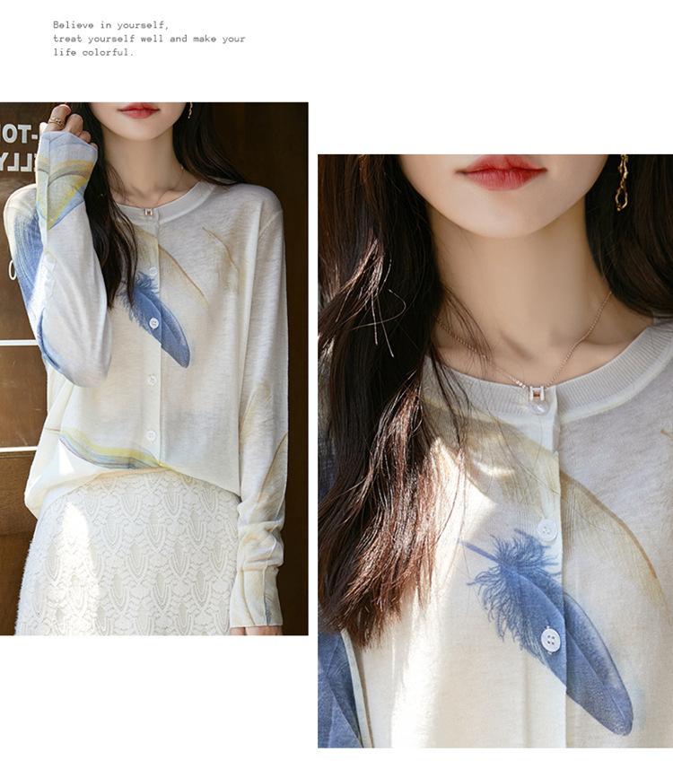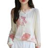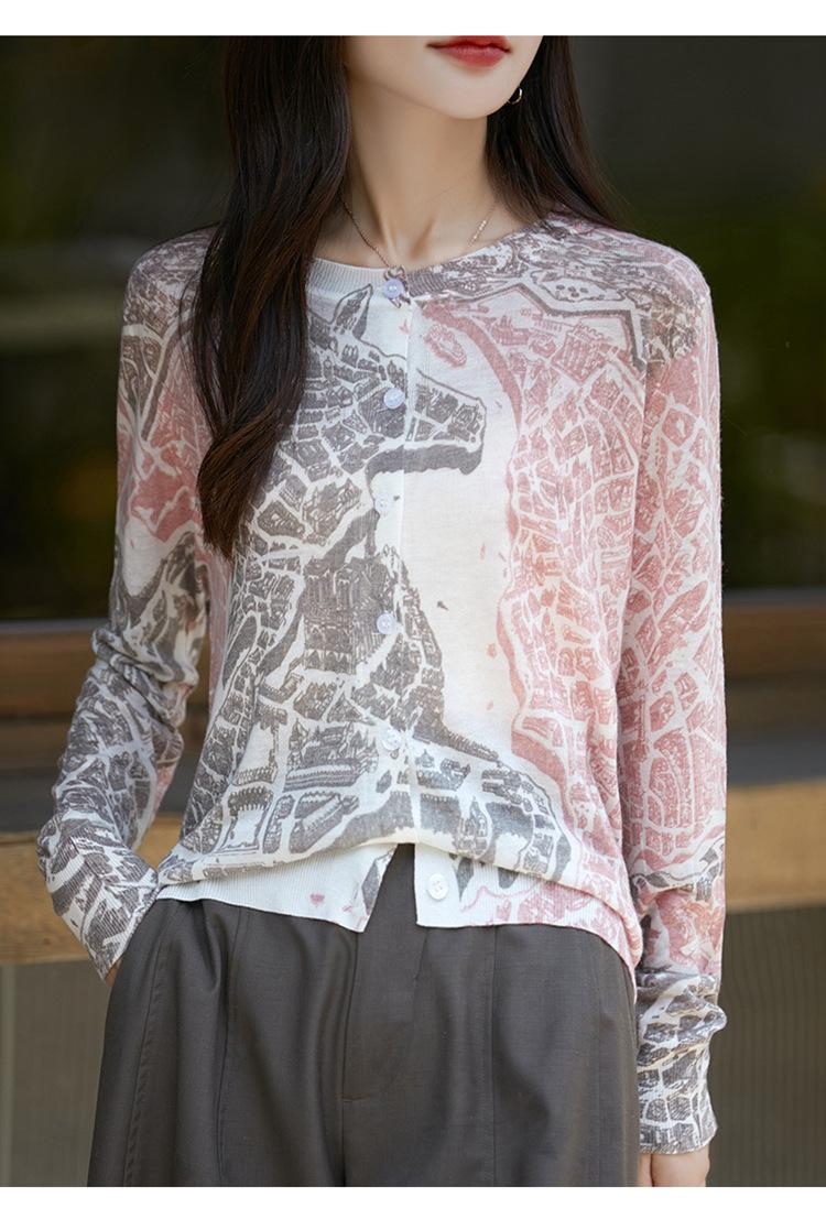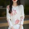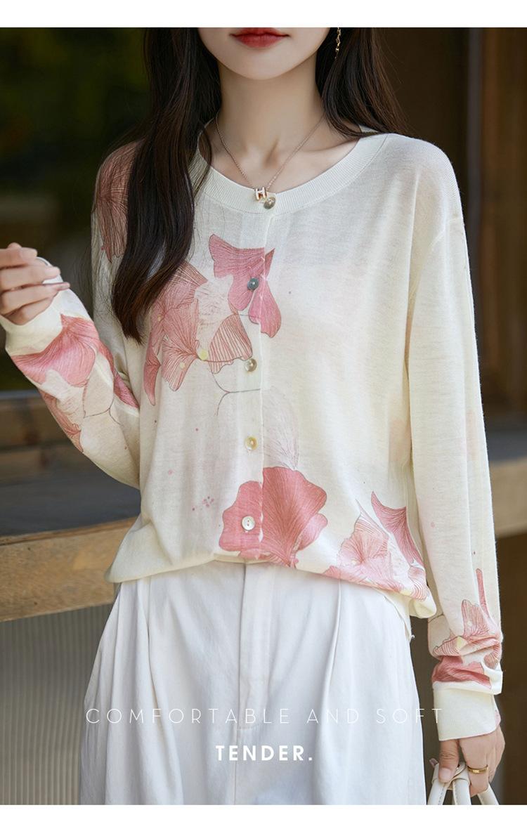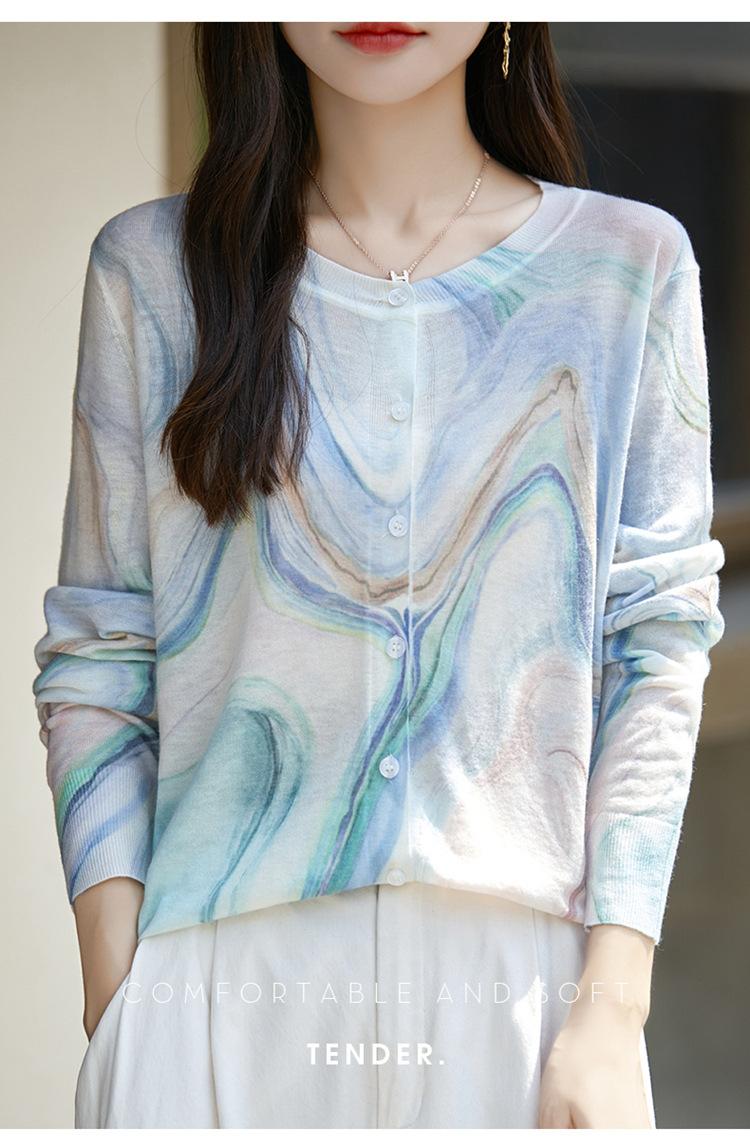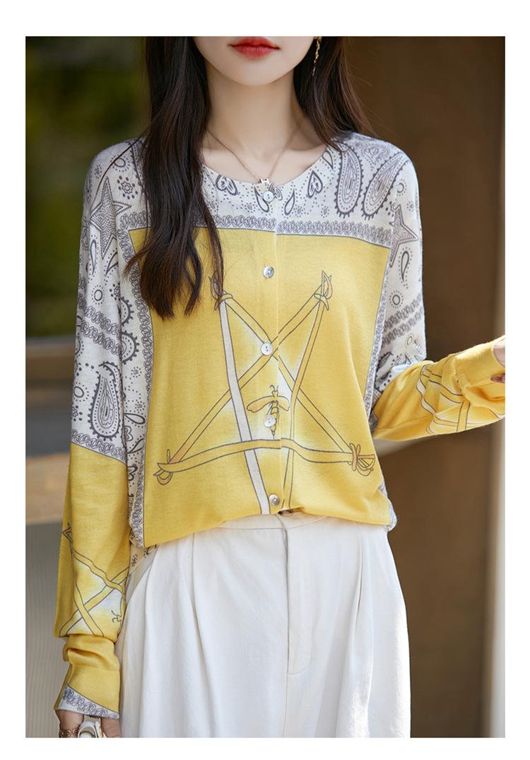 Cárdigan de punto con cuello redondo de lana peinada informal de primavera y verano, elegante top holgado con estampado que combina con todo para mujer