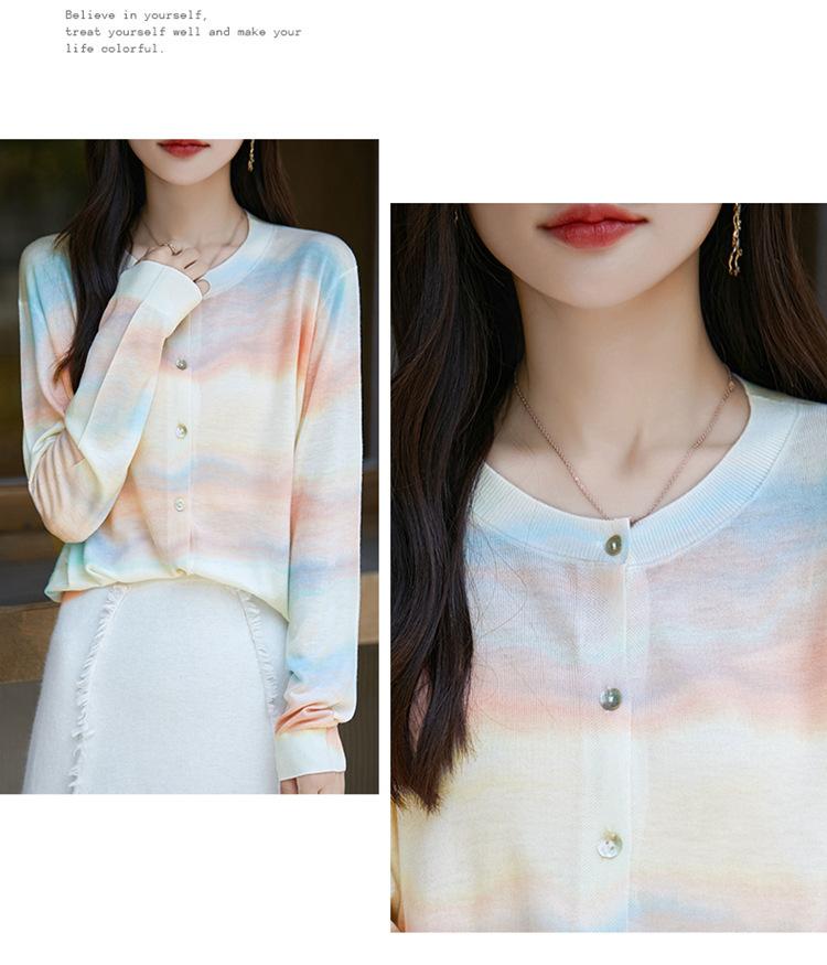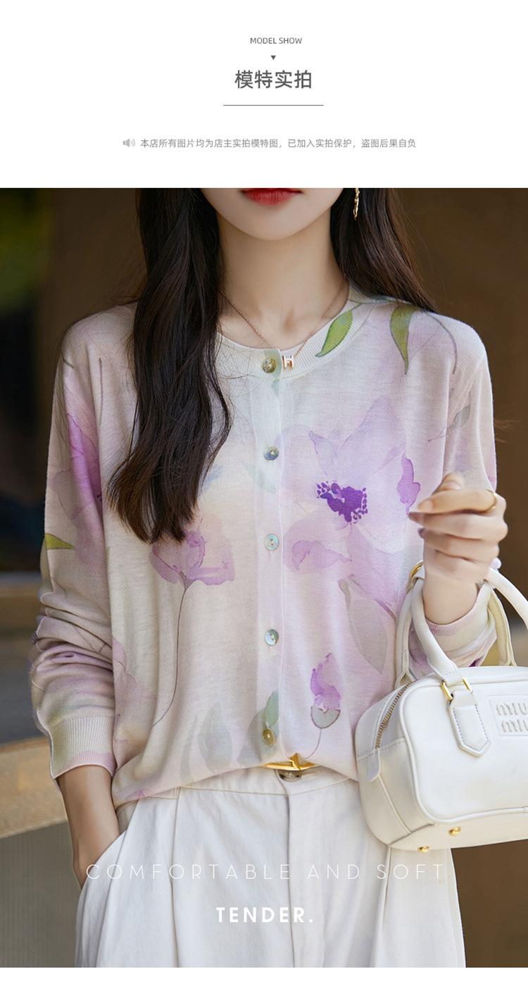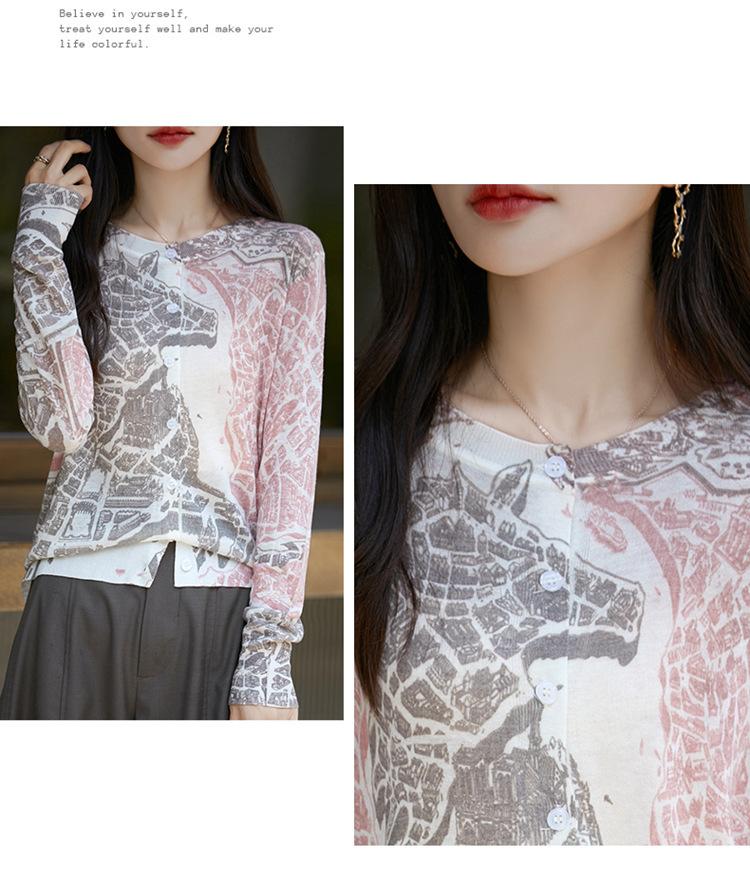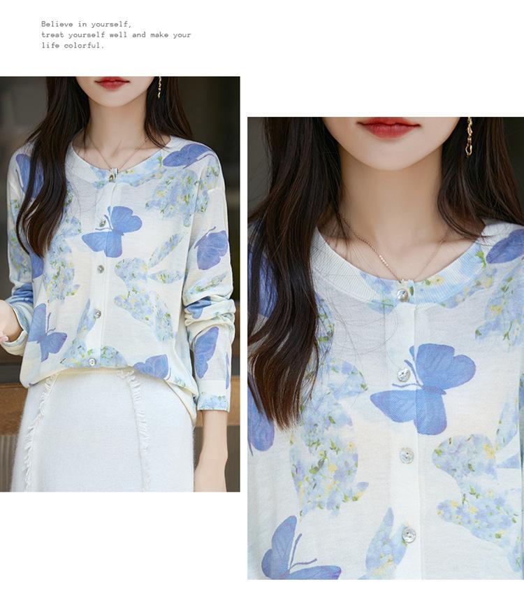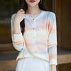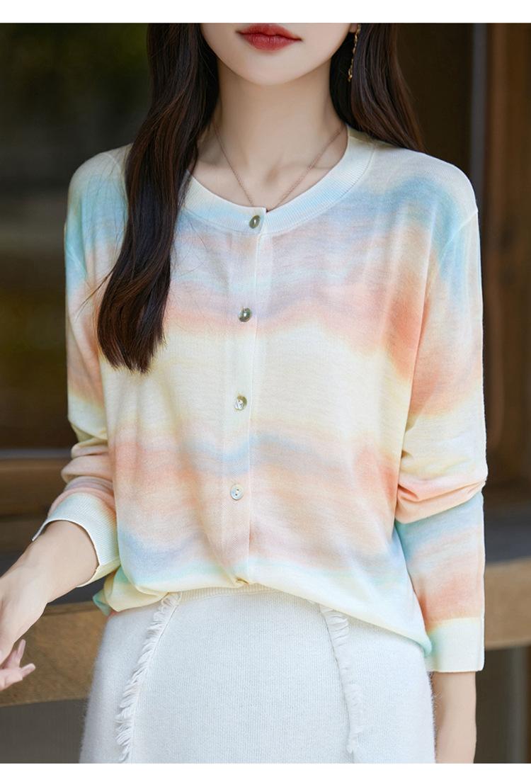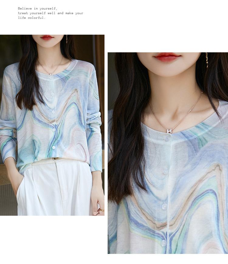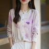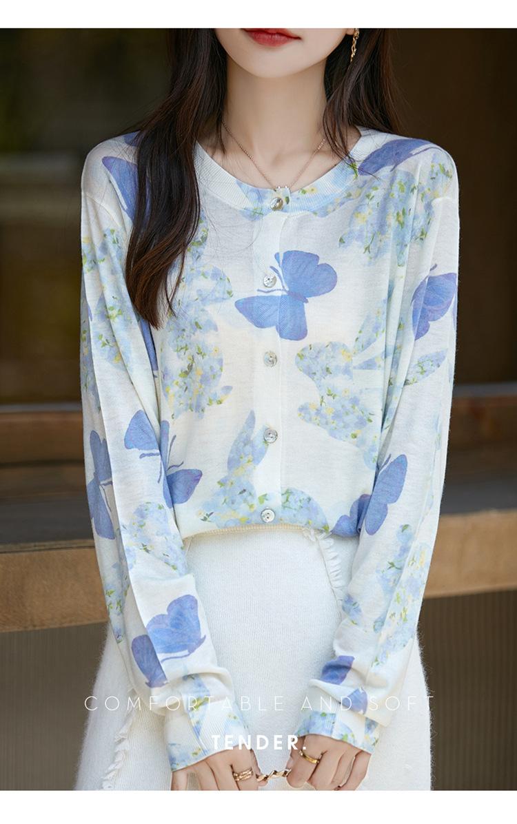 Cárdigan de punto con cuello redondo de lana peinada informal de primavera y verano, elegante top holgado con estampado que combina con todo para mujer