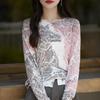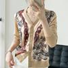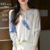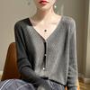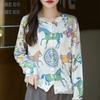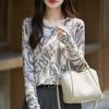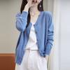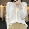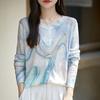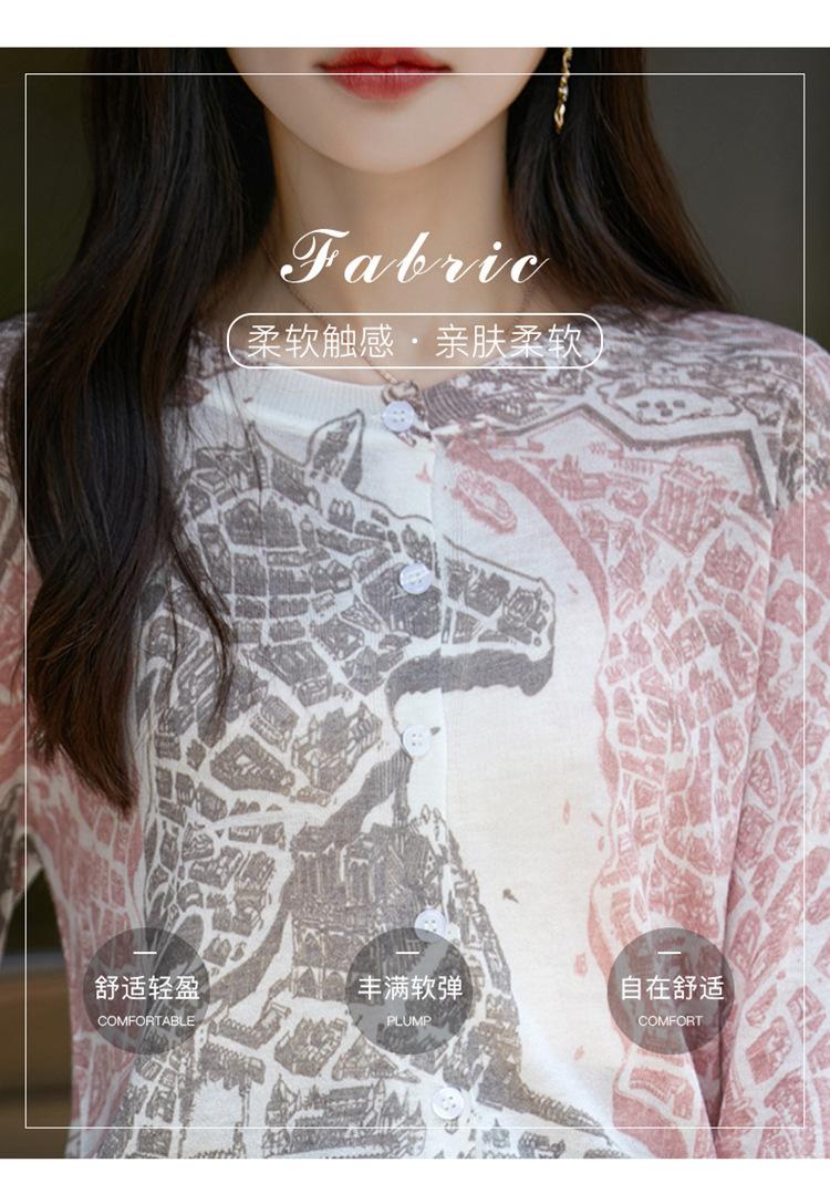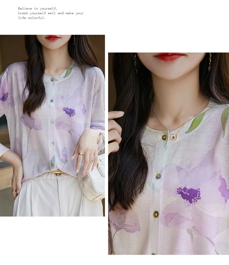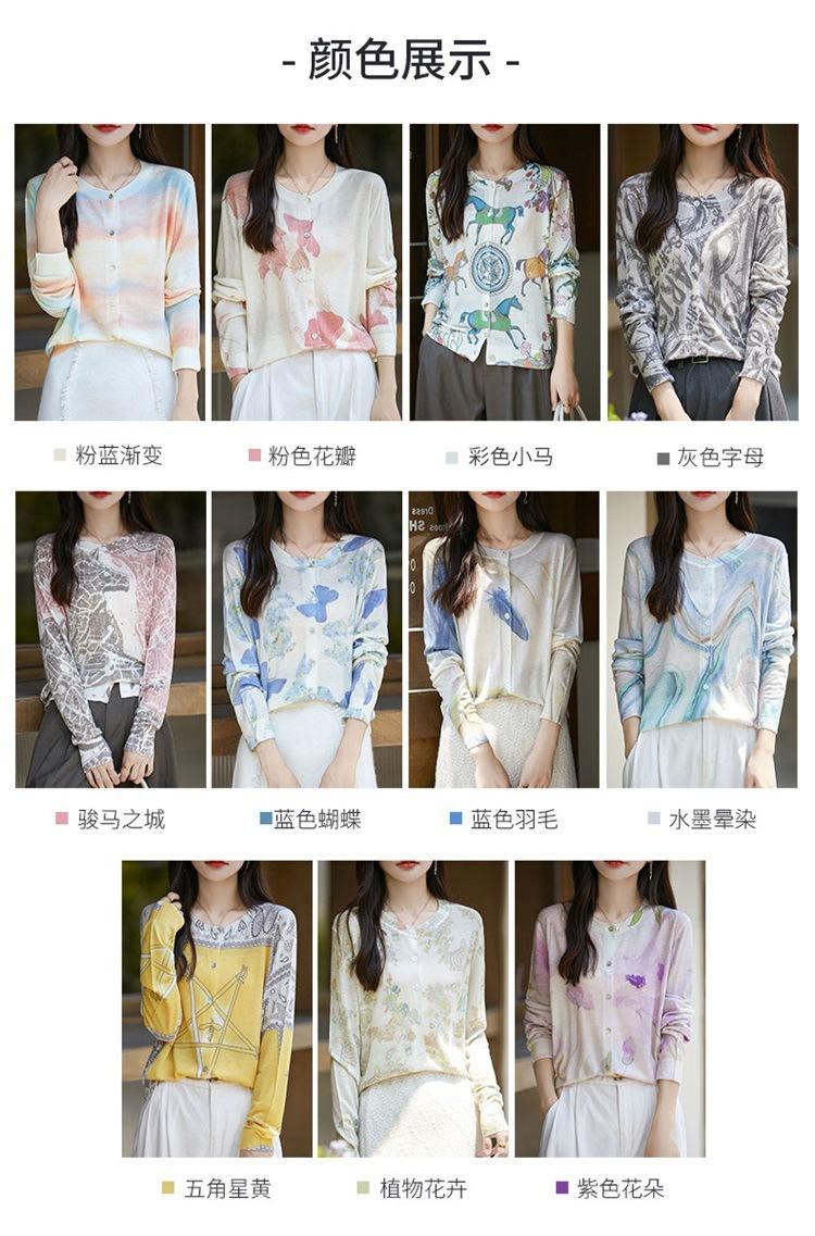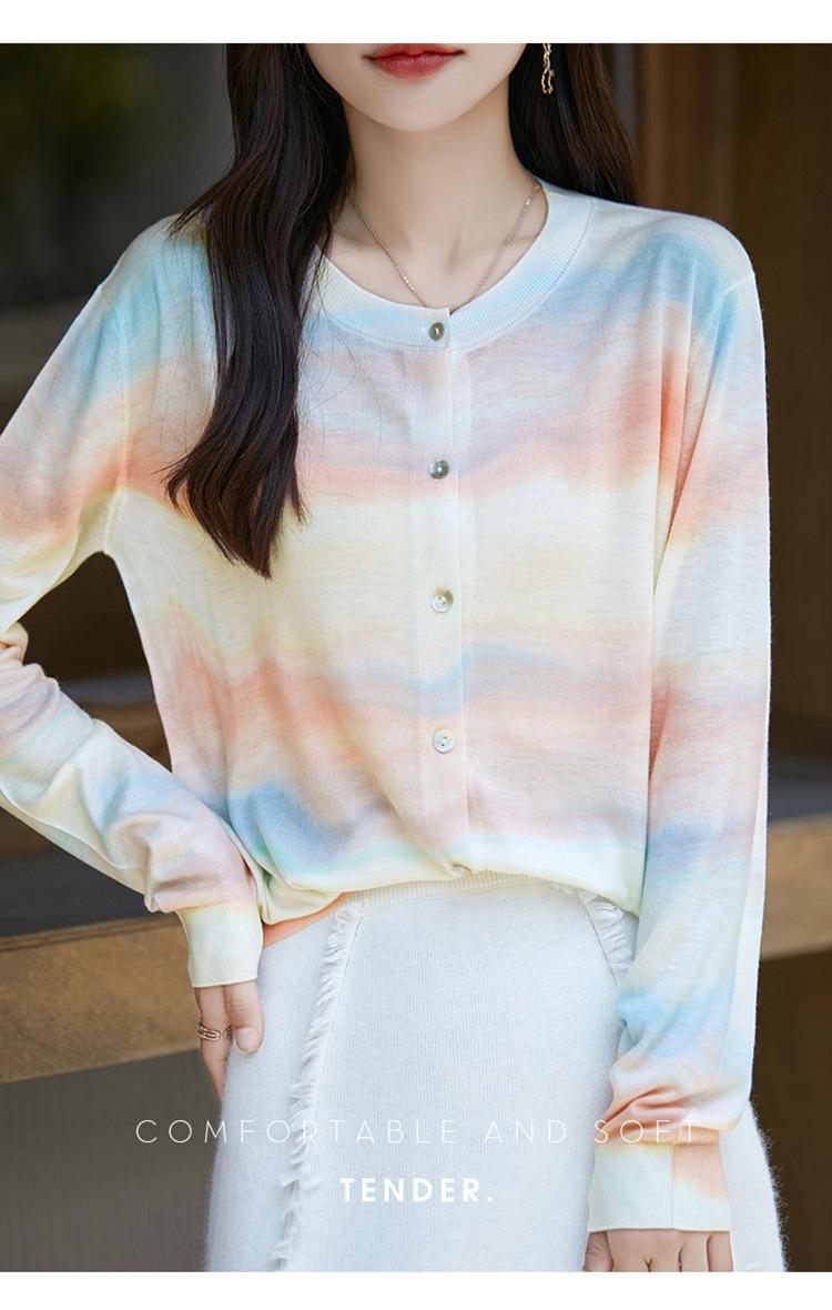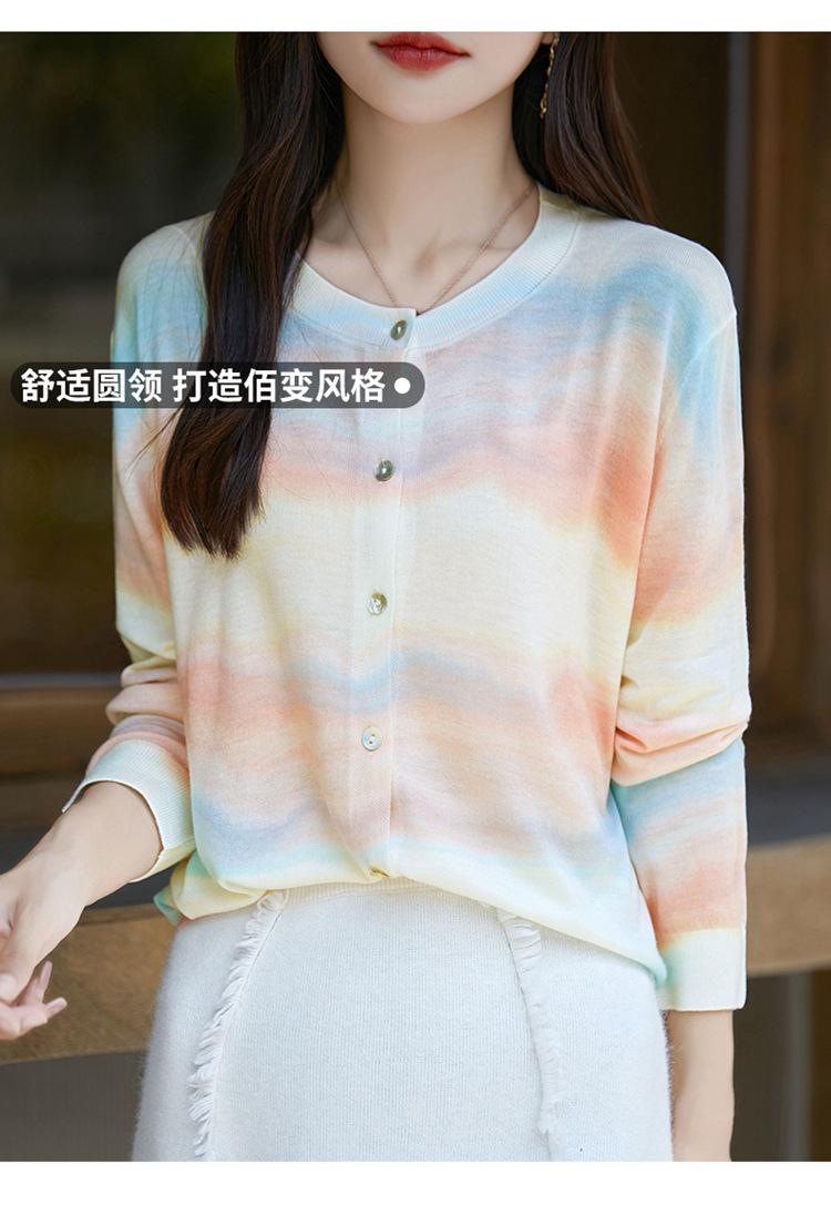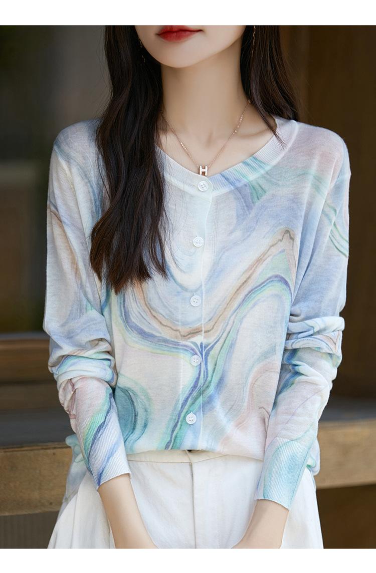 Cárdigan de punto con cuello redondo de lana peinada informal de primavera y verano, elegante top holgado con estampado que combina con todo para mujer