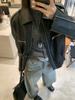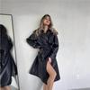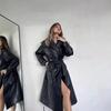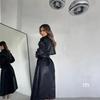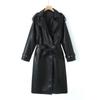 Cortavientos de Cuero Negro Transfronterizo para Mujer Largo 2025 Nuevo Abrigo Estilo Británico Amazon Chaqueta de Motociclista Abrigo Moderno
