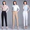 Pantalones de machete finos de primavera y verano de 25 años, pantalones adelgazantes de cintura alta para mujer, pantalones casuales sueltos y rectos pequeños para mujer