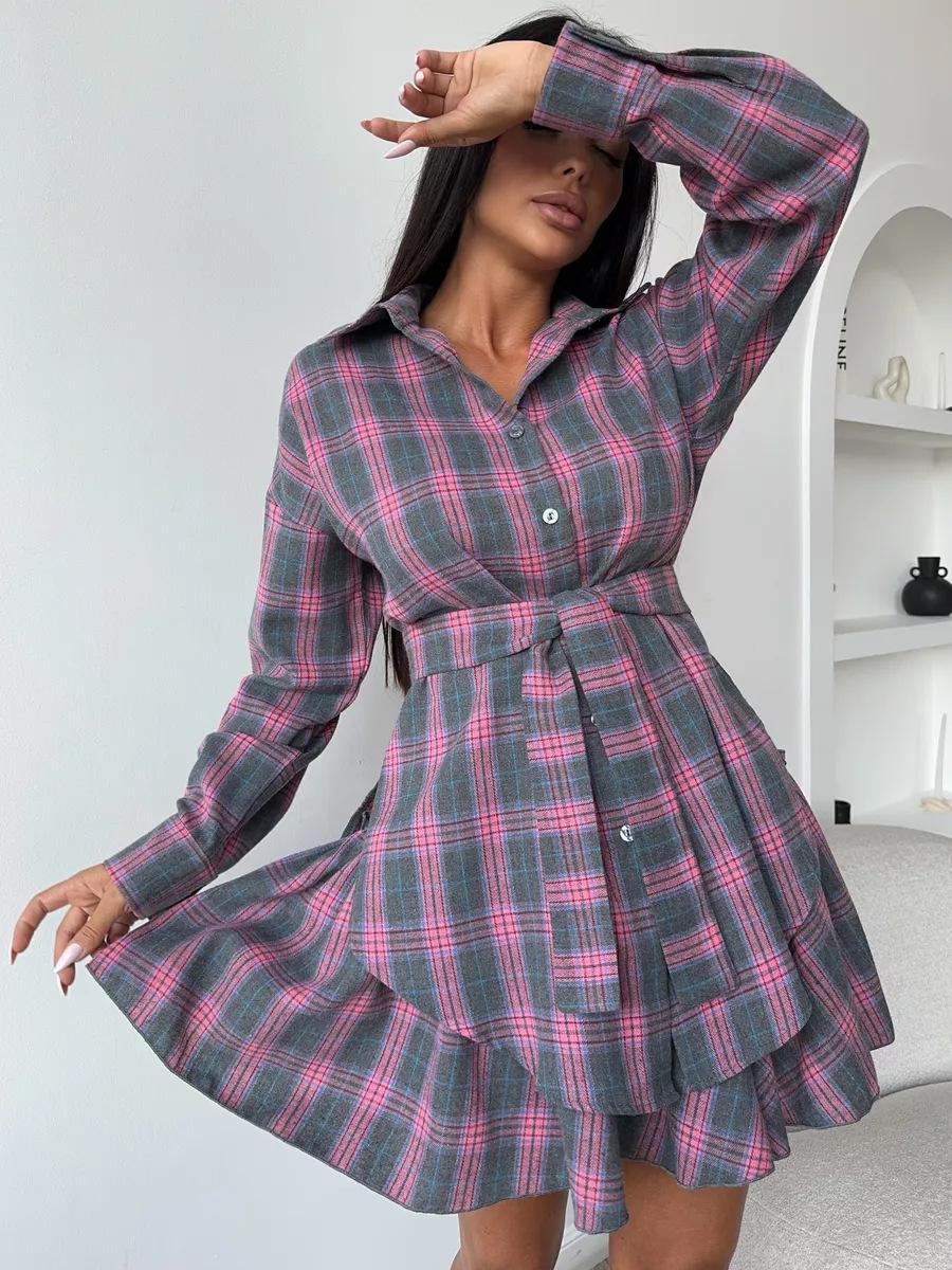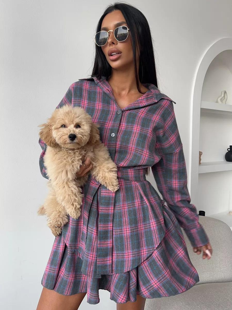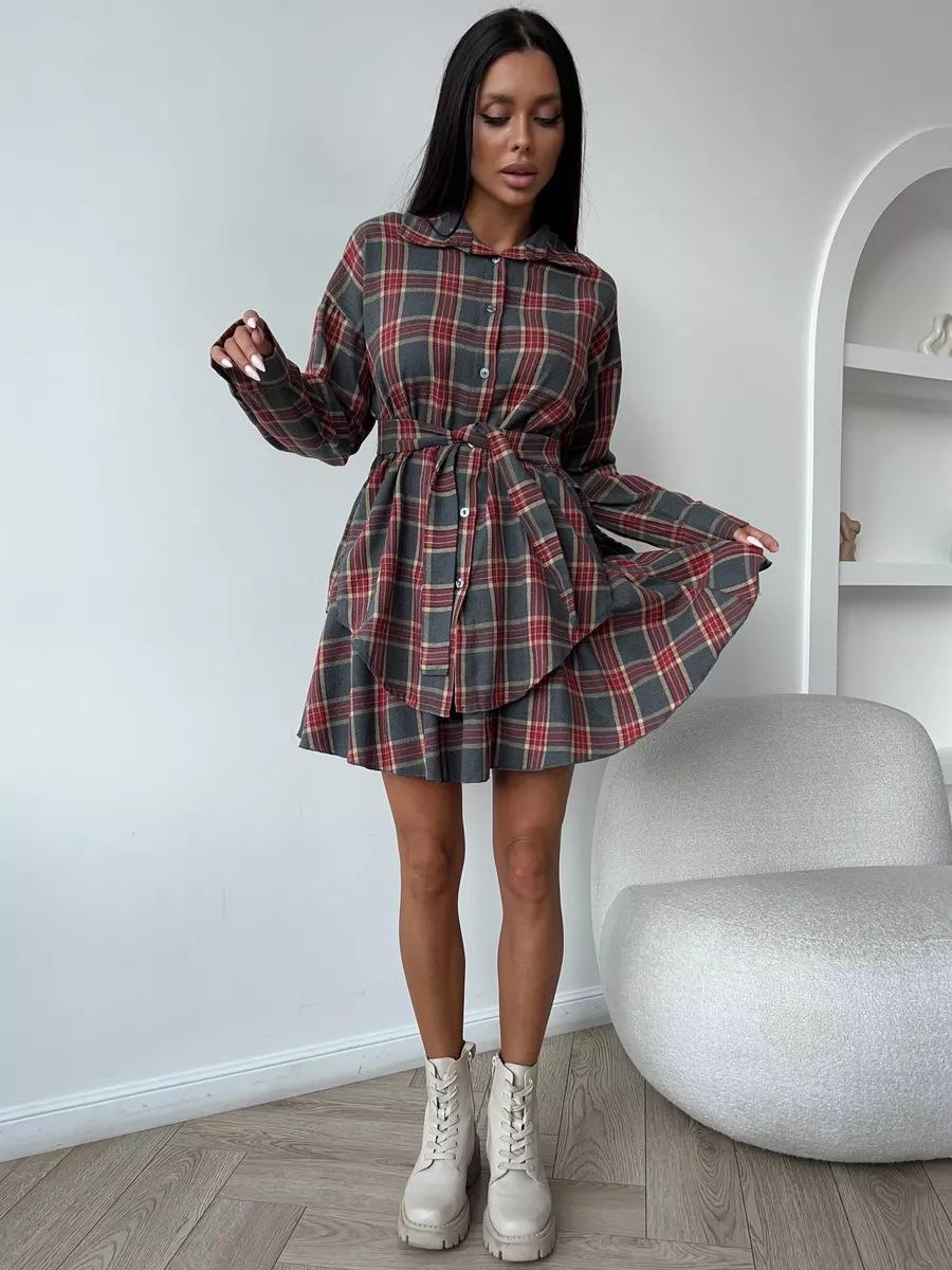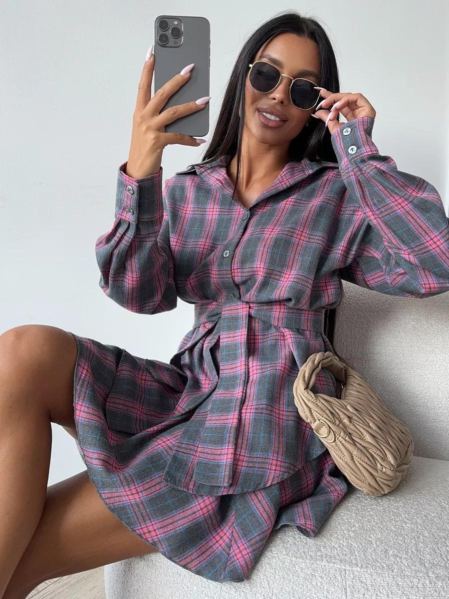 Conjunto de dos piezas formado por falda y pantalón a cuadros, para mujer, estilo informal, con solapa, camisa holgada y tirantes, cintura ajustada, 2025