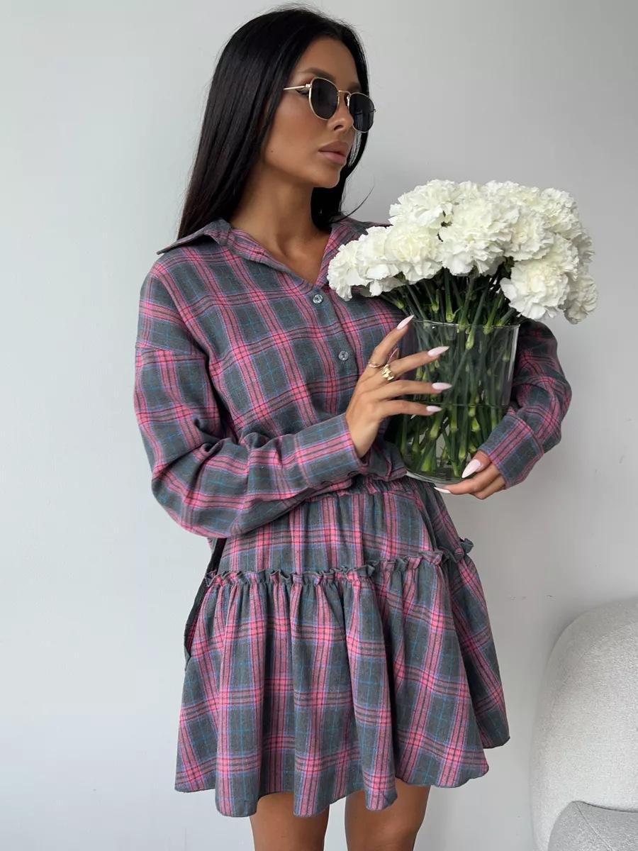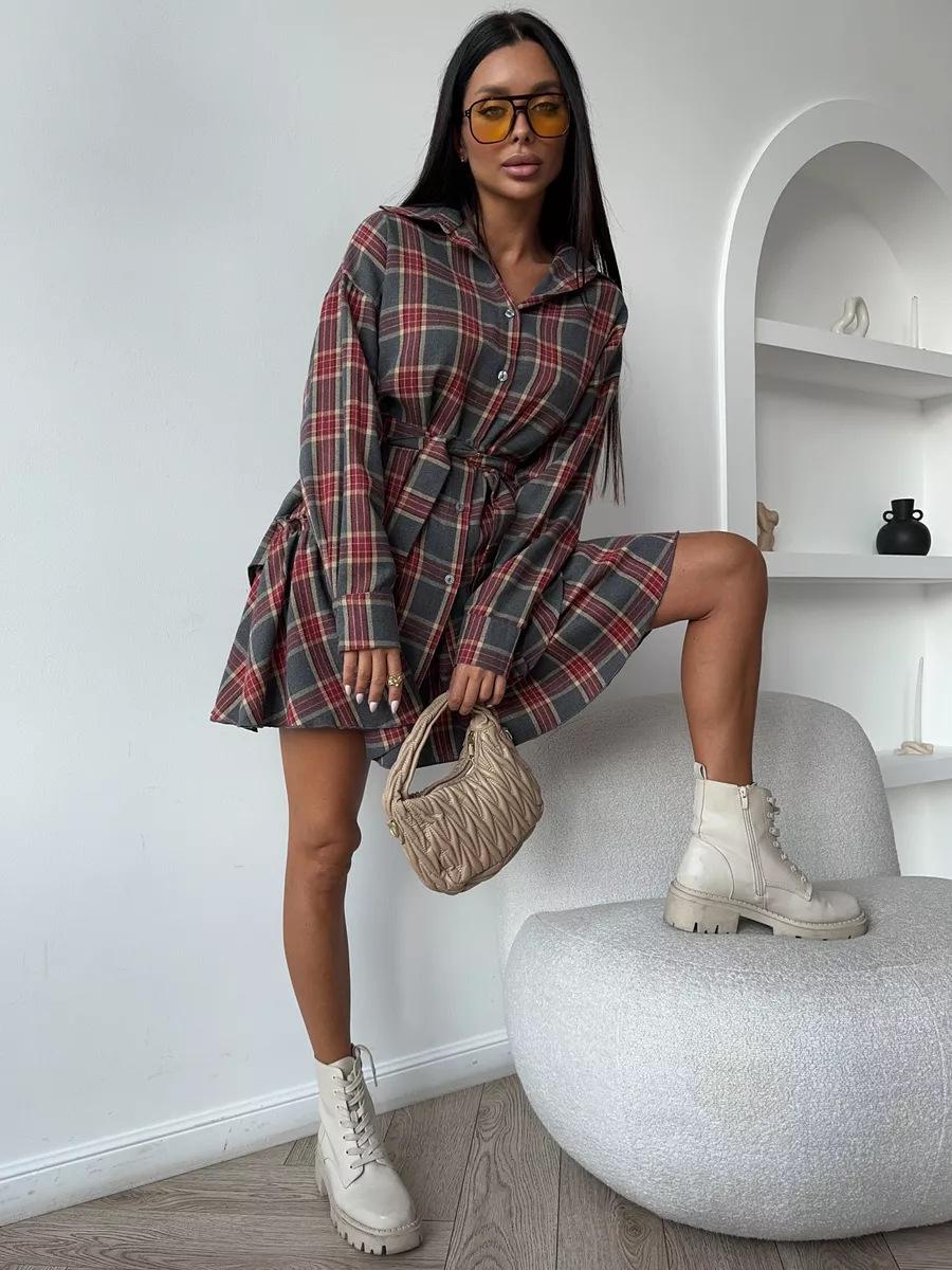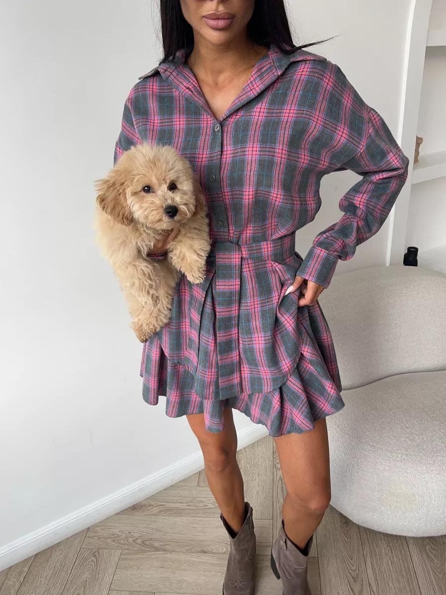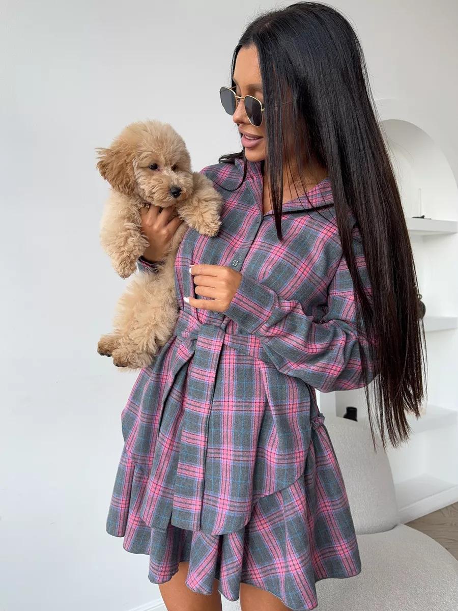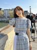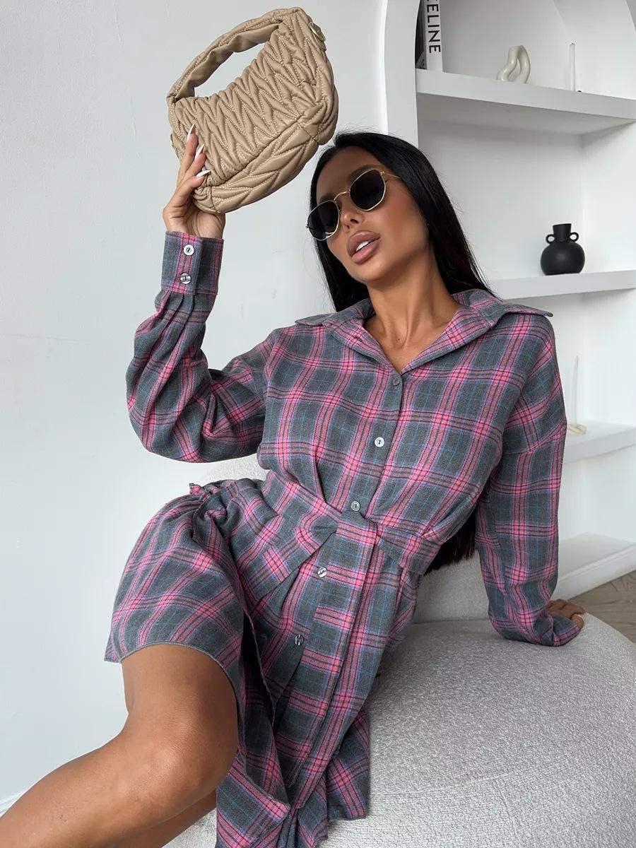 Conjunto de dos piezas formado por falda y pantalón a cuadros, para mujer, estilo informal, con solapa, camisa holgada y tirantes, cintura ajustada, 2025
