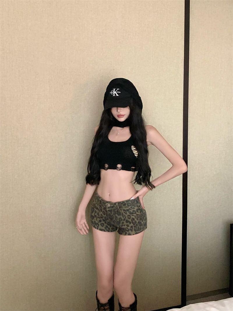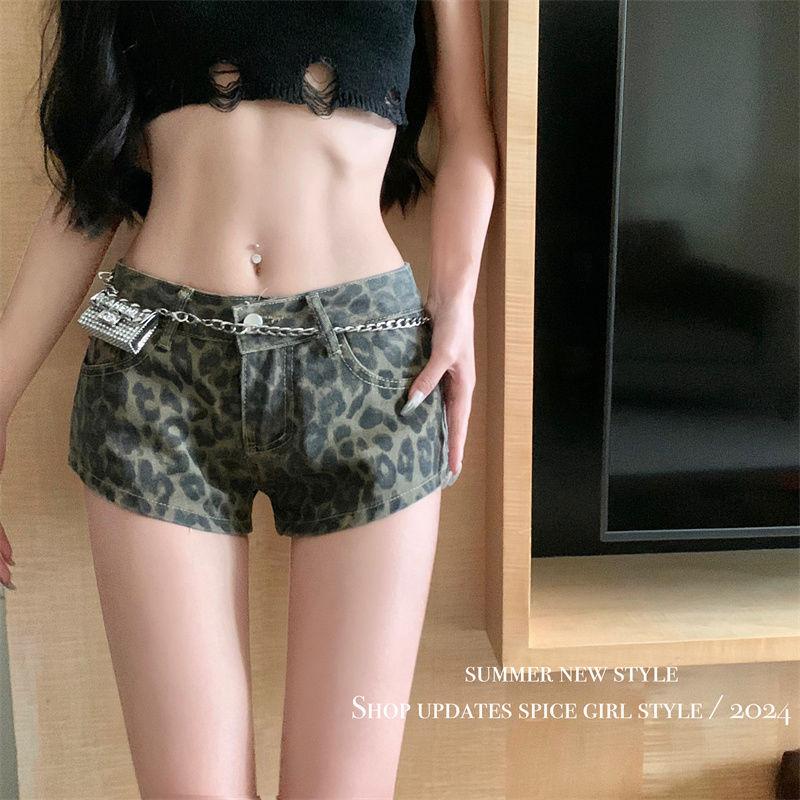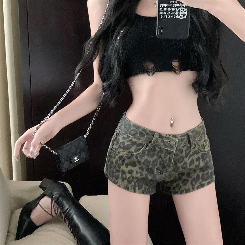 Pantalones cortos de leopardo estilo americano para chica sexy, vaqueros adelgazantes de cintura alta, pantalones de pierna ancha elegantes de verano para mujer, pantalones calientes Ins