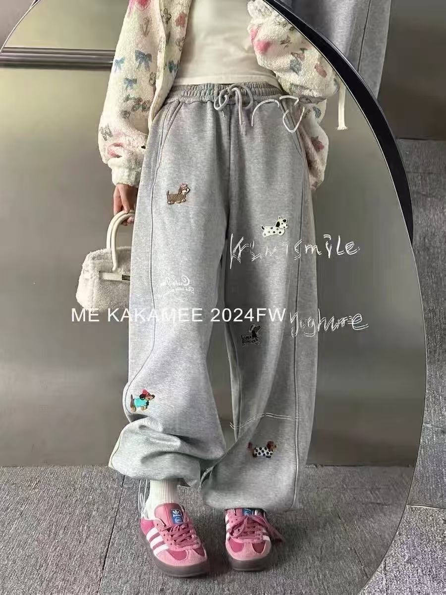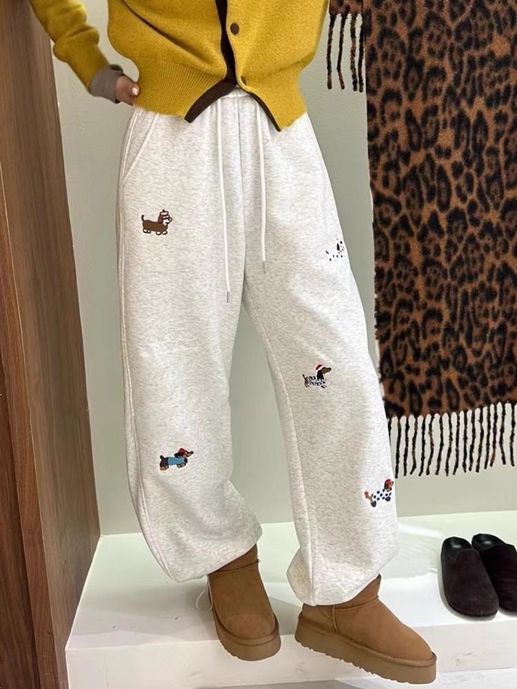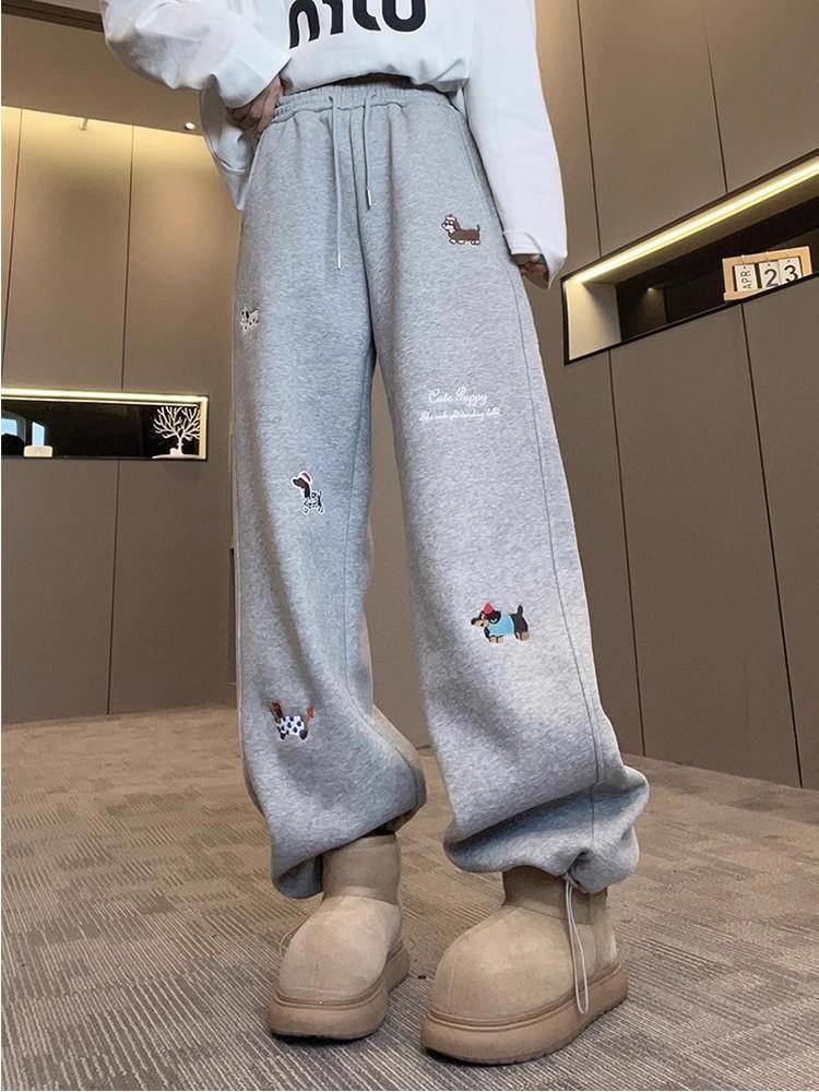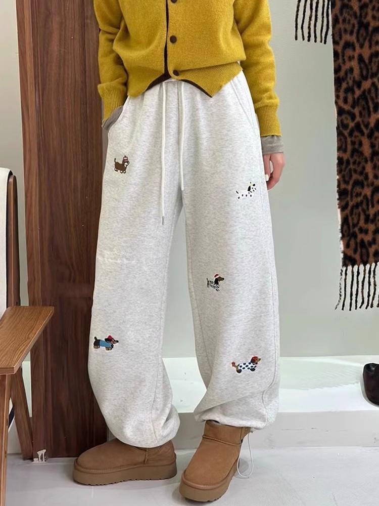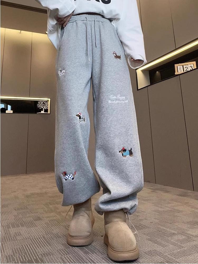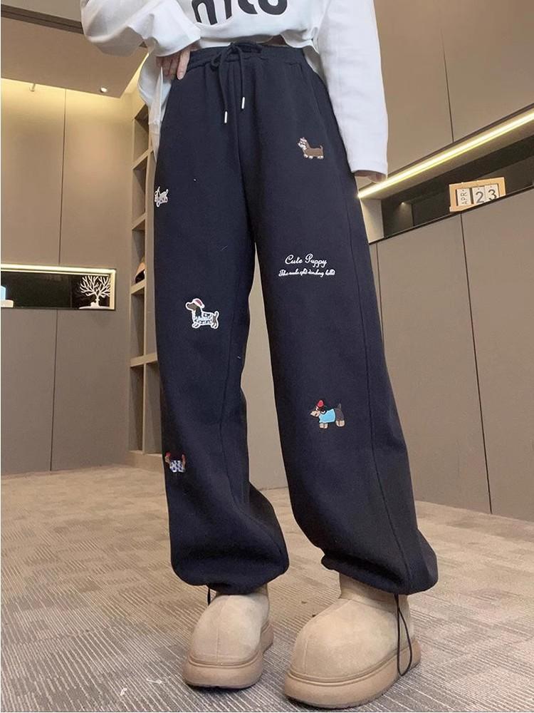 Pantalones Deportivos Versátiles de Primavera para Mujer 2025 Nuevo Cachorro de Dibujos Animados Letra Bordada Pantalones de Cintura Elástica Pantalones Casuales Holgados