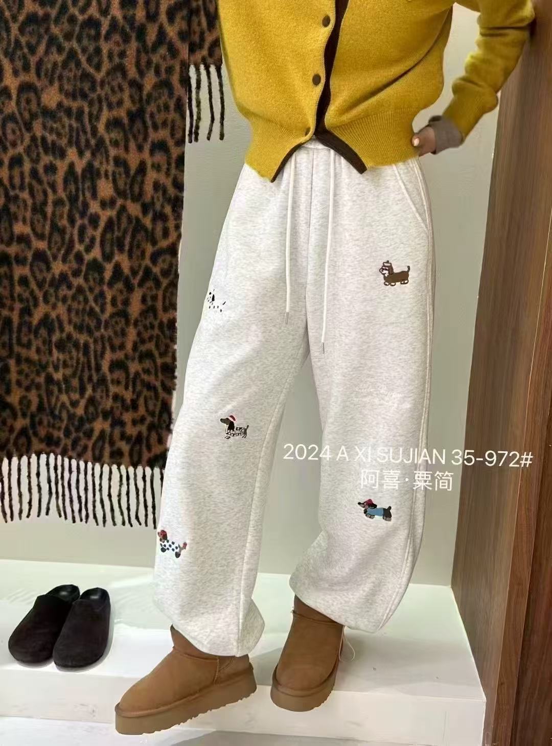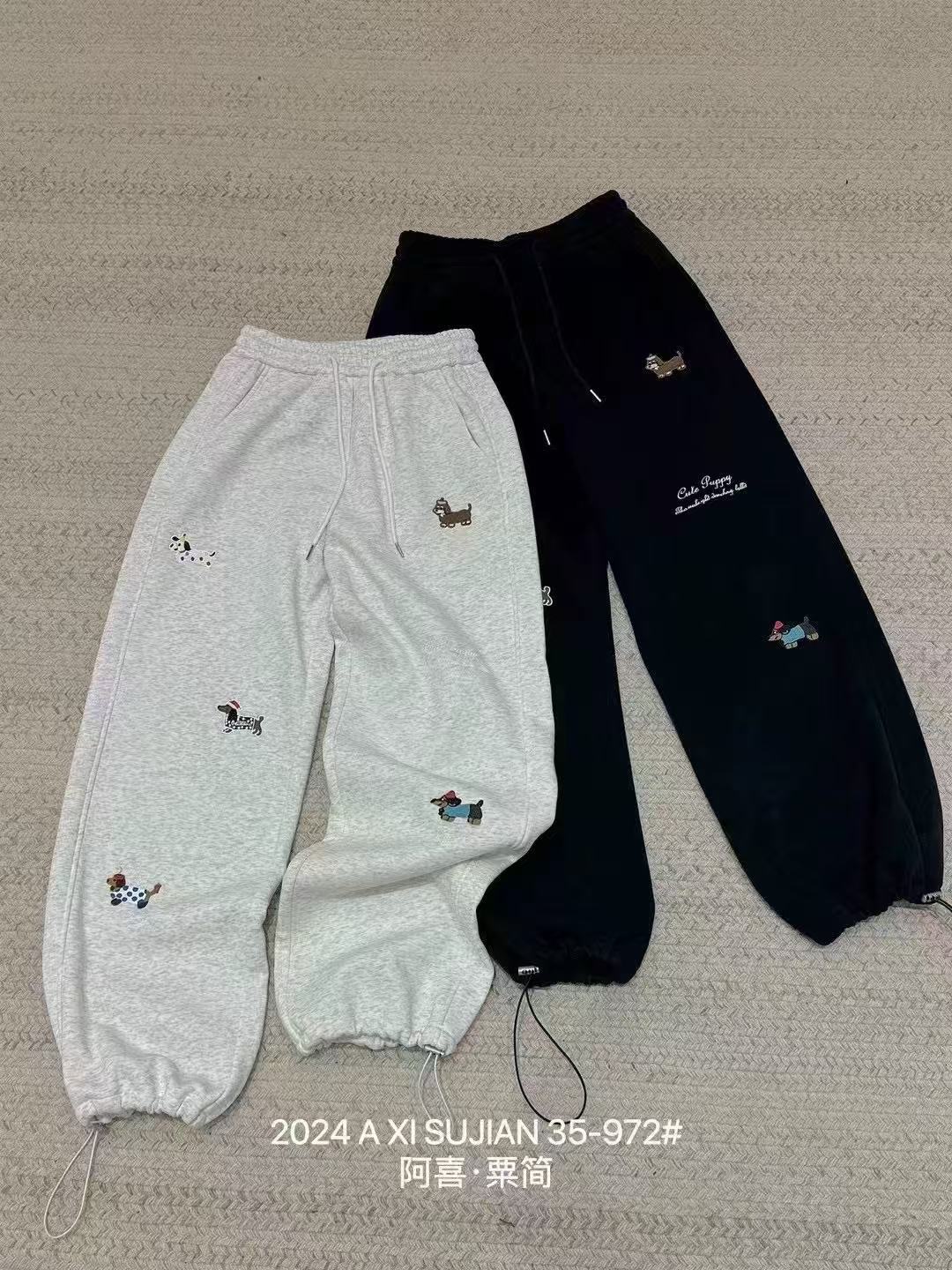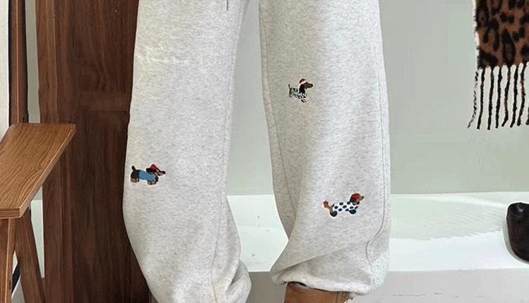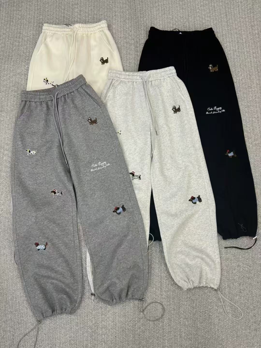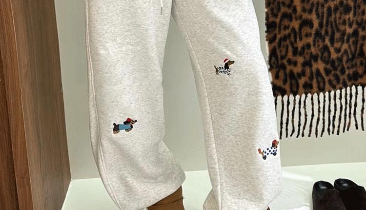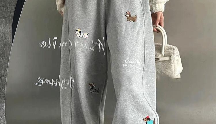 Pantalones Deportivos Versátiles de Primavera para Mujer 2025 Nuevo Cachorro de Dibujos Animados Letra Bordada Pantalones de Cintura Elástica Pantalones Casuales Holgados