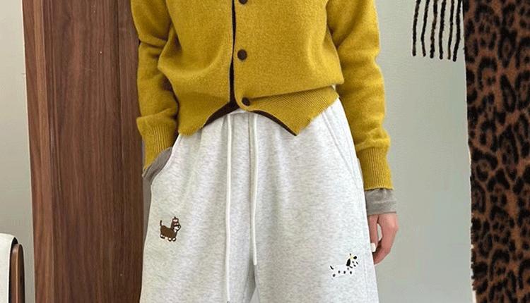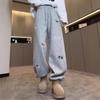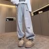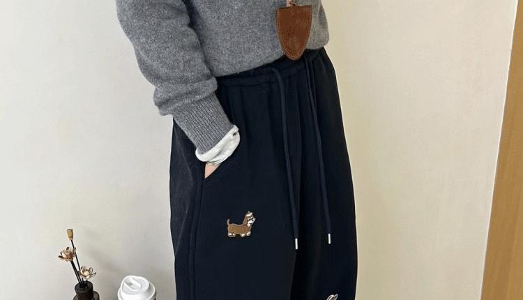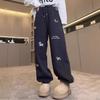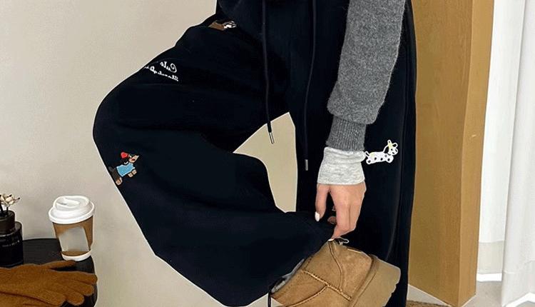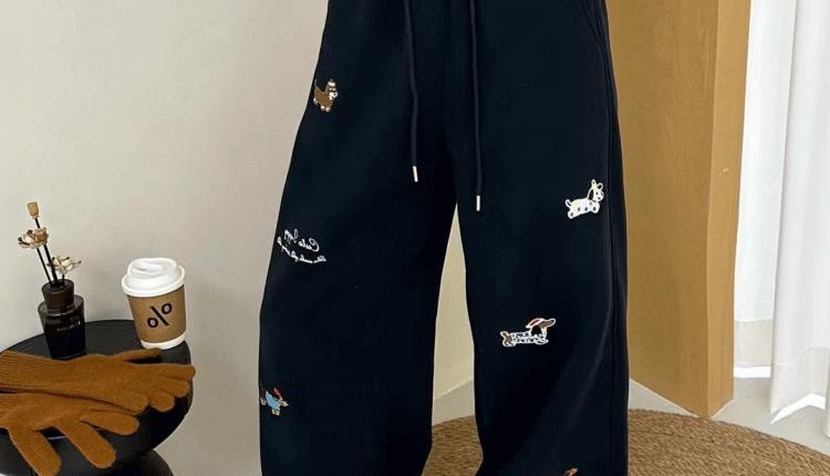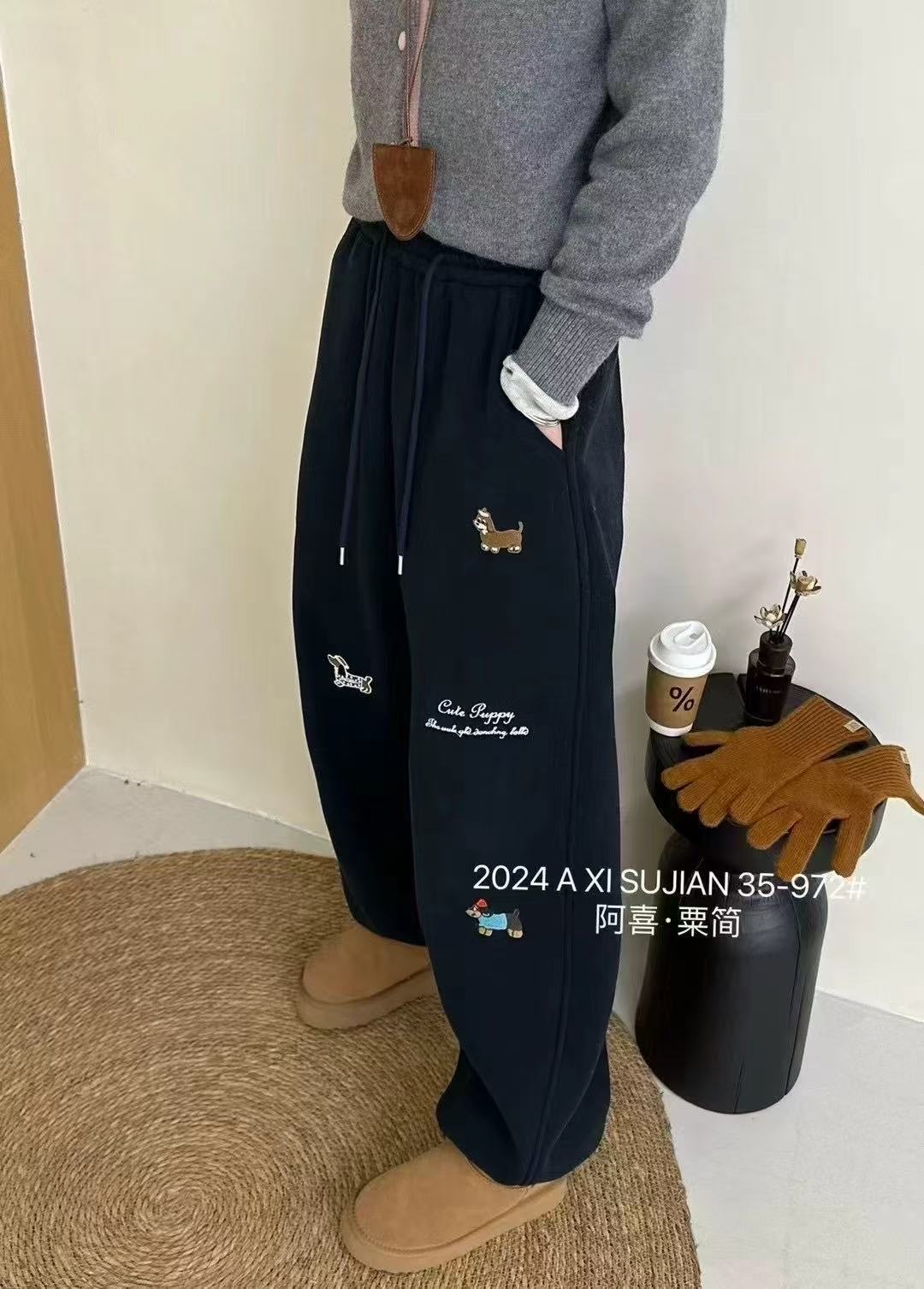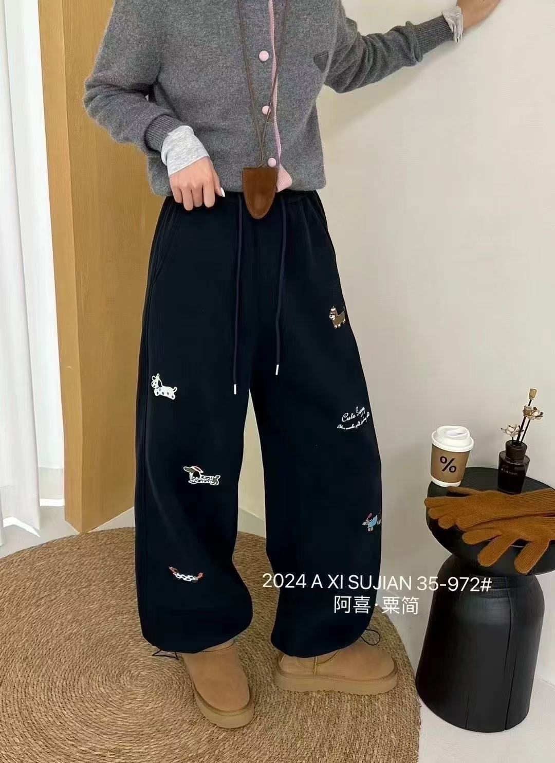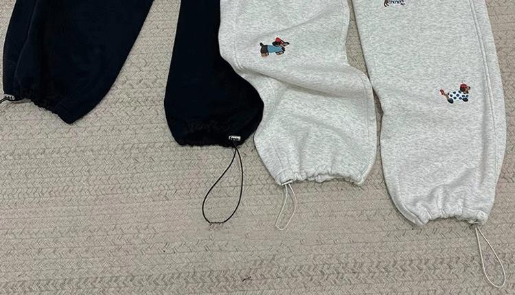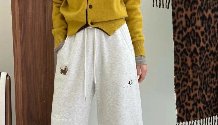 Pantalones Deportivos Versátiles de Primavera para Mujer 2025 Nuevo Cachorro de Dibujos Animados Letra Bordada Pantalones de Cintura Elástica Pantalones Casuales Holgados