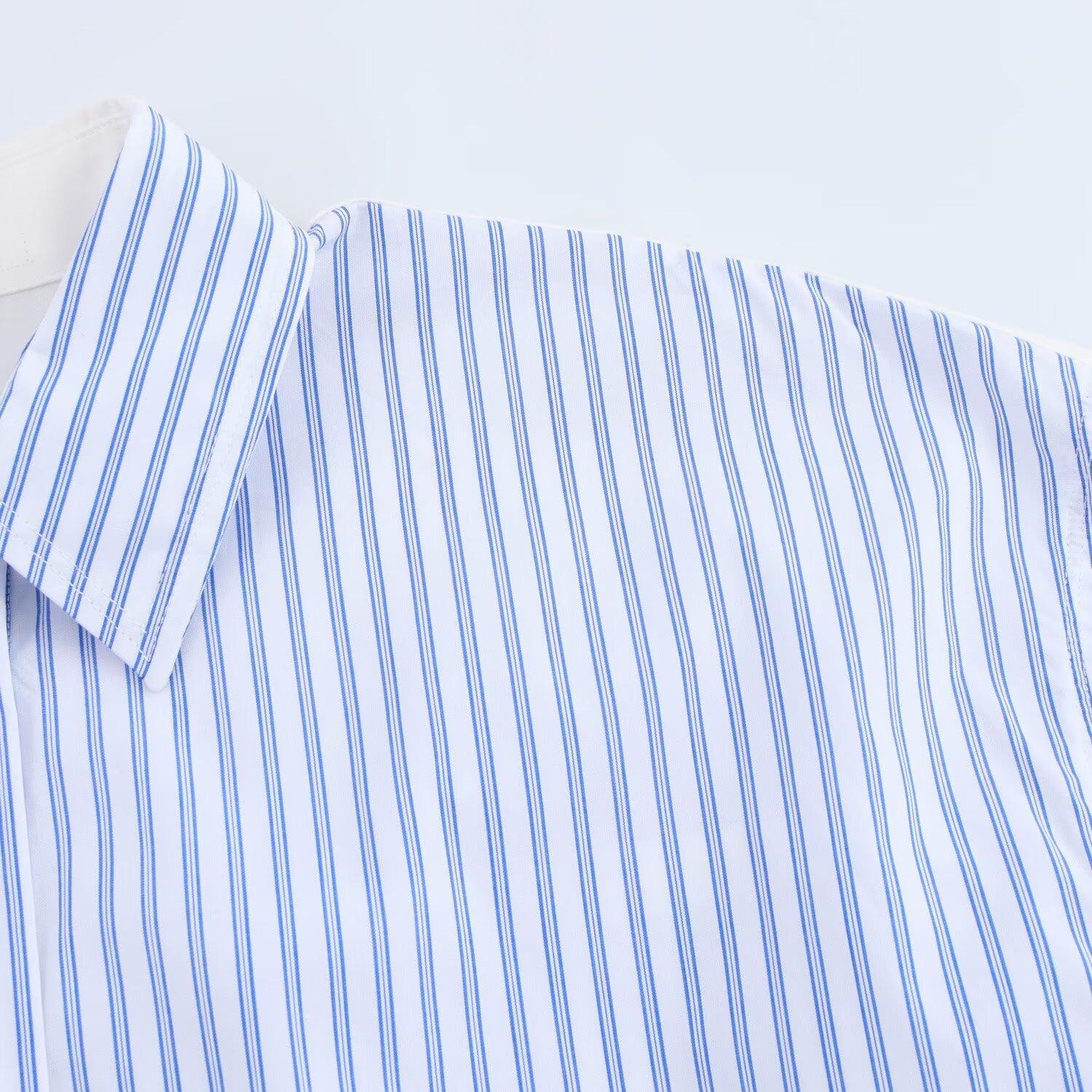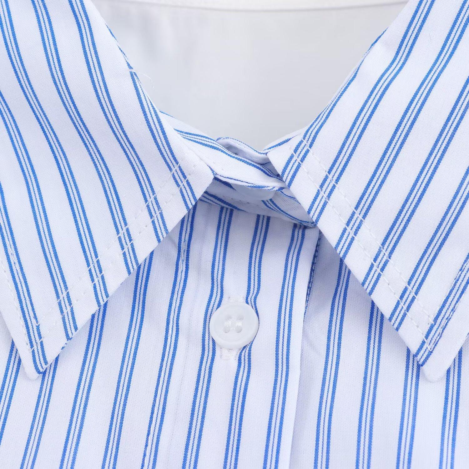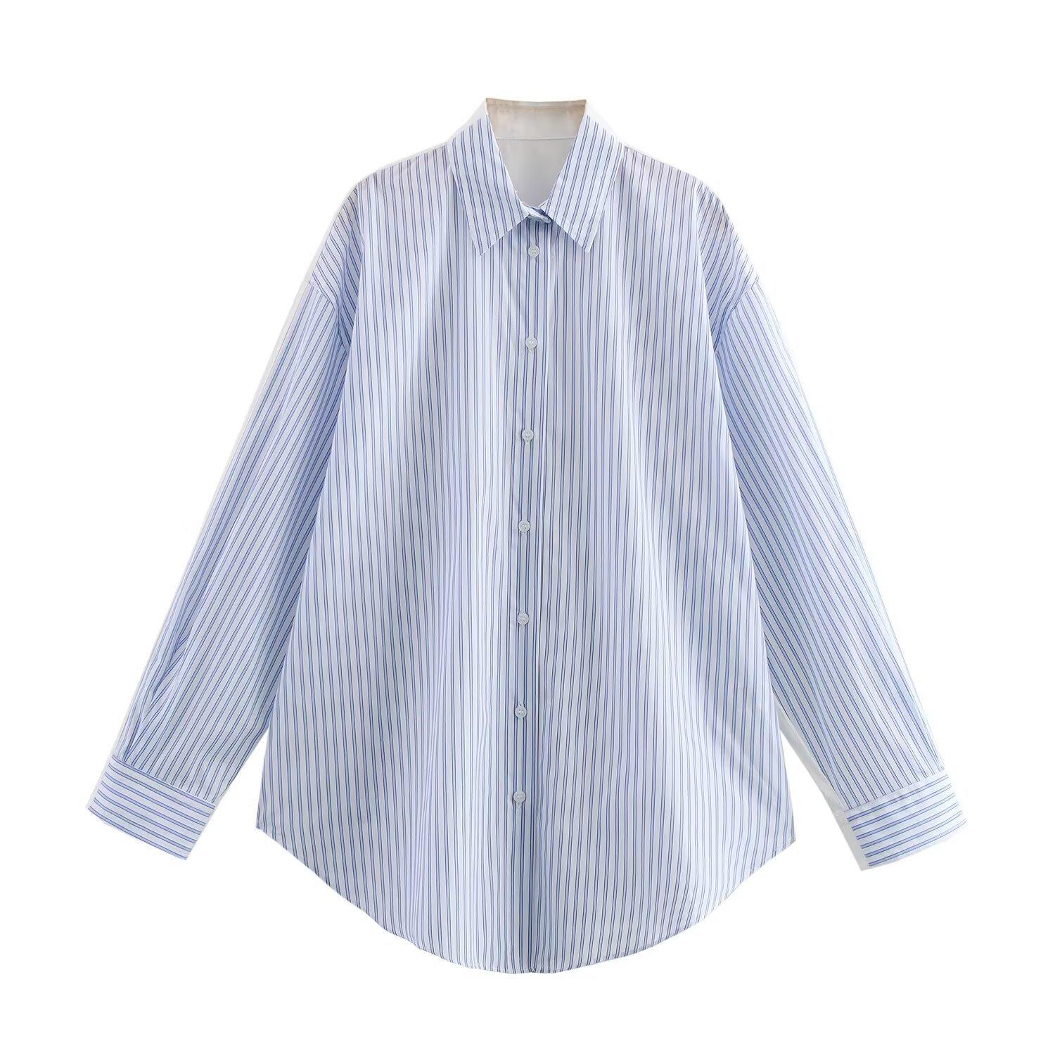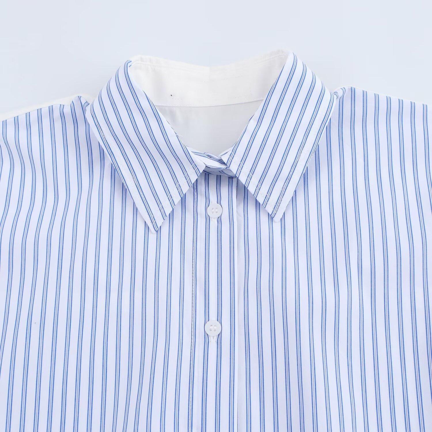 Camisa de manga larga con solapa de popelina a rayas de nueva moda de primavera 2025 para mujeres europeas y americanas transfronterizas 5063015