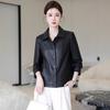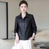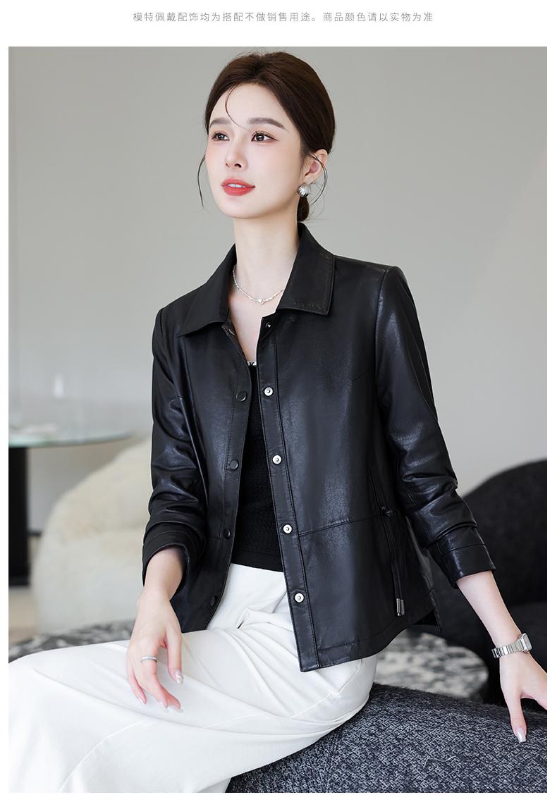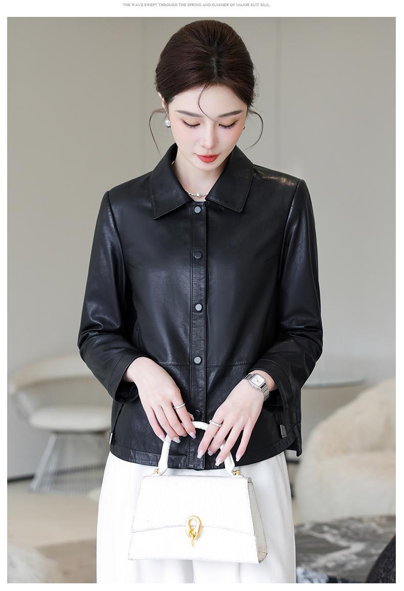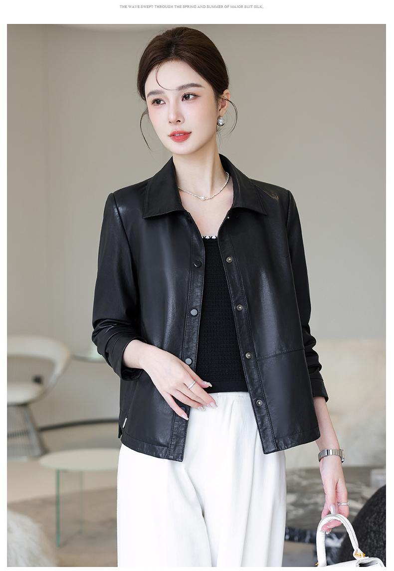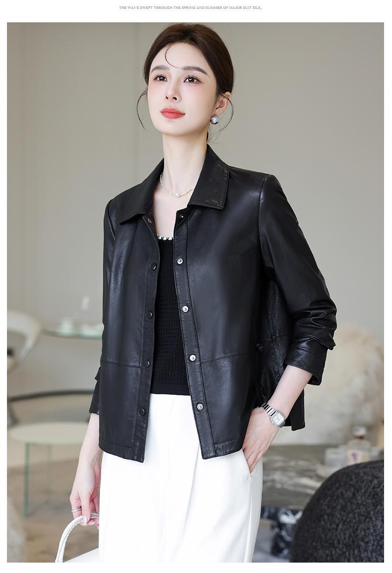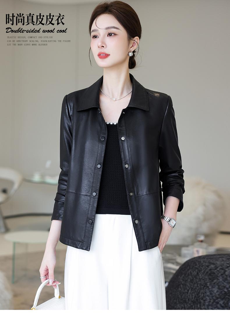 Nueva chaqueta de solapa de manga larga de piel de oveja de alta gama para mujer de cuero genuino de Haining, abrigo de moda para primavera y otoño