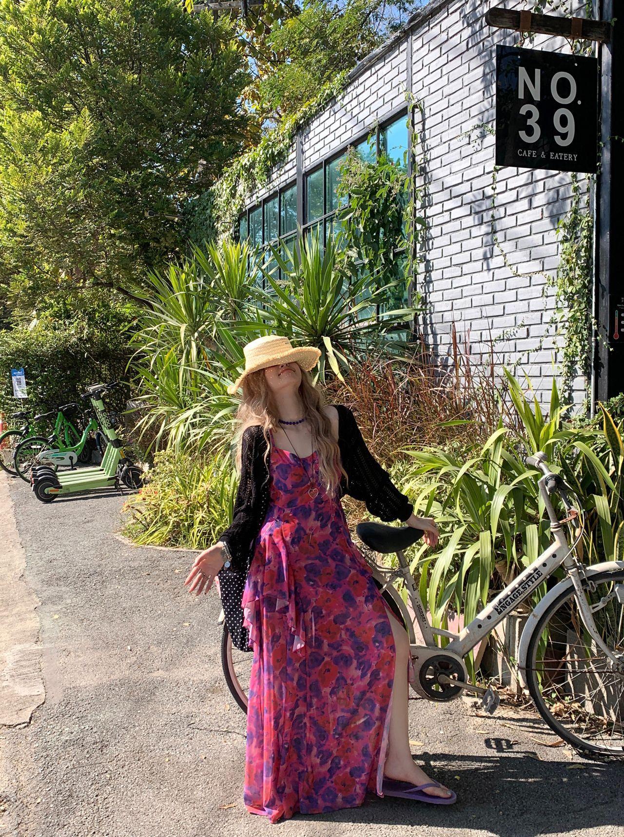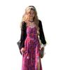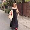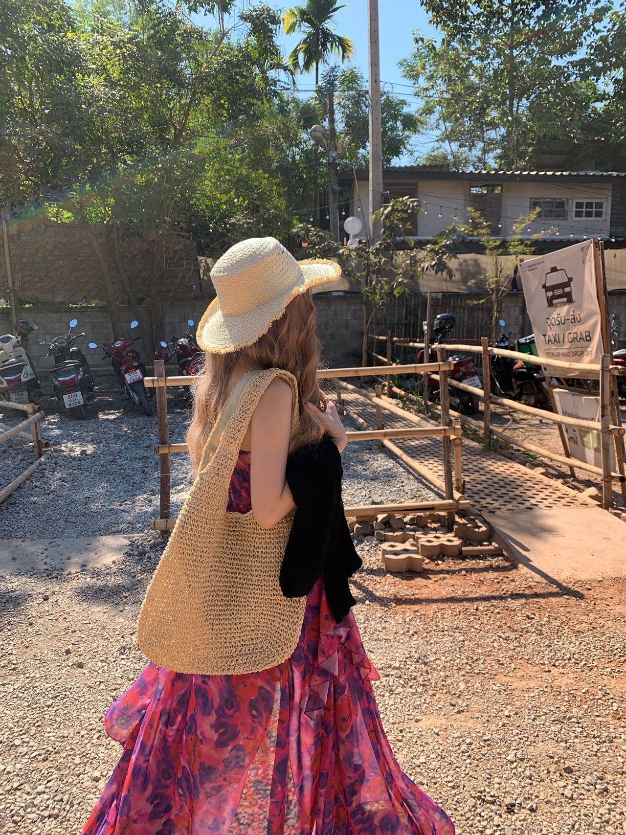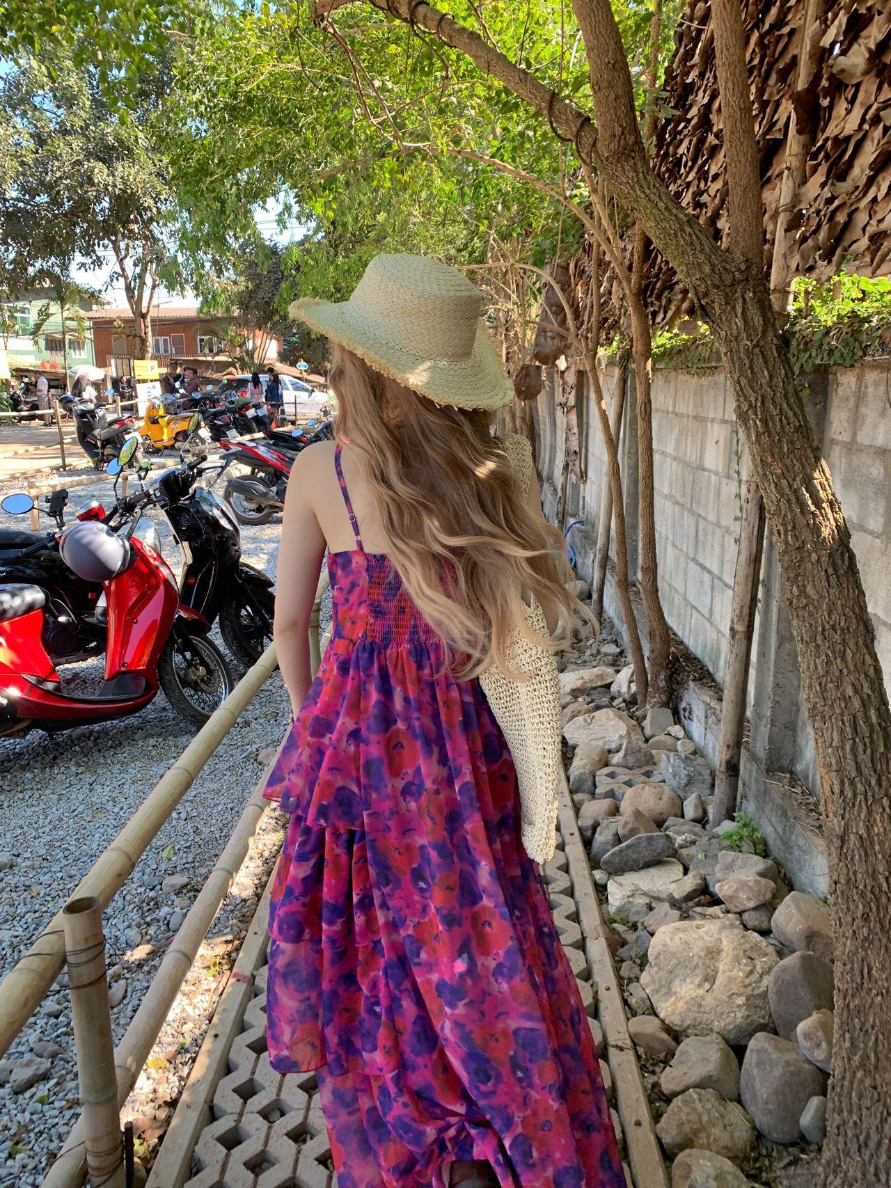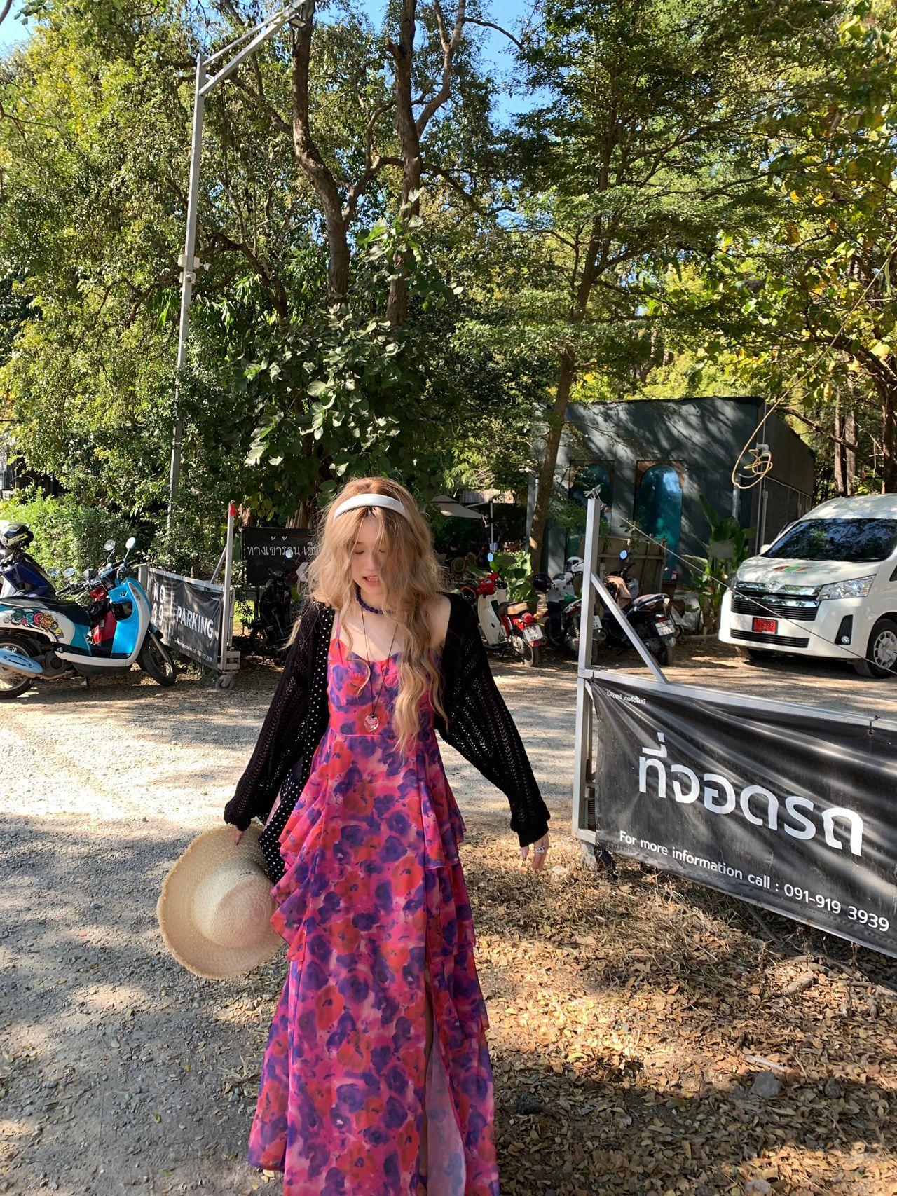 Vestido Talla Grande Flor Cintura Volantes Abertura Ajustado Tirantes Atmósfera Verano Aspecto Adelgazante Dama Gentil Vestido Largo