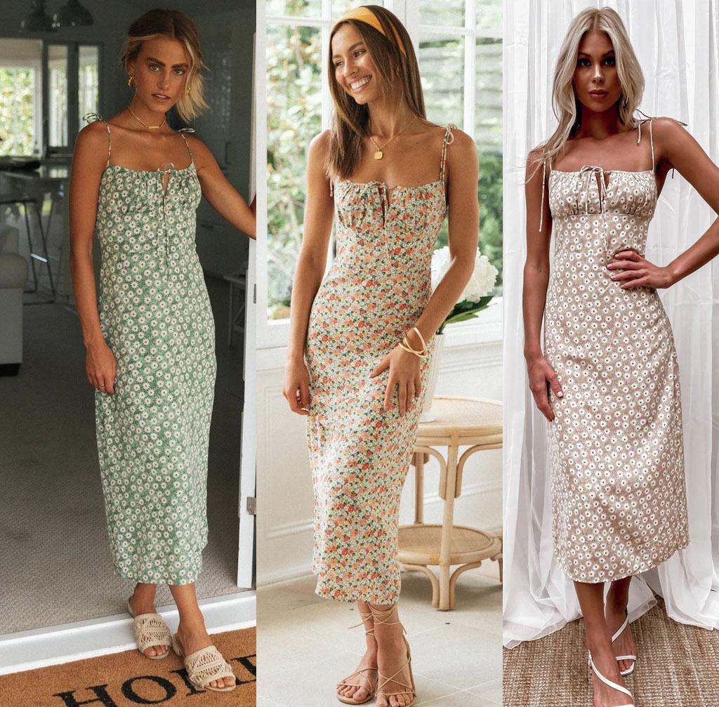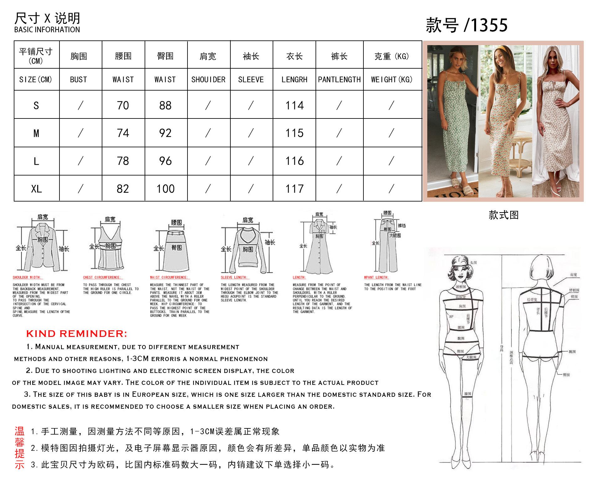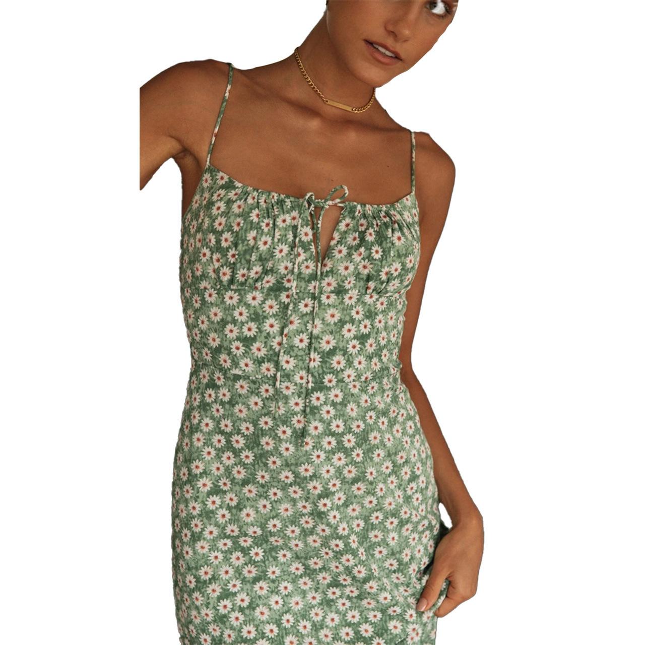 Vestido de tirantes con estampado floral pequeño, fresco y dulce, nuevos productos transfronterizos de primavera y verano europeos y americanos 2025 1355