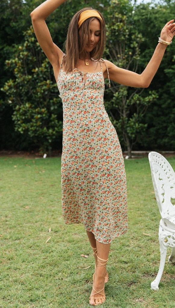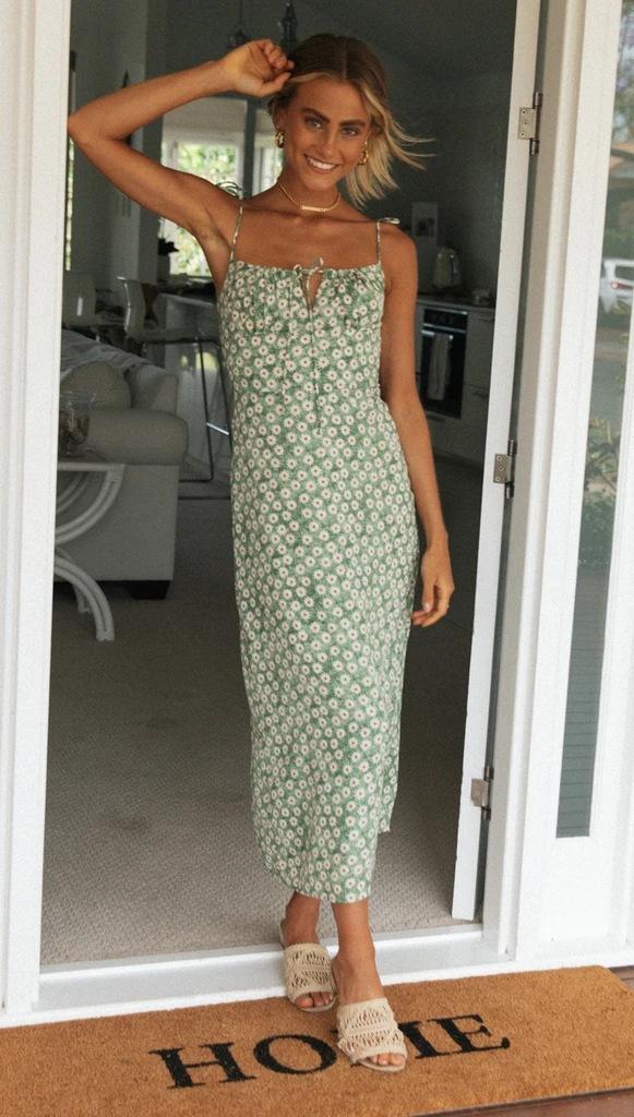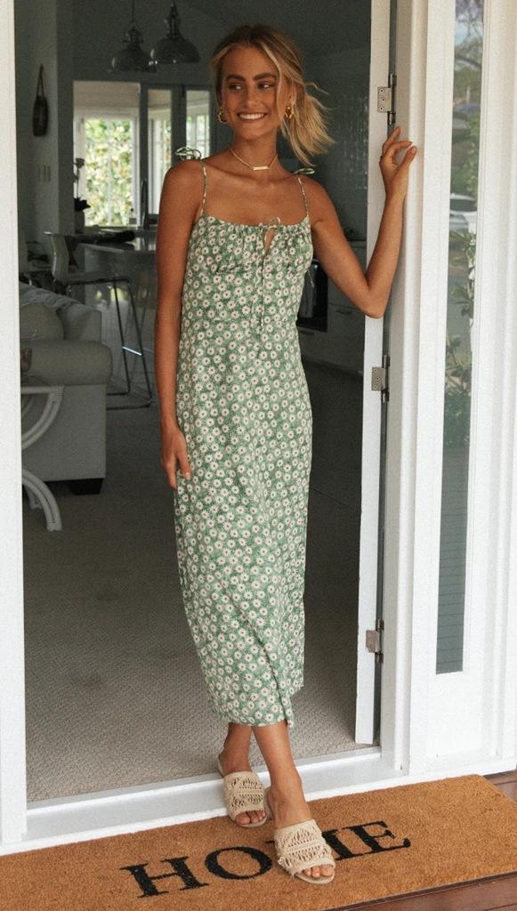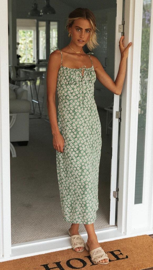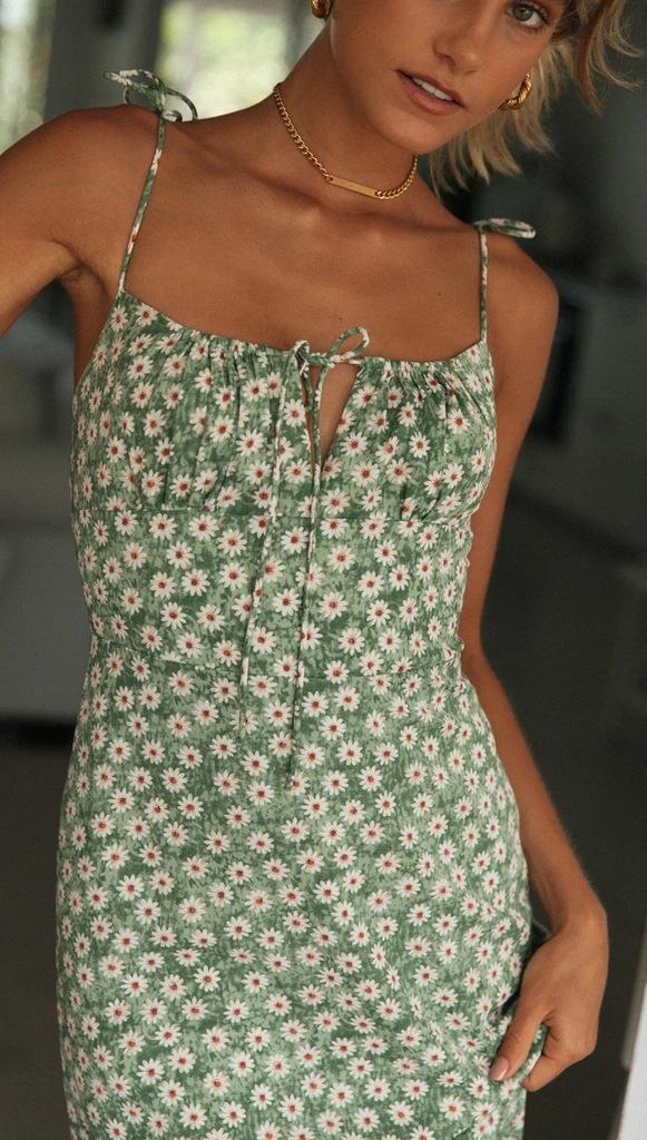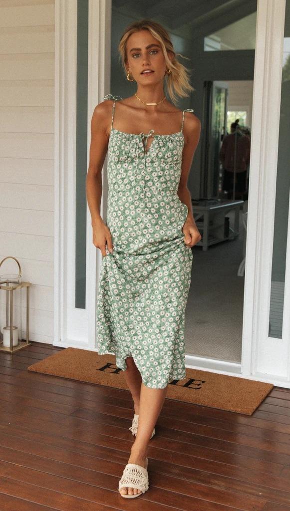 Vestido de tirantes con estampado floral pequeño, fresco y dulce, nuevos productos transfronterizos de primavera y verano europeos y americanos 2025 1355
