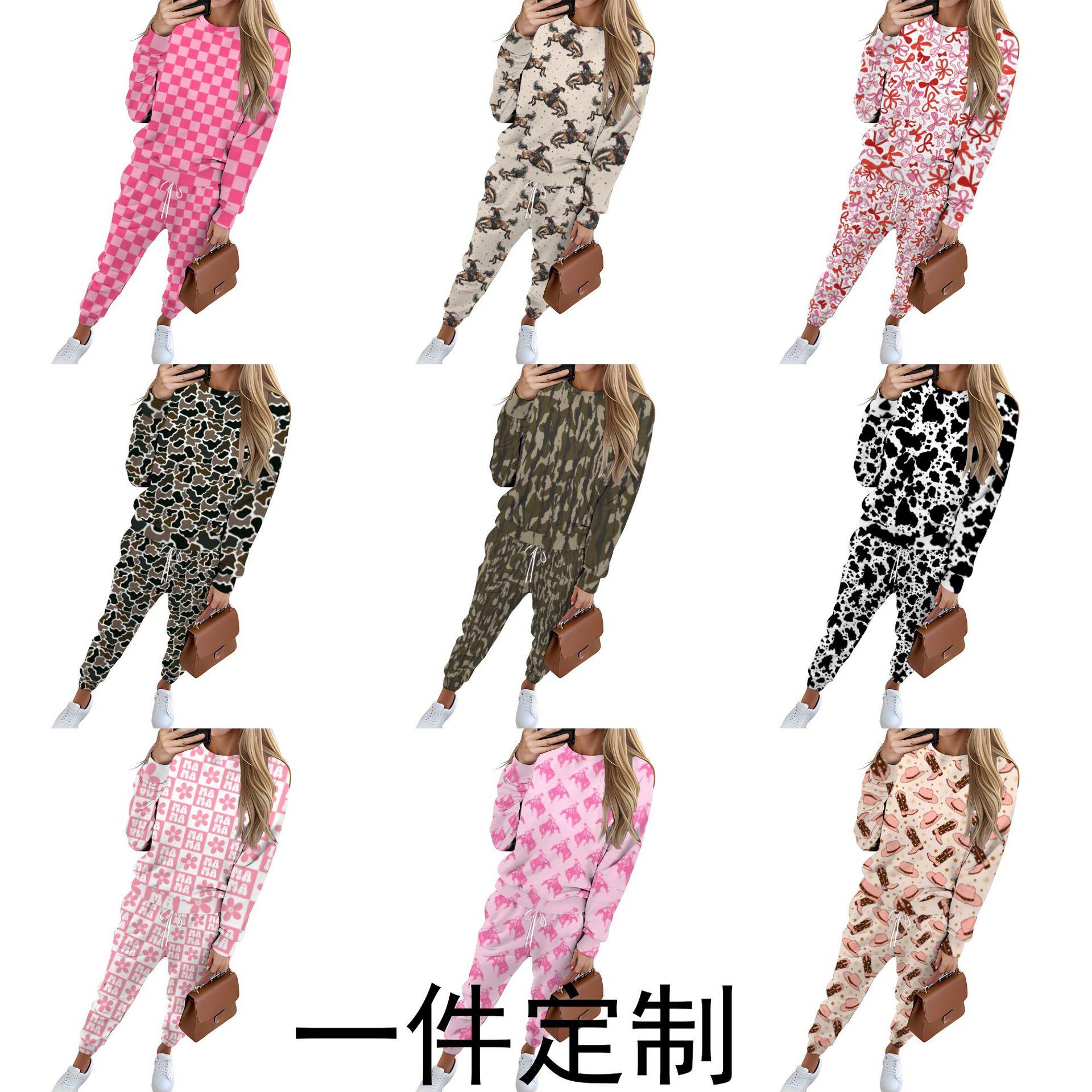 Traje deportivo de una pieza con estampado personalizado, estilo europeo y americano, informal, de manga larga, para otoño e invierno, conjunto deportivo de dos piezas a la moda.