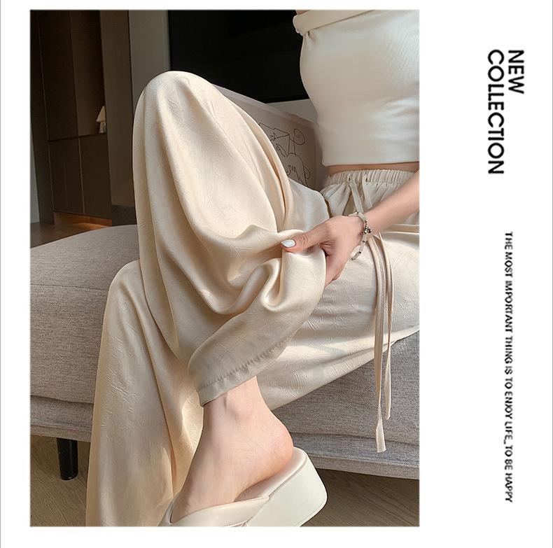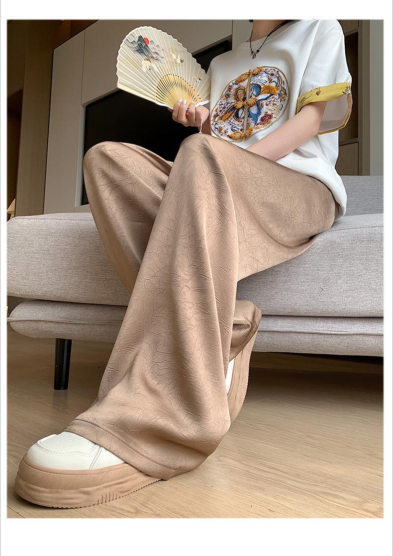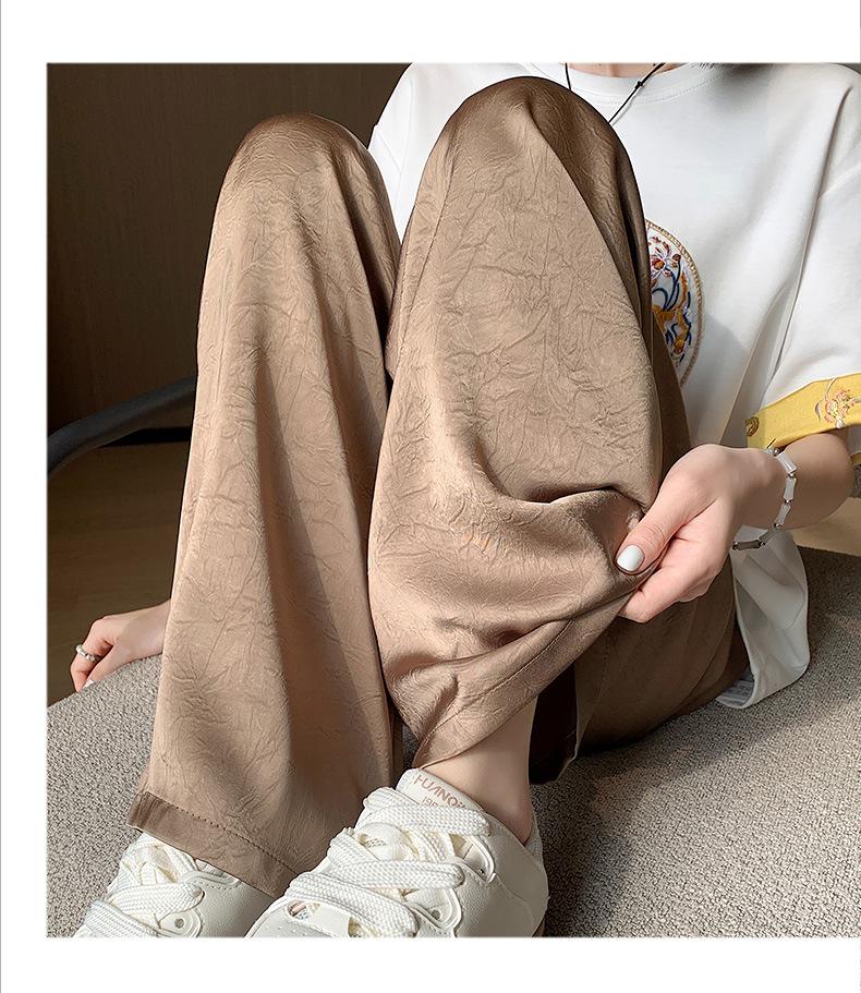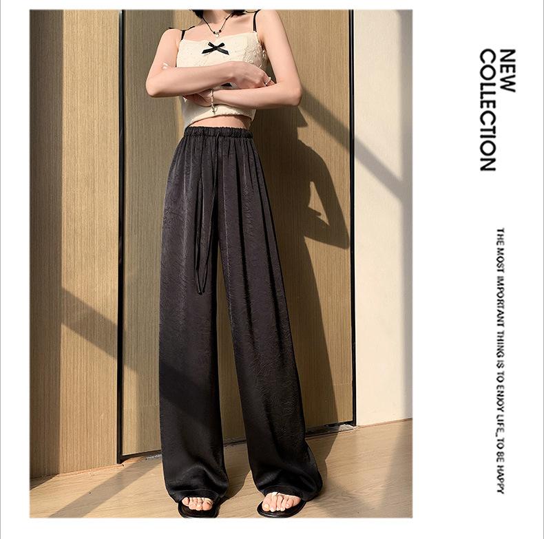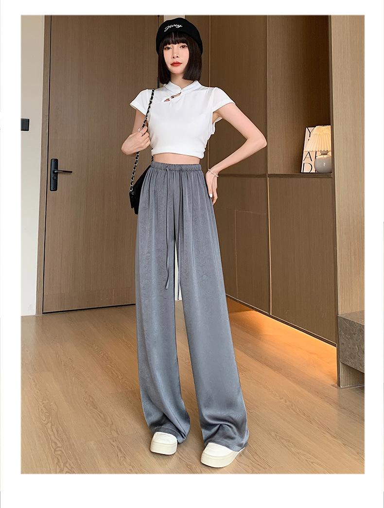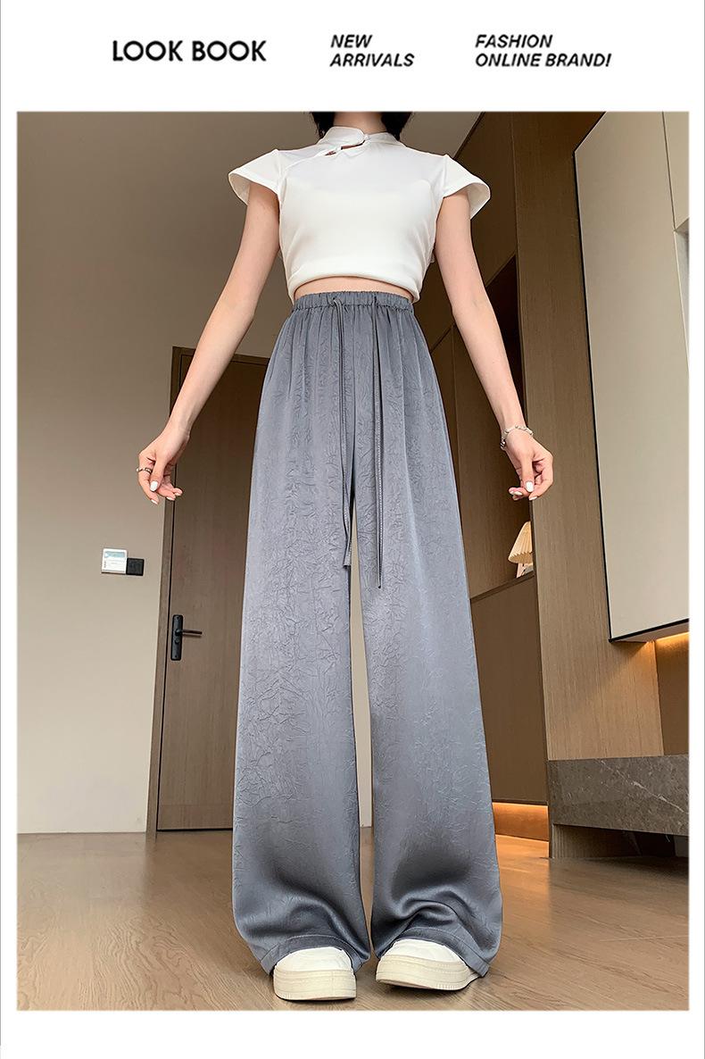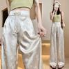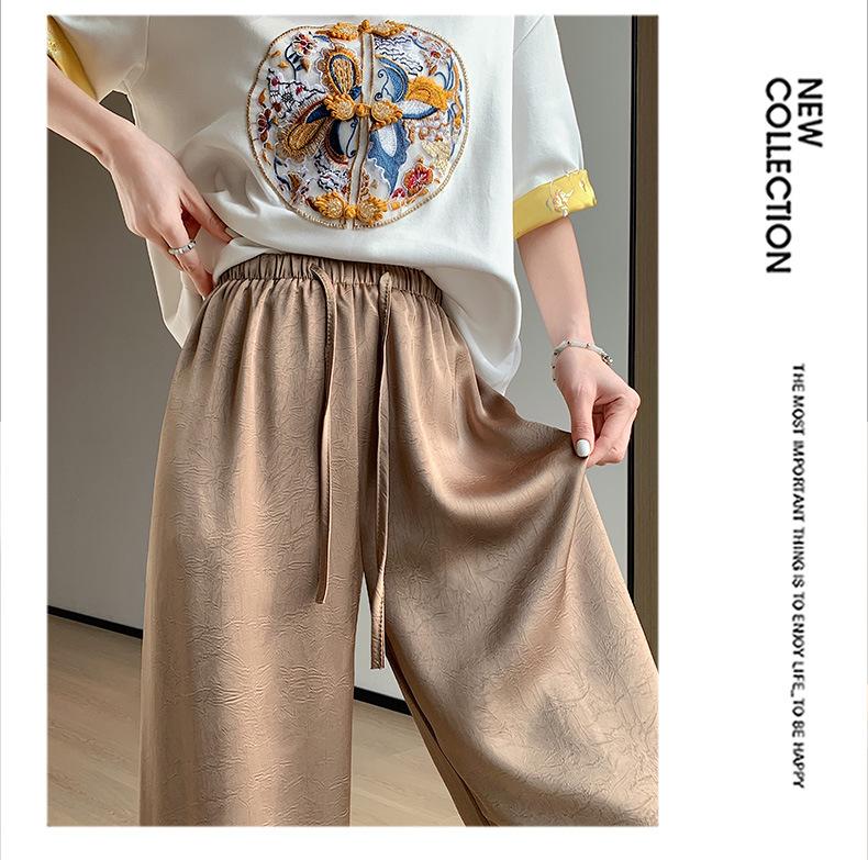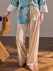 Pantalones anchos de satén jacquard de estilo nacional chino para mujer, novedad de verano 2025, pantalones casuales rectos adelgazantes de cintura alta.