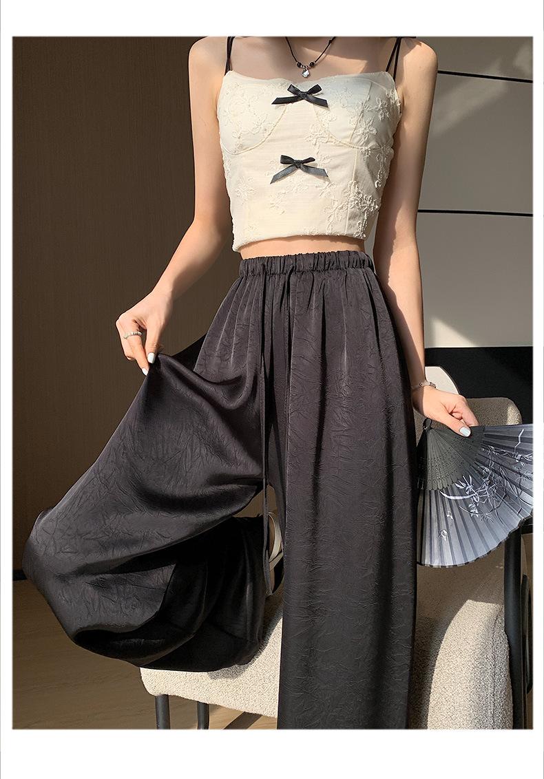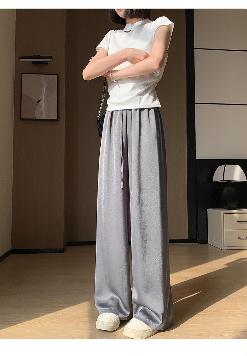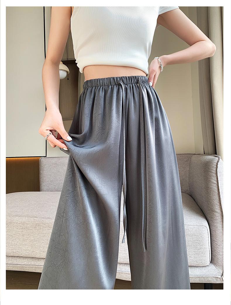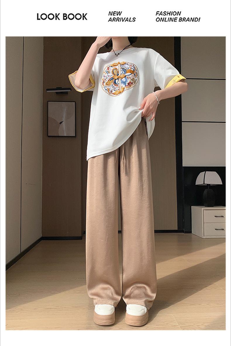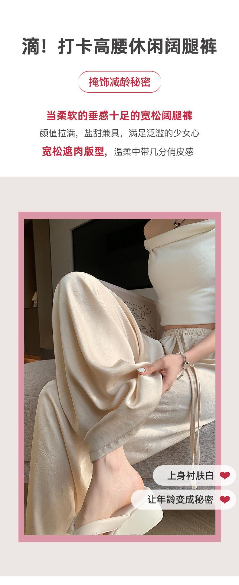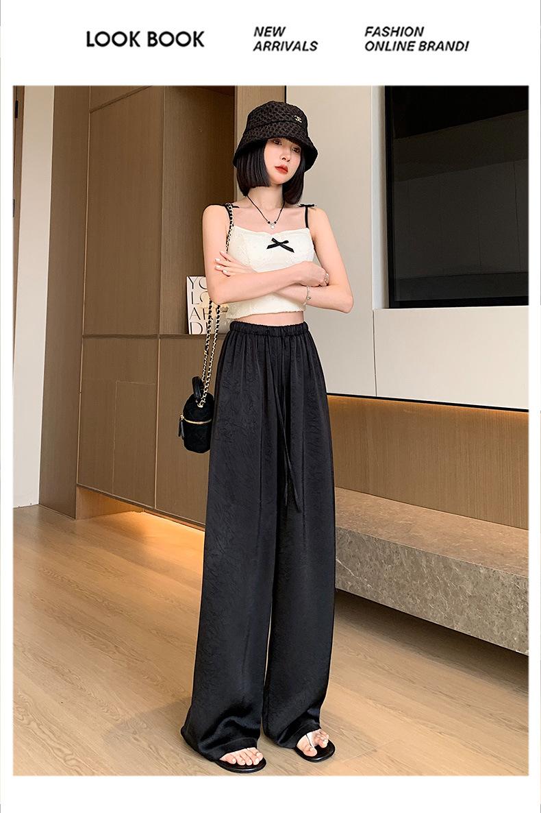 Pantalones anchos de satén jacquard de estilo nacional chino para mujer, novedad de verano 2025, pantalones casuales rectos adelgazantes de cintura alta.