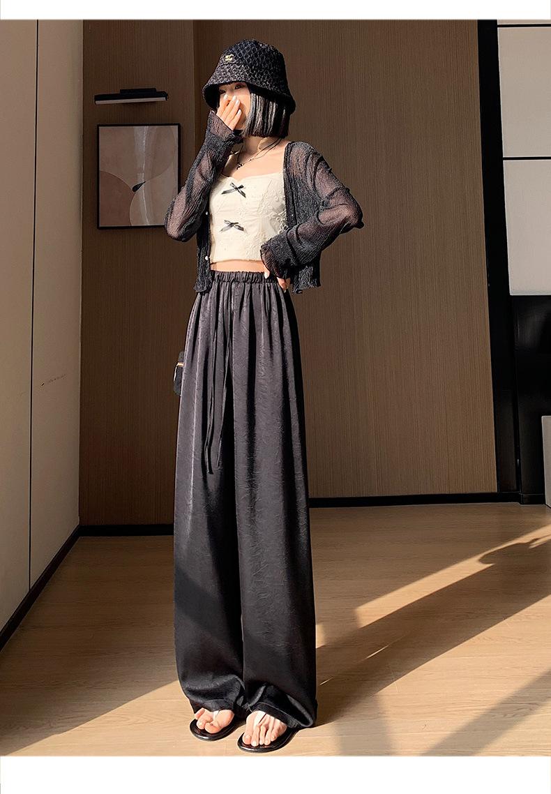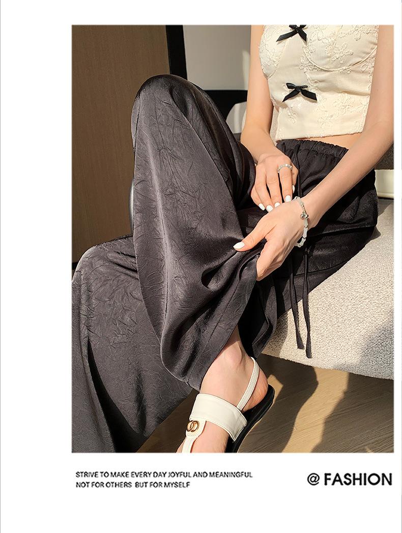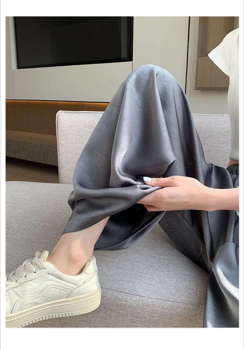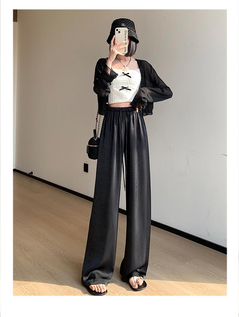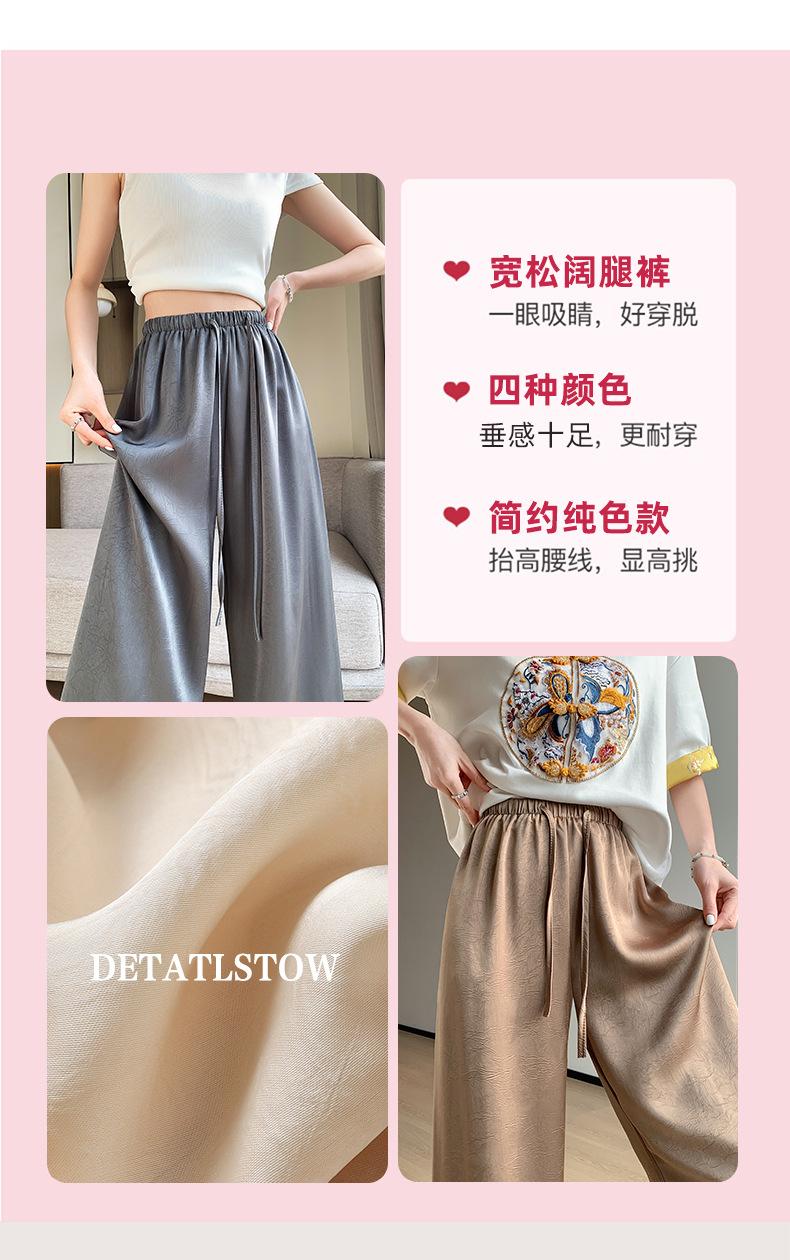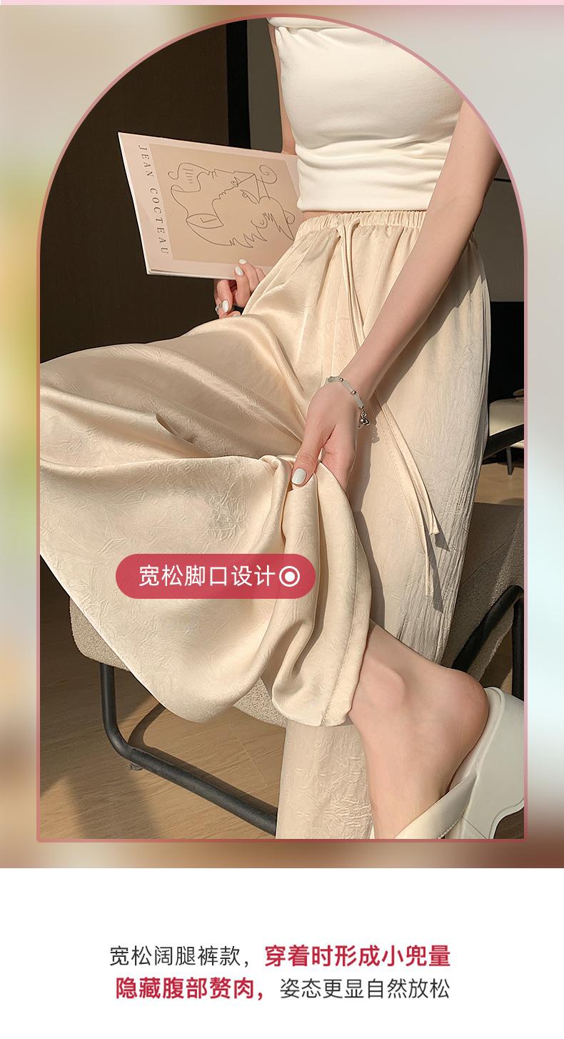 Pantalones anchos de satén jacquard de estilo nacional chino para mujer, novedad de verano 2025, pantalones casuales rectos adelgazantes de cintura alta.