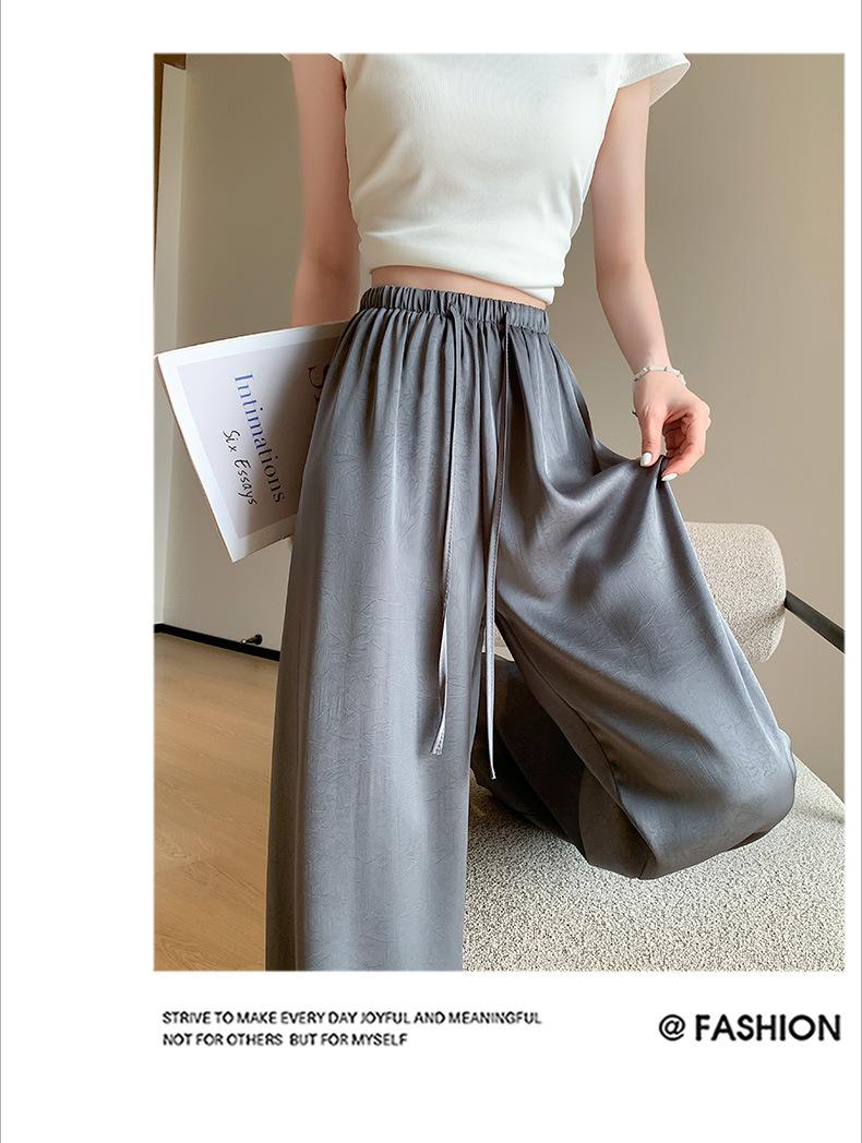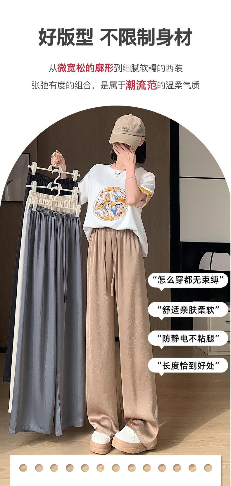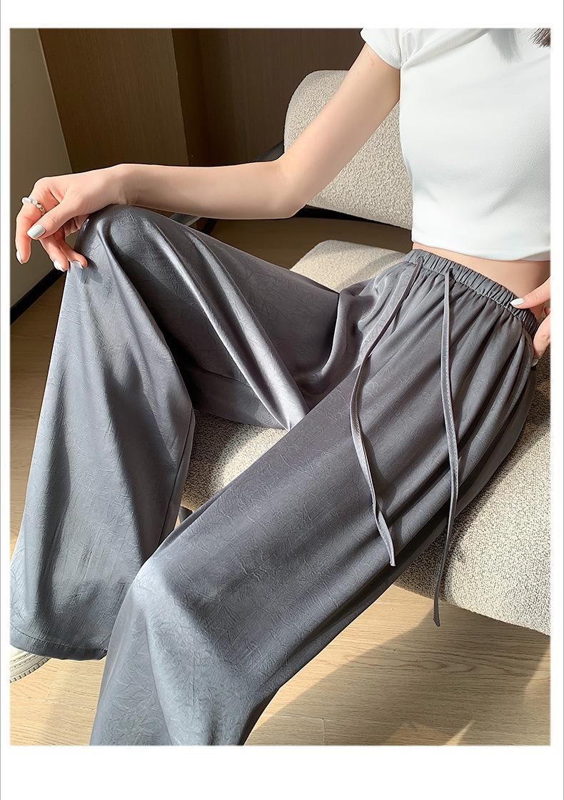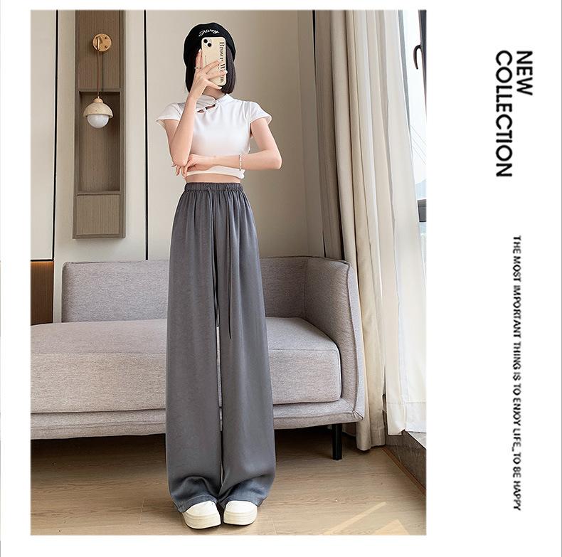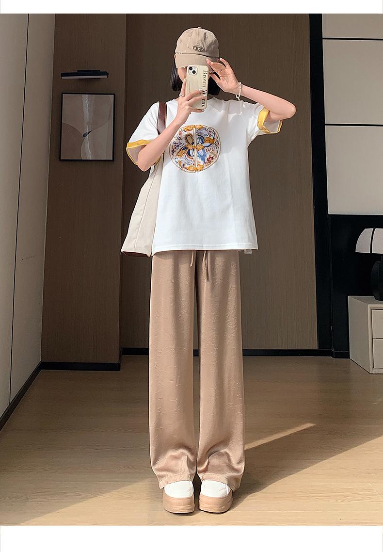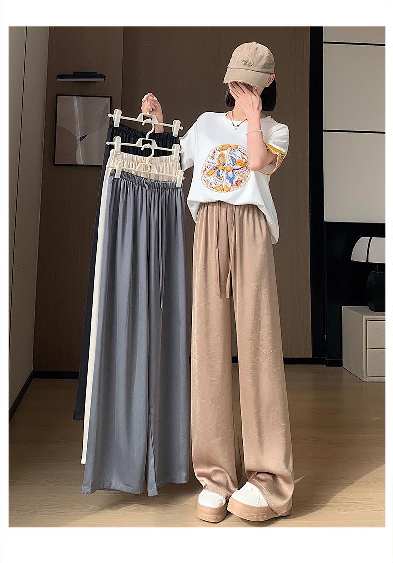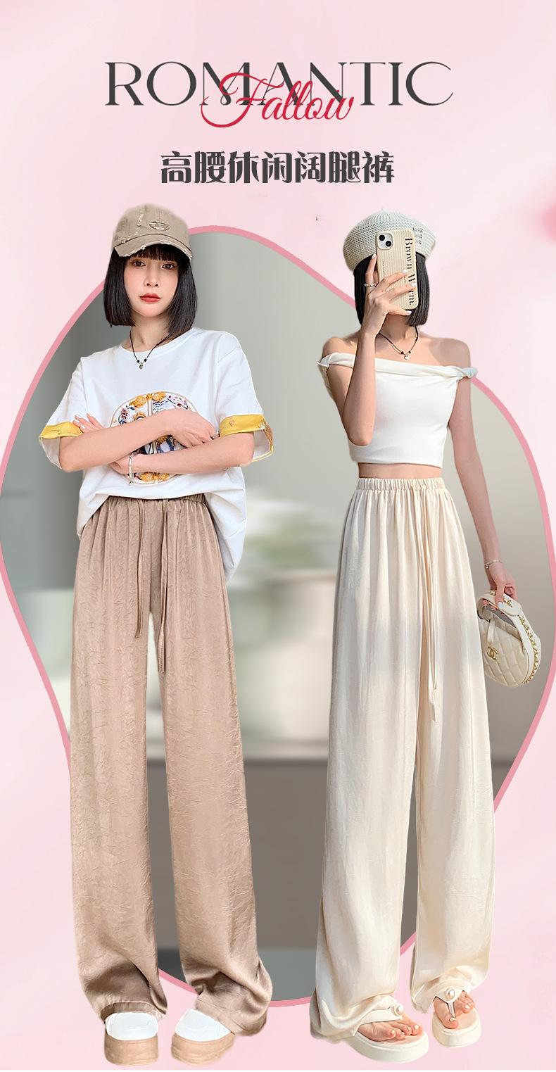 Pantalones anchos de satén jacquard de estilo nacional chino para mujer, novedad de verano 2025, pantalones casuales rectos adelgazantes de cintura alta.