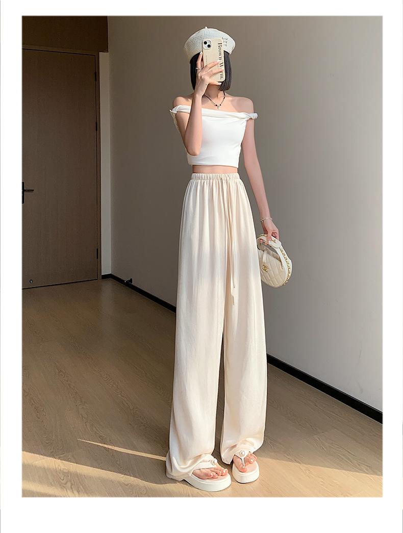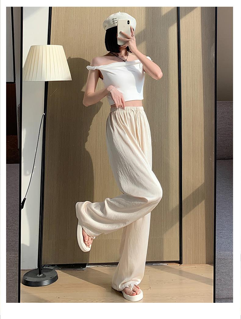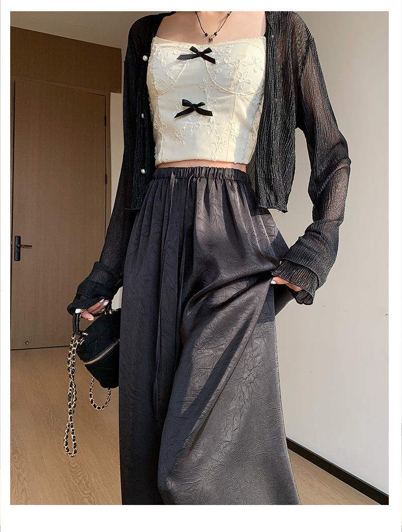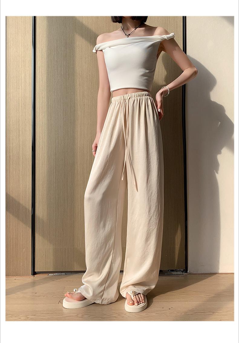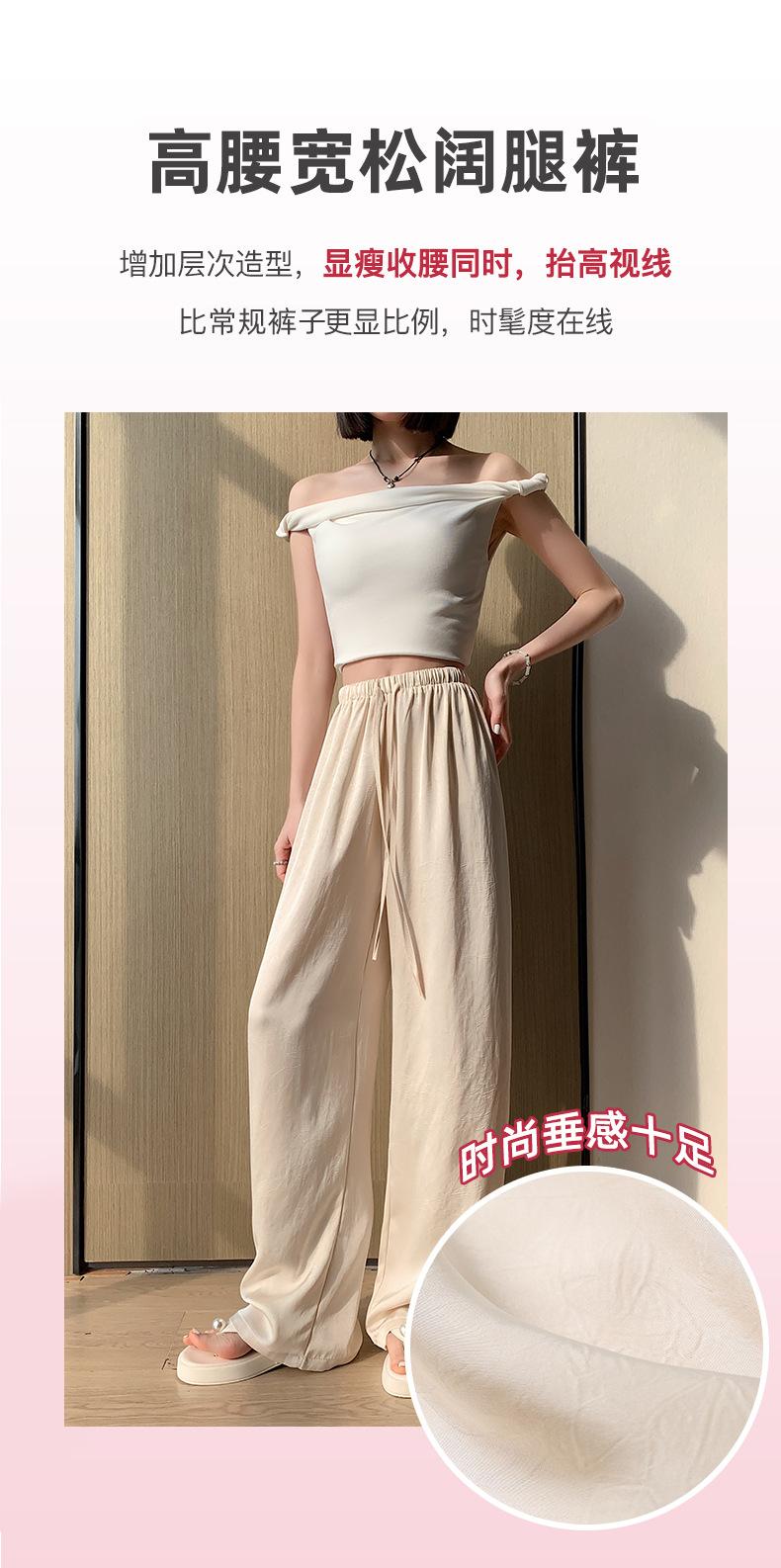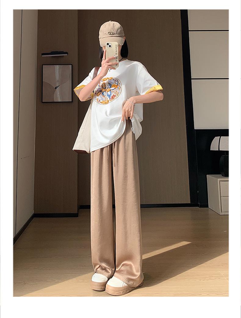 Pantalones anchos de satén jacquard de estilo nacional chino para mujer, novedad de verano 2025, pantalones casuales rectos adelgazantes de cintura alta.