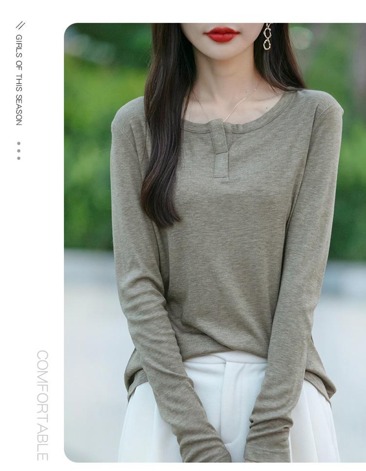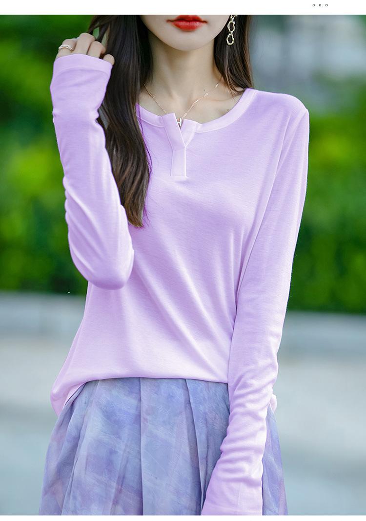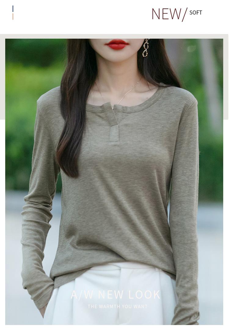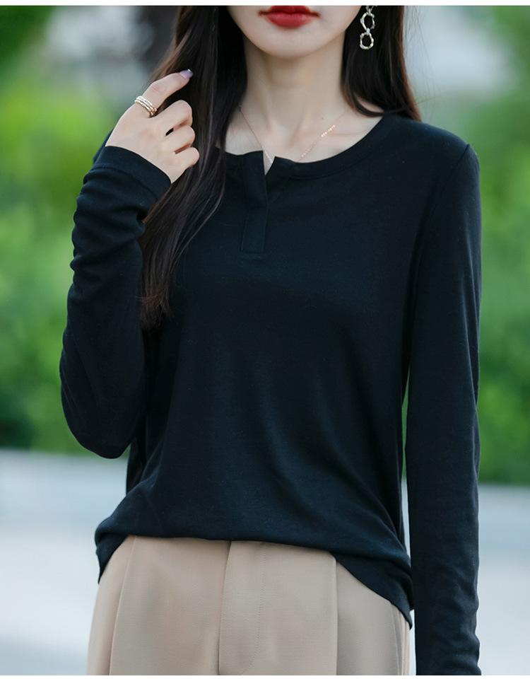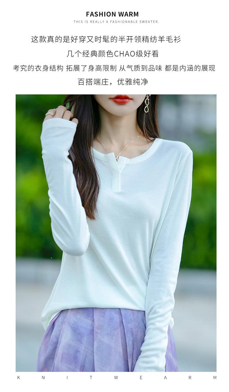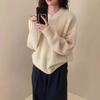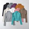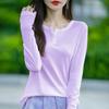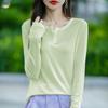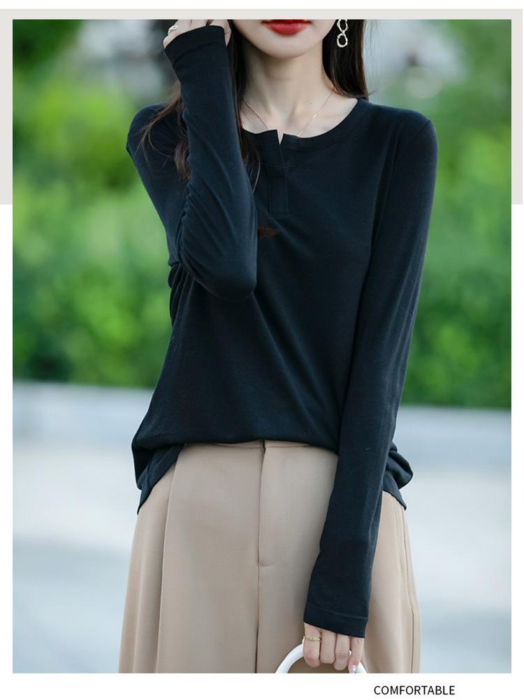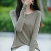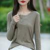Punto de Punto de Cuello Medio Abierto de Primavera 2025 Transfronterizo Manga Larga Color Puro Jersey Holgado Camiseta Básica Top para Mujer Verano Mujer