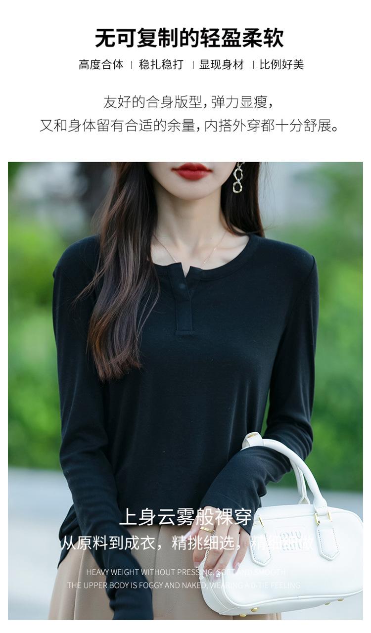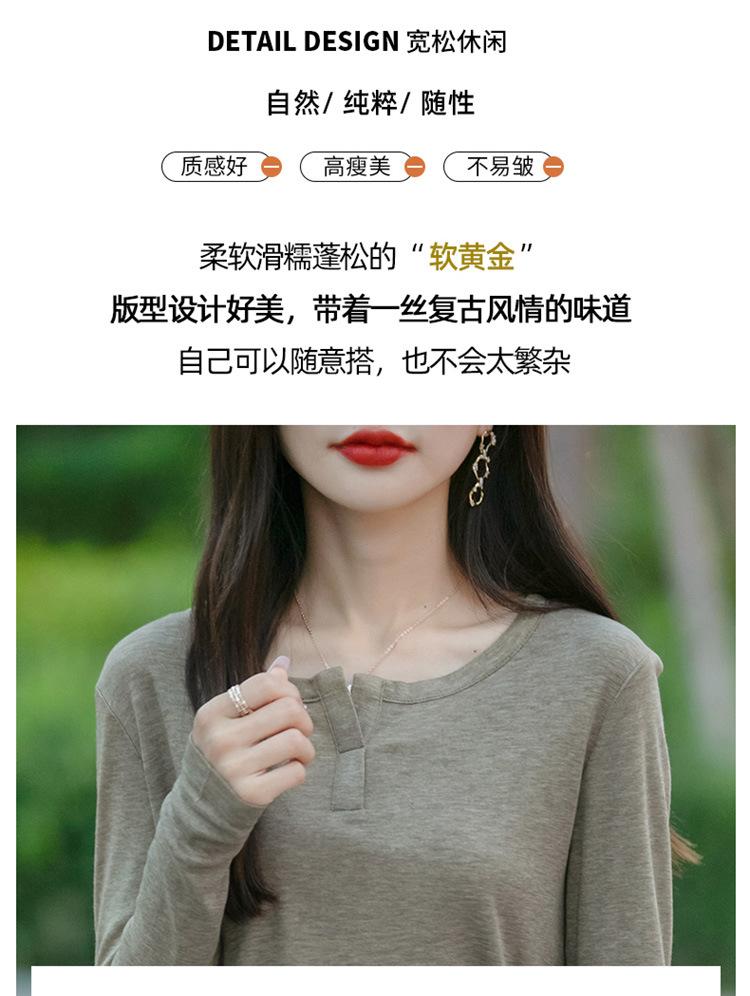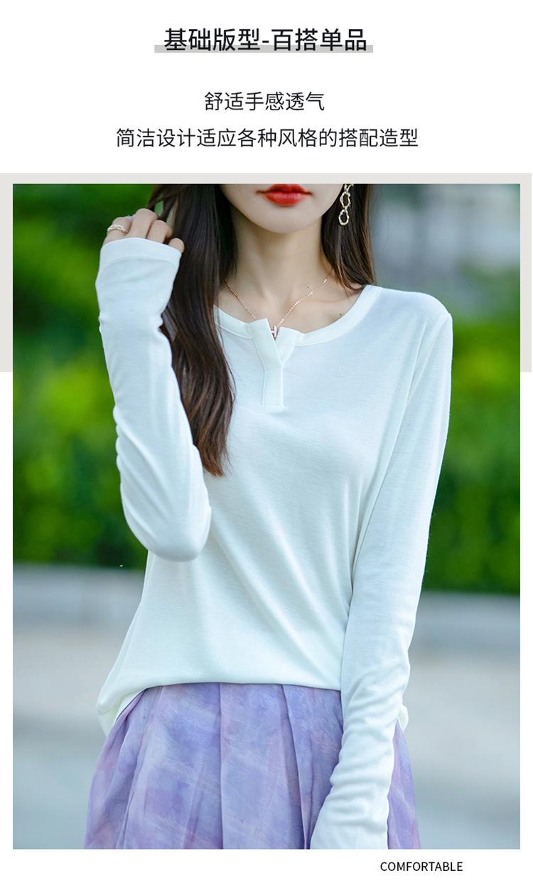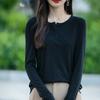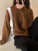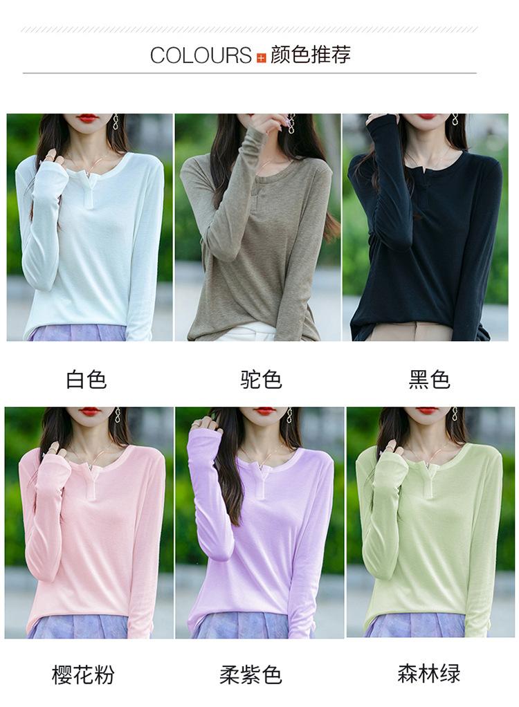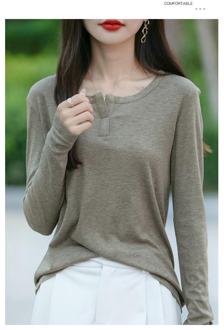 Punto de Punto de Cuello Medio Abierto de Primavera 2025 Transfronterizo Manga Larga Color Puro Jersey Holgado Camiseta Básica Top para Mujer Verano Mujer
