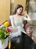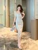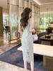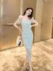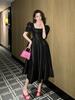 Vestido elegante de verano 2025 para mujer, estilo francés, cuello cuadrado, corte entallado, de encaje, estilo socialité, largo y chic, 20587
