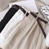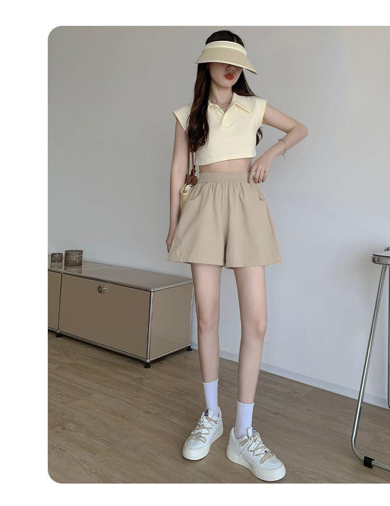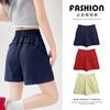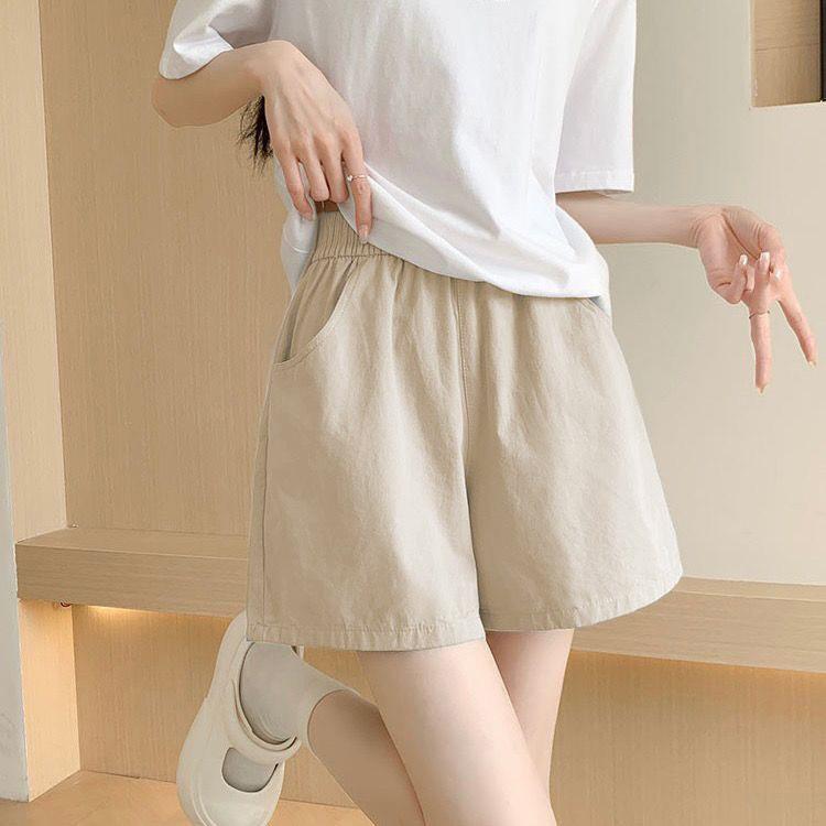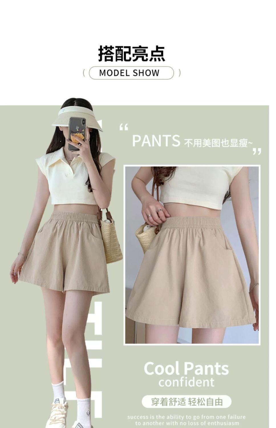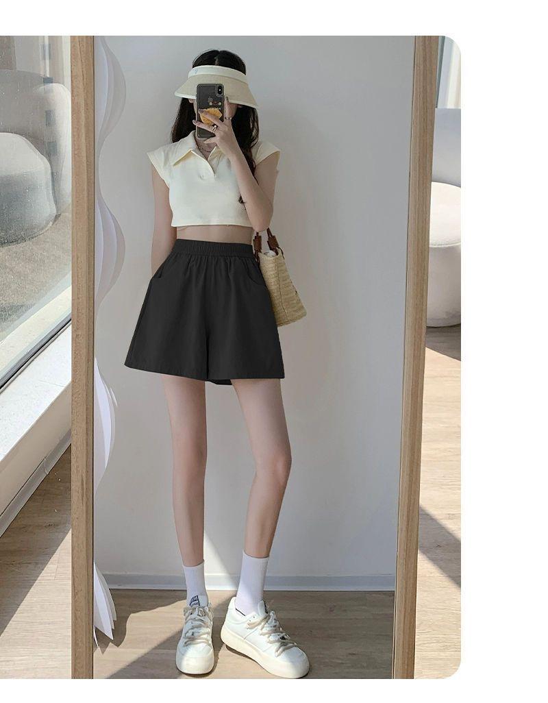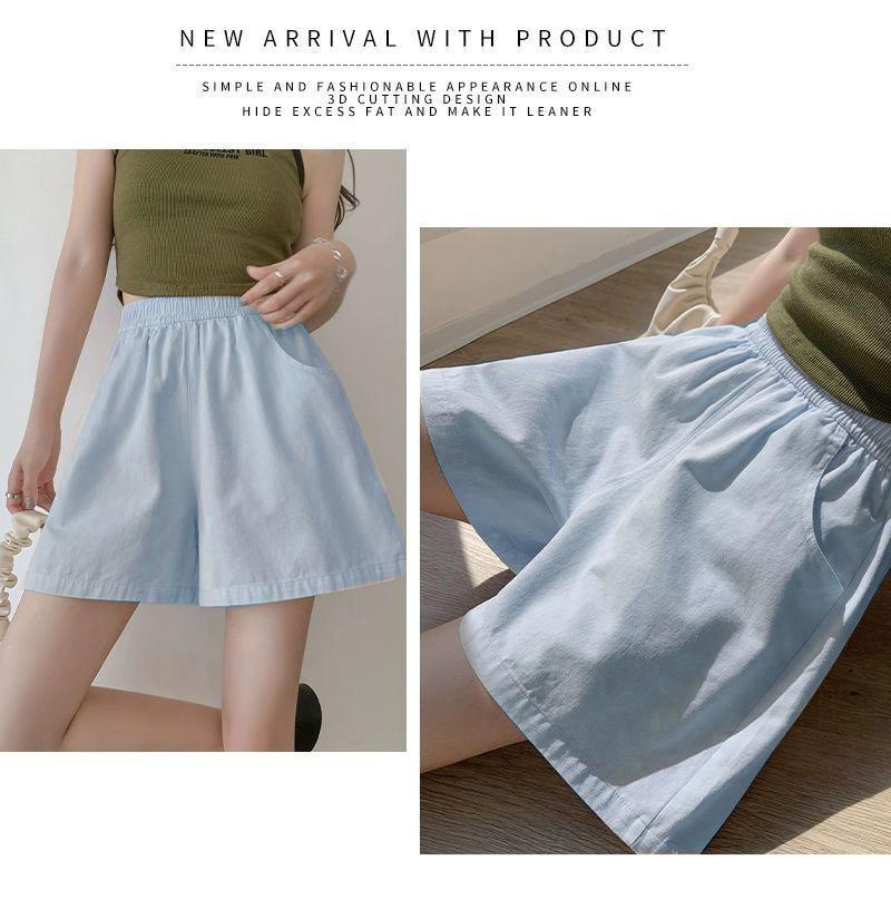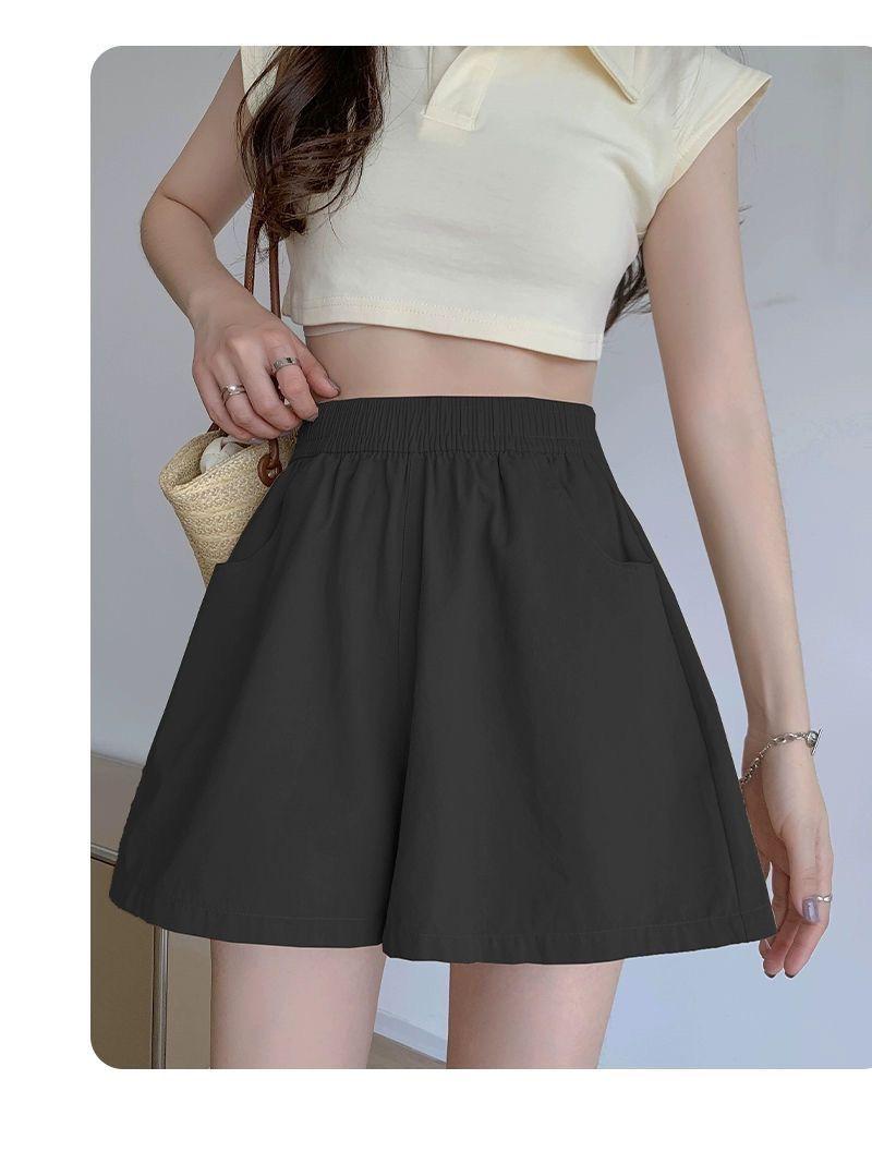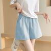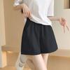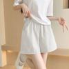 Pantalones cortos holgados de seda helada de verano, de pierna ancha y longitud media, informales, deportivos, de tres puntos, de color liso, con bolsillos para mujer