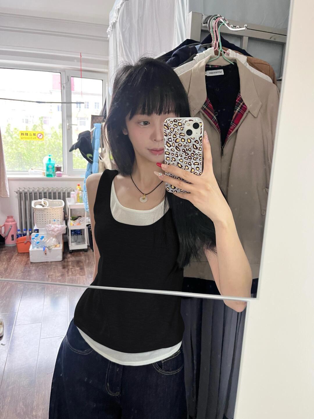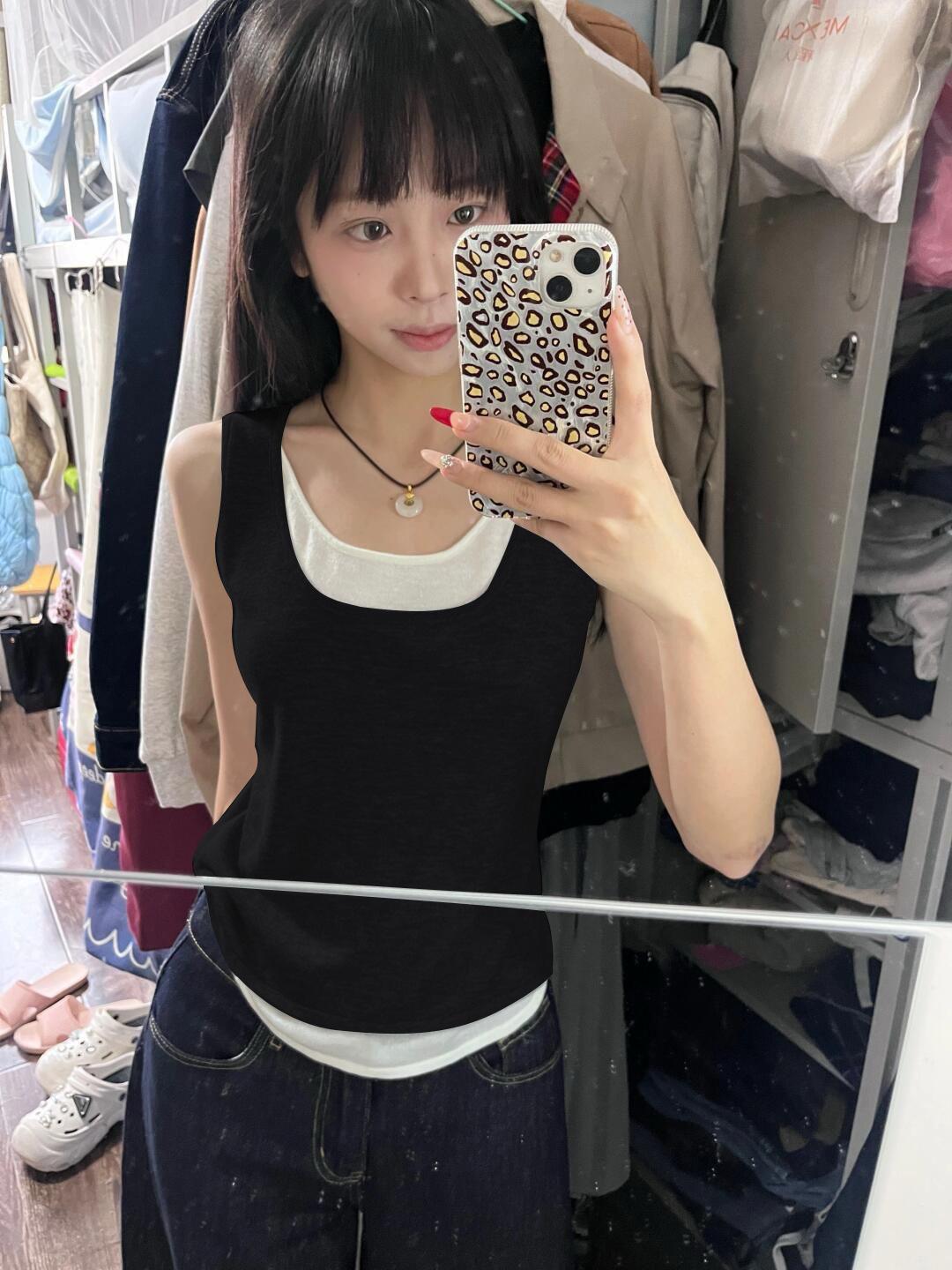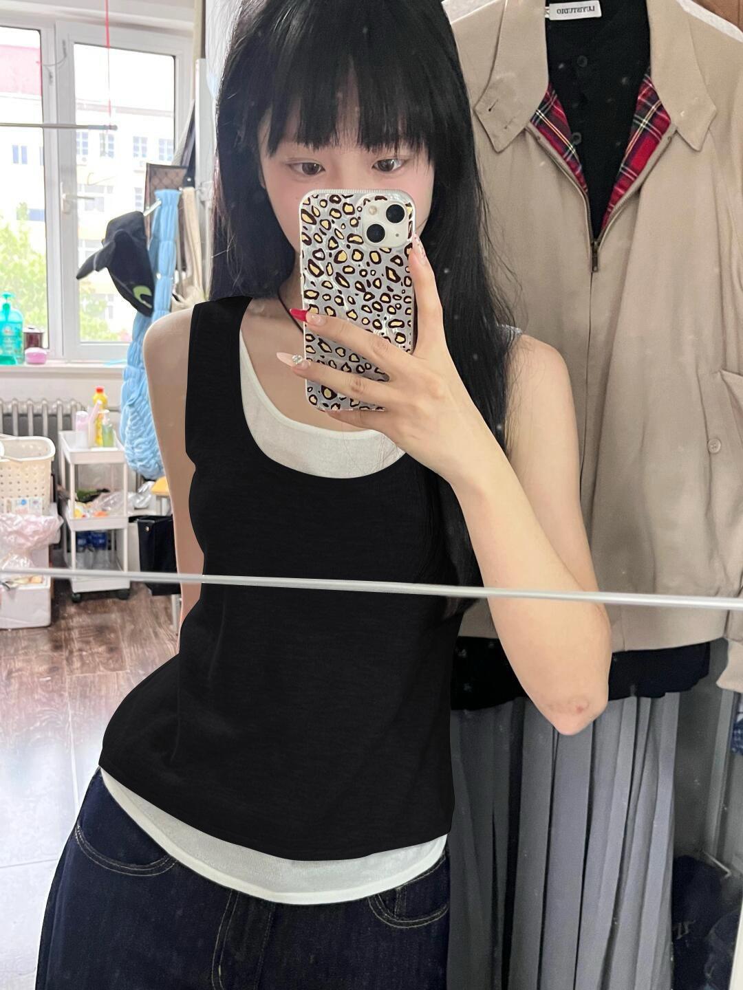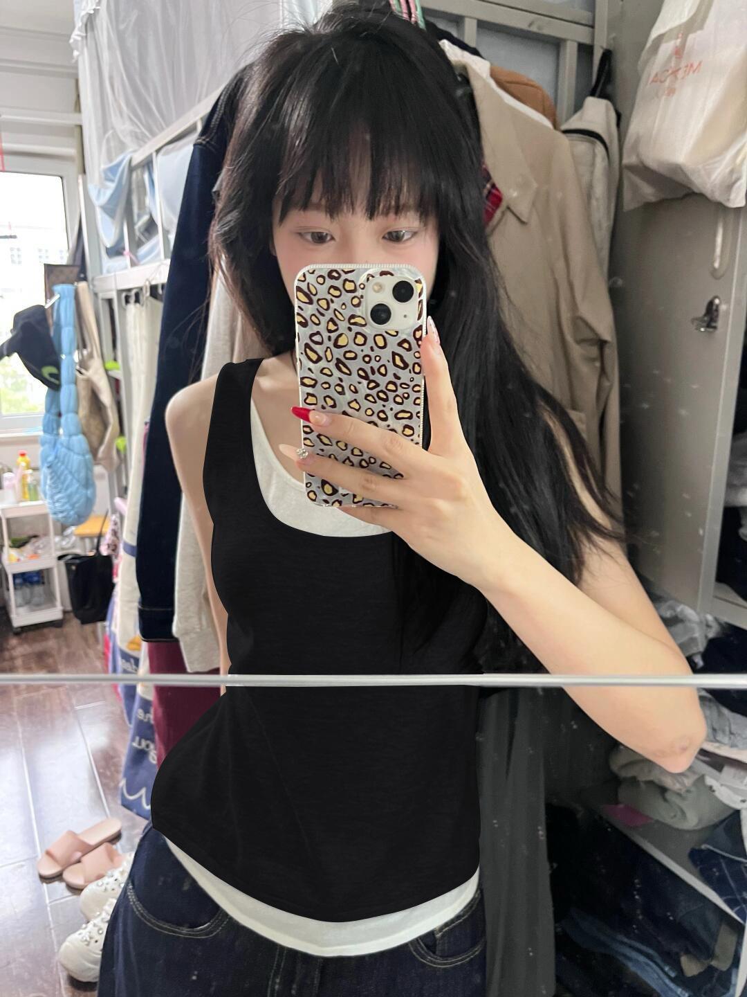 Camisola de dos piezas con escote en U, sin mangas, interior con espalda hermosa, estilo Pure Desire Hot Girl, top sexy de nicho que combina con todo.