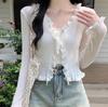 La tapeta del cárdigan es ajustada y plana, y los ojales son exquisitos y elegantes.