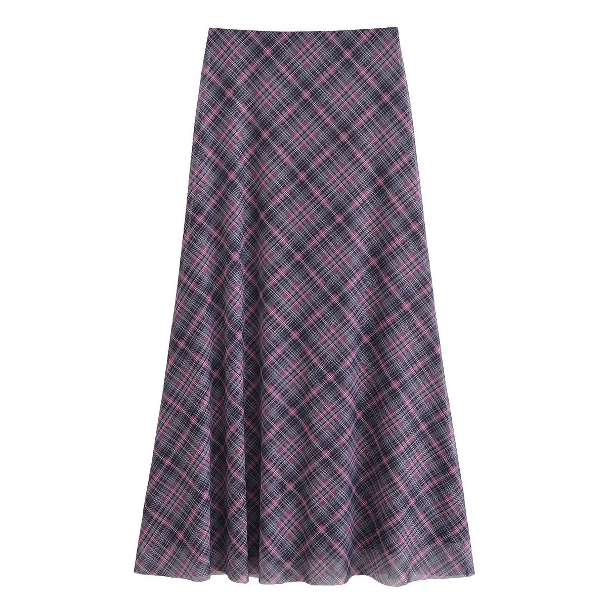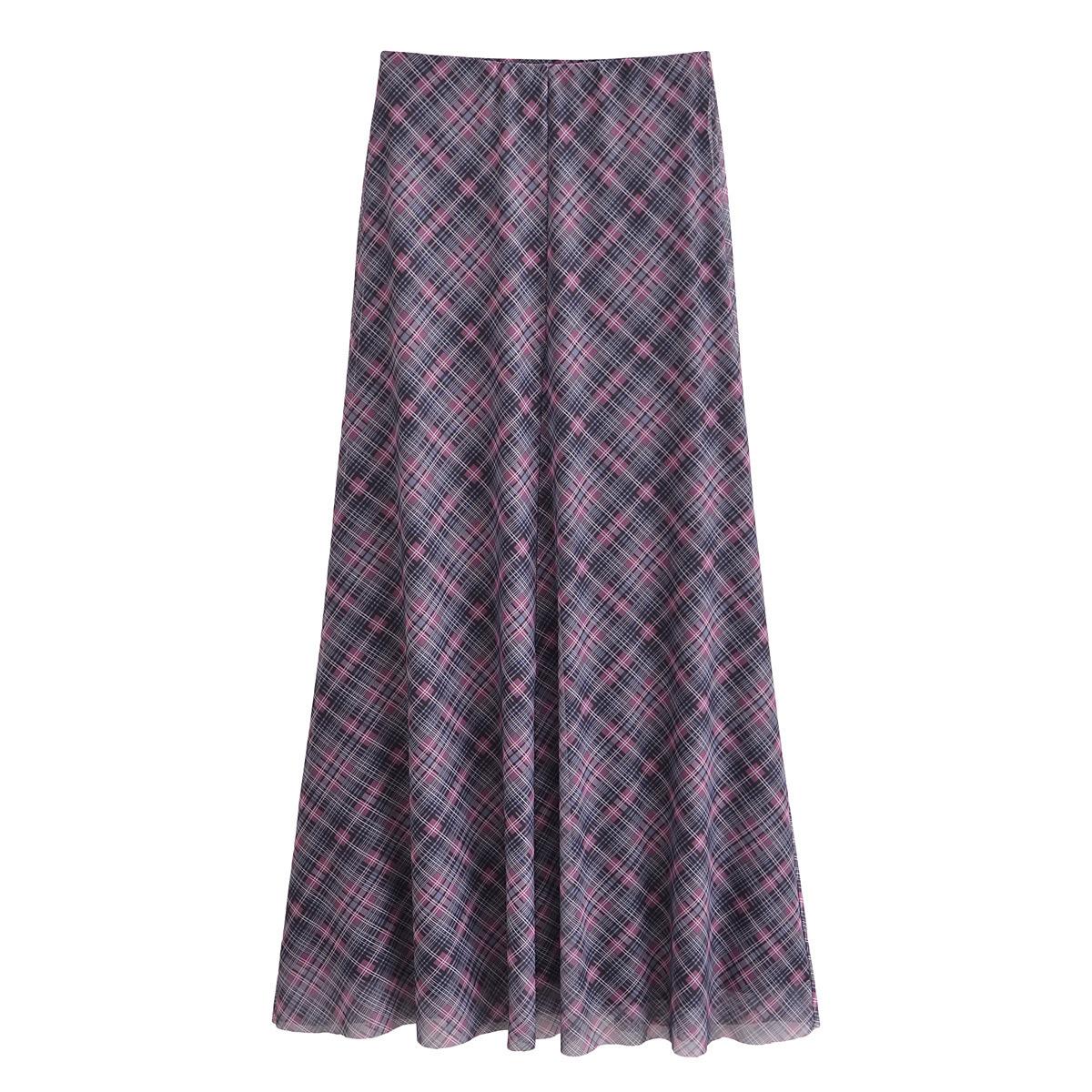 Ropa de Mujer Transfronteriza Nueva Primavera 2025 Europea y Americana Moda Urbana Casual Falda de Malla de Seda a Cuadros w09 11177