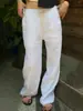 Pantalones anchos de lino blanco para mujer, pantalones casuales holgados de cintura alta de verano, pantalones drapeados extendidos de algodón y lino, pantalones de fregado