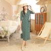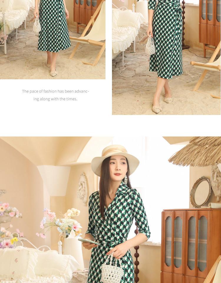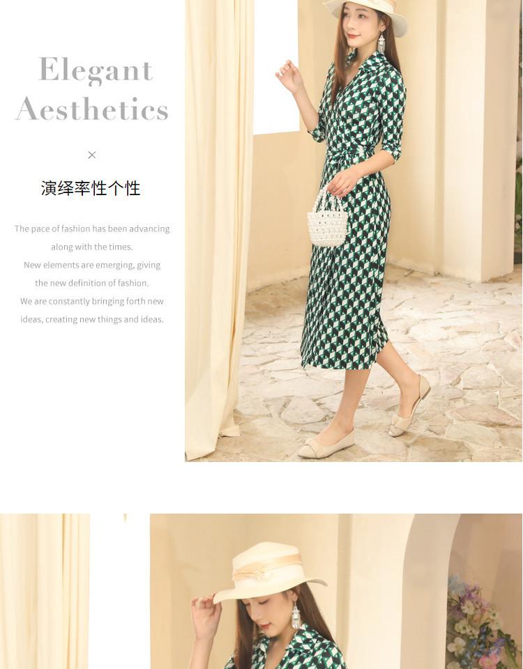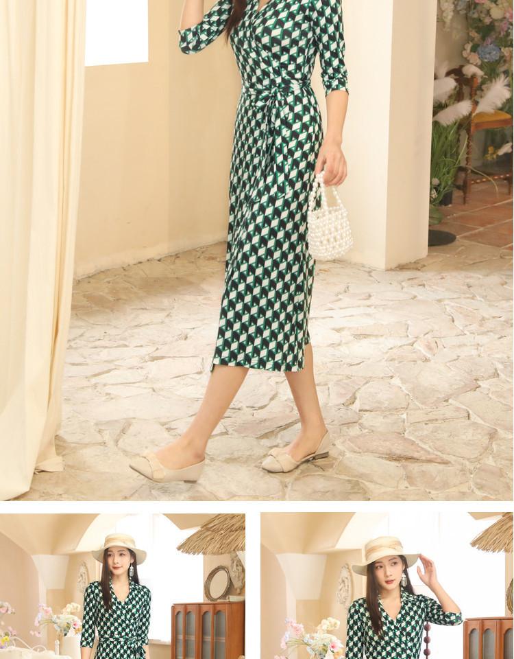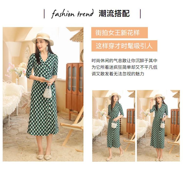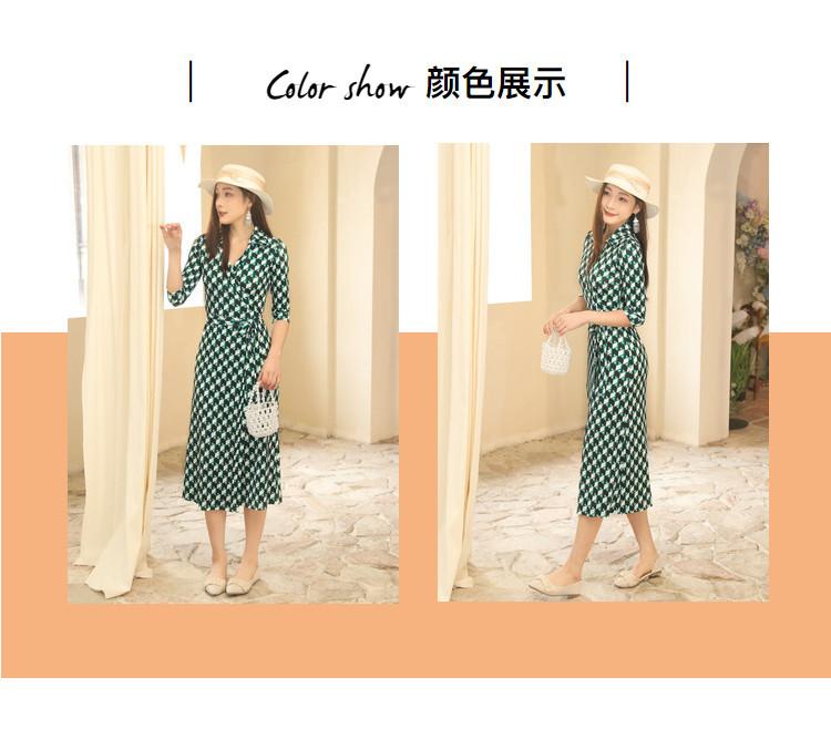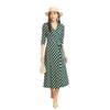 Vestido elegante francés de solapa con cuadros verdes, sencillo, con cintura generosa y cordones, primavera 2025, nuevo