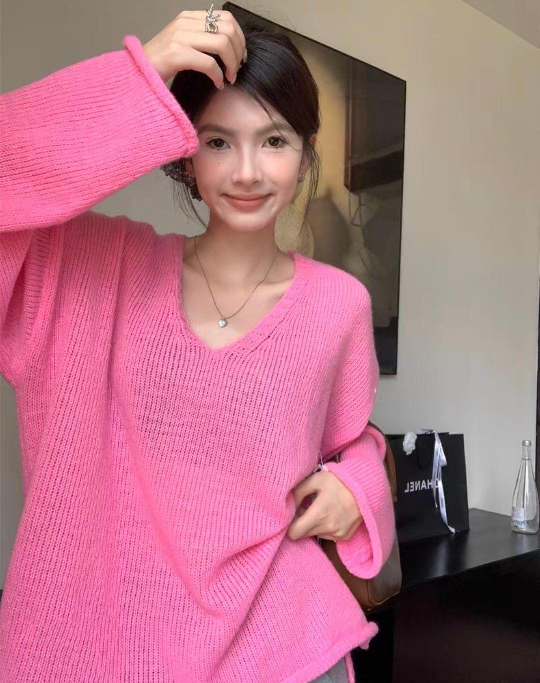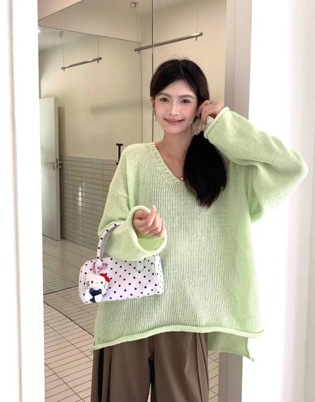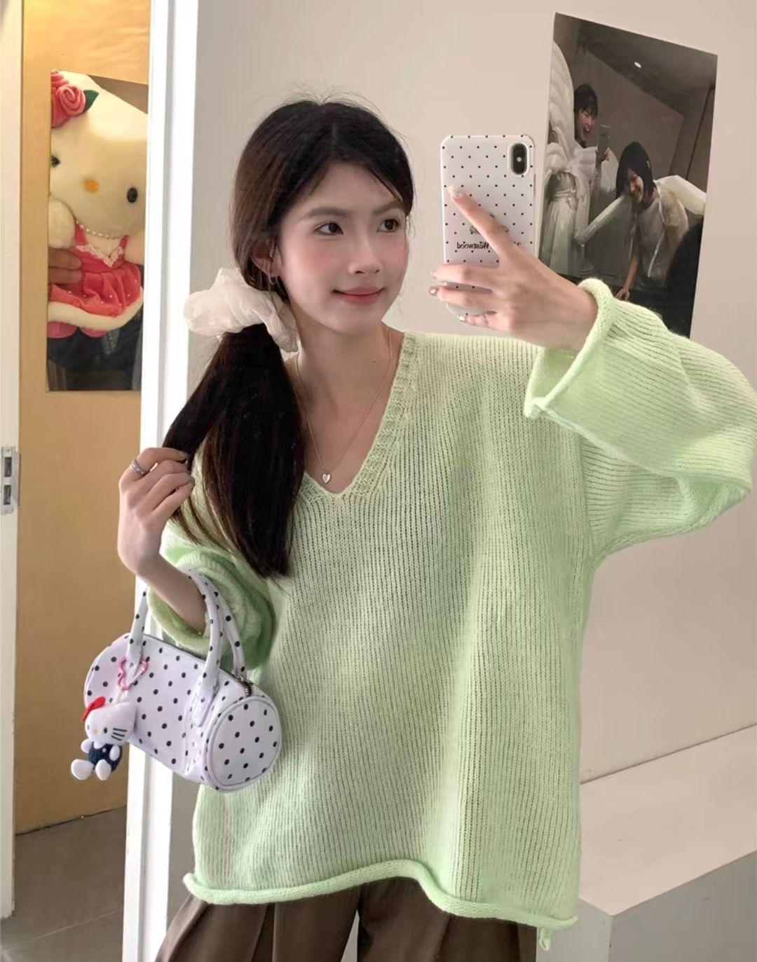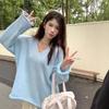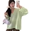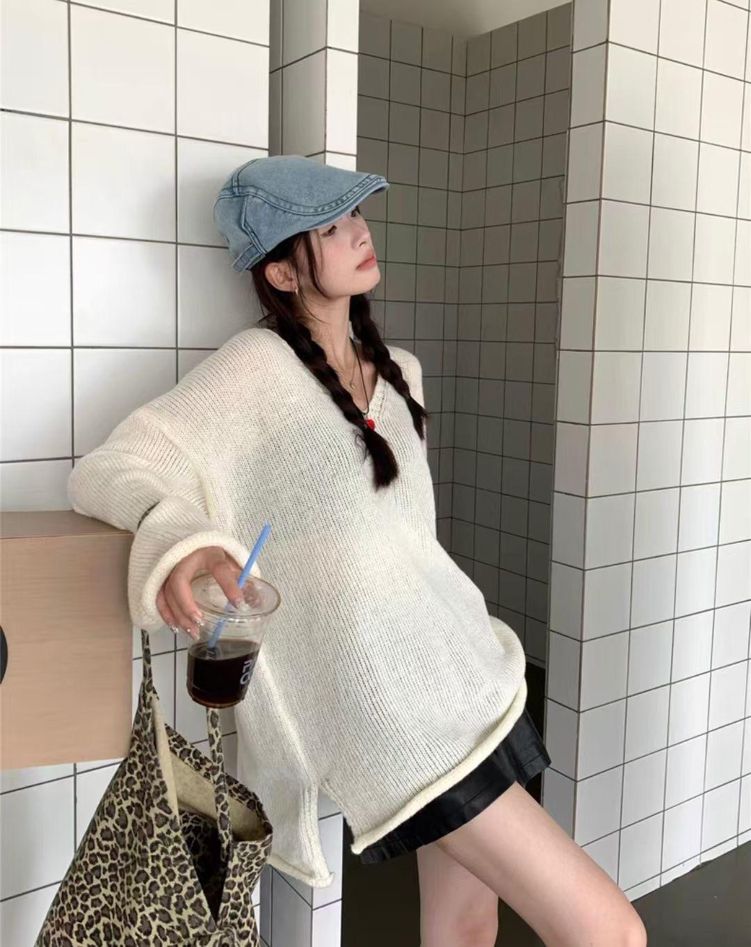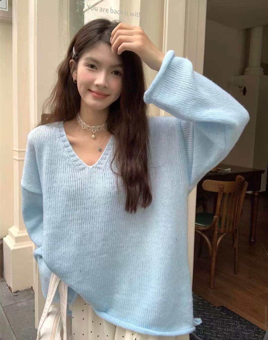 Suéter coreano de cuello en V, estilo holgado, fino, liso, 2025, combina con todo, tendencia 949