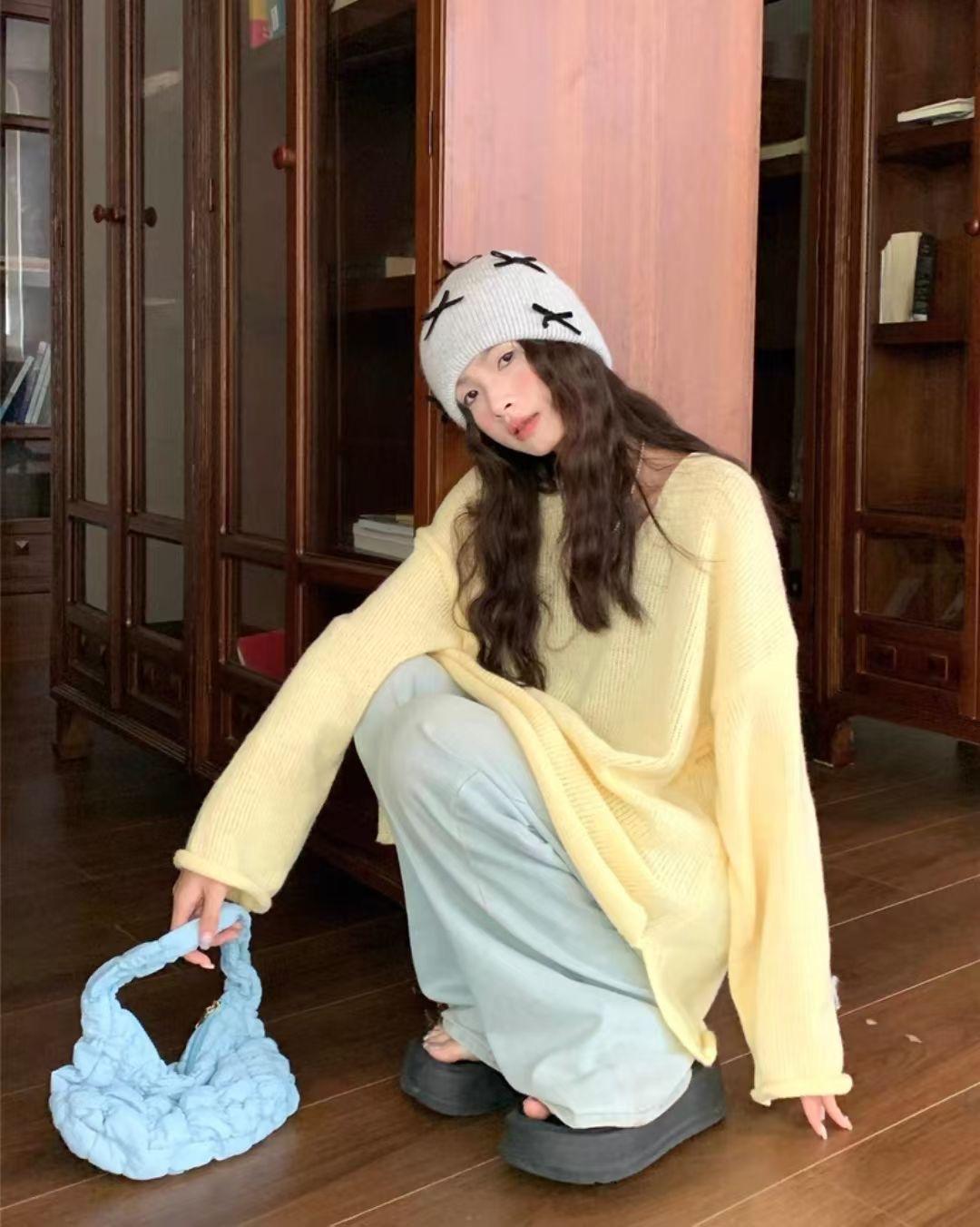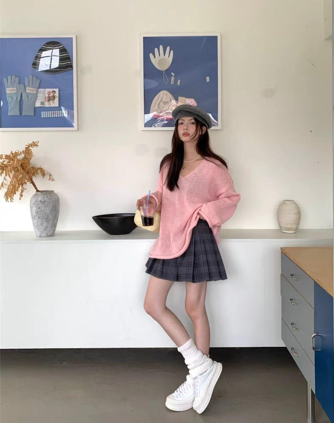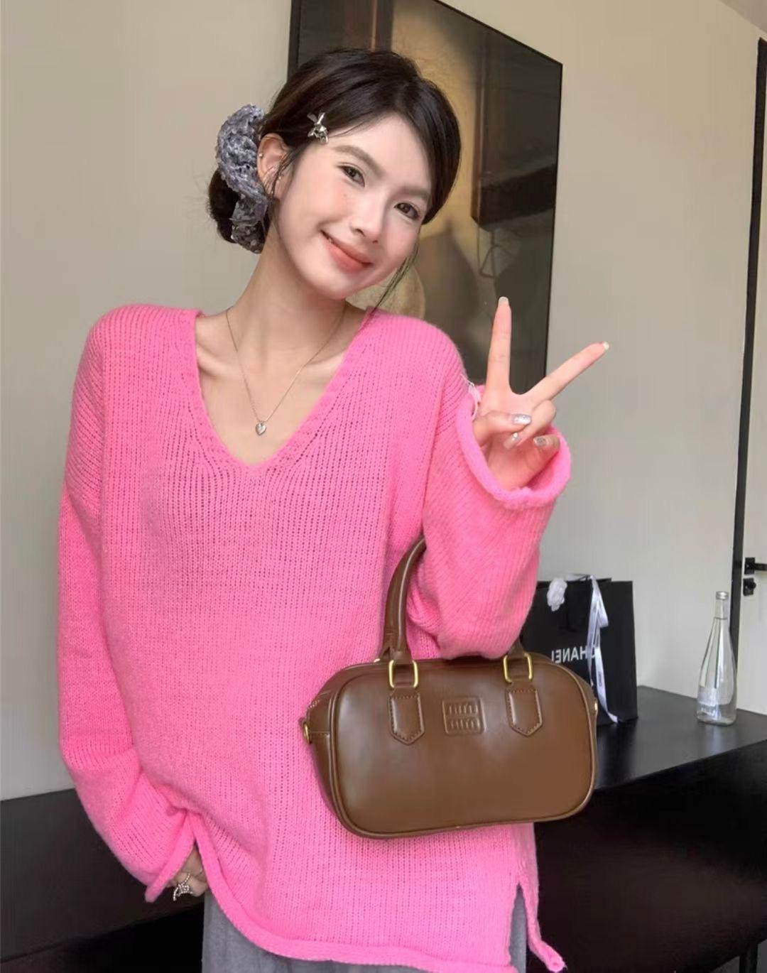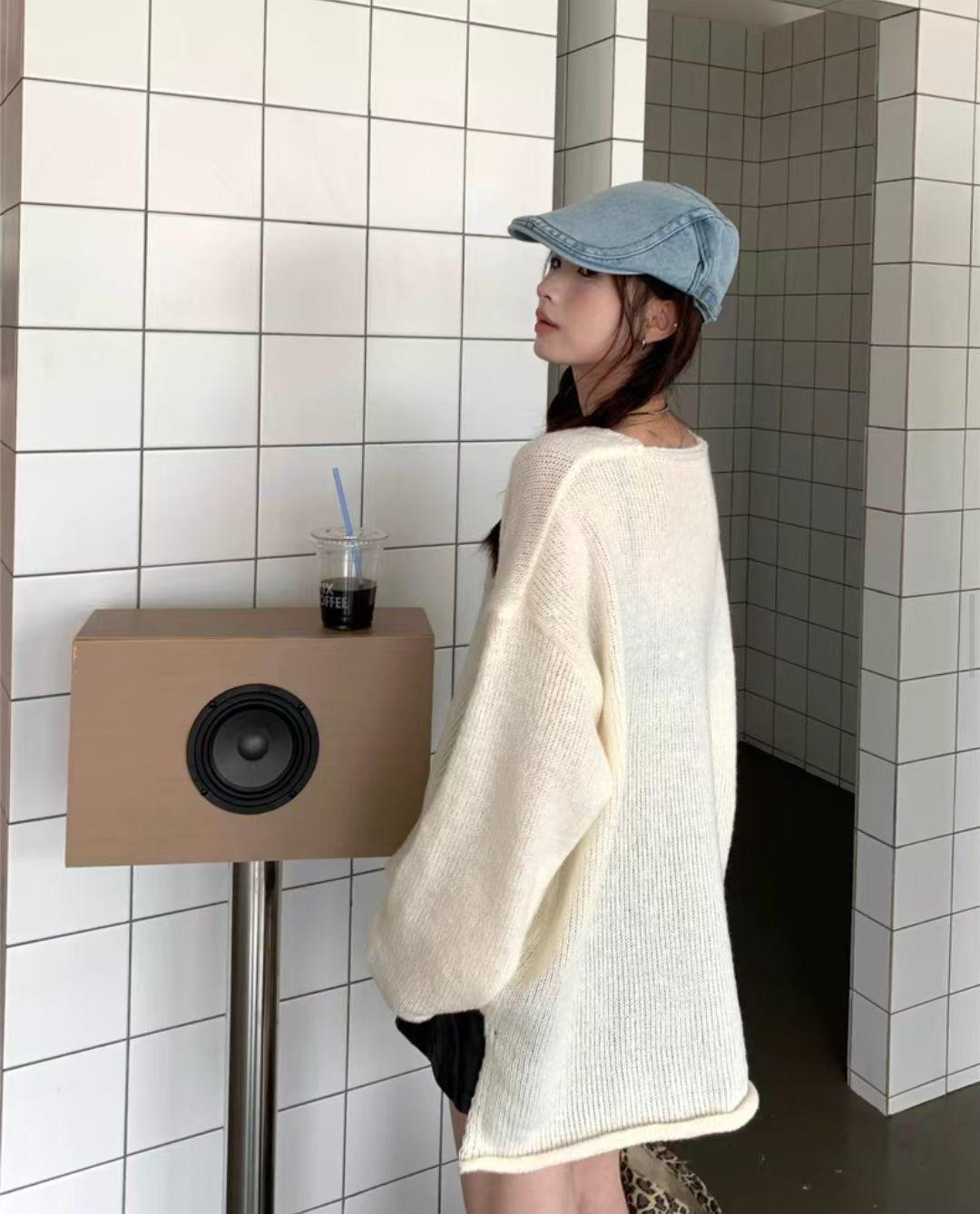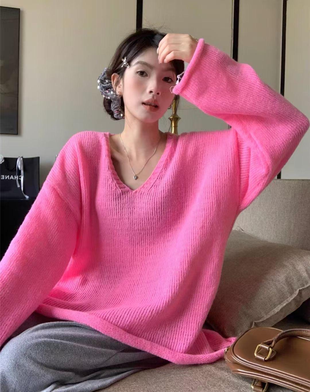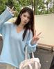 Suéter coreano de cuello en V, estilo holgado, fino, liso, 2025, combina con todo, tendencia 949