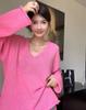 Rose pink rolled v-neck thin sweater