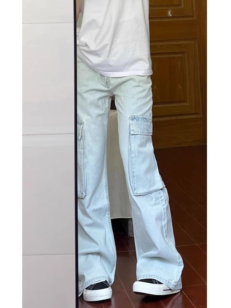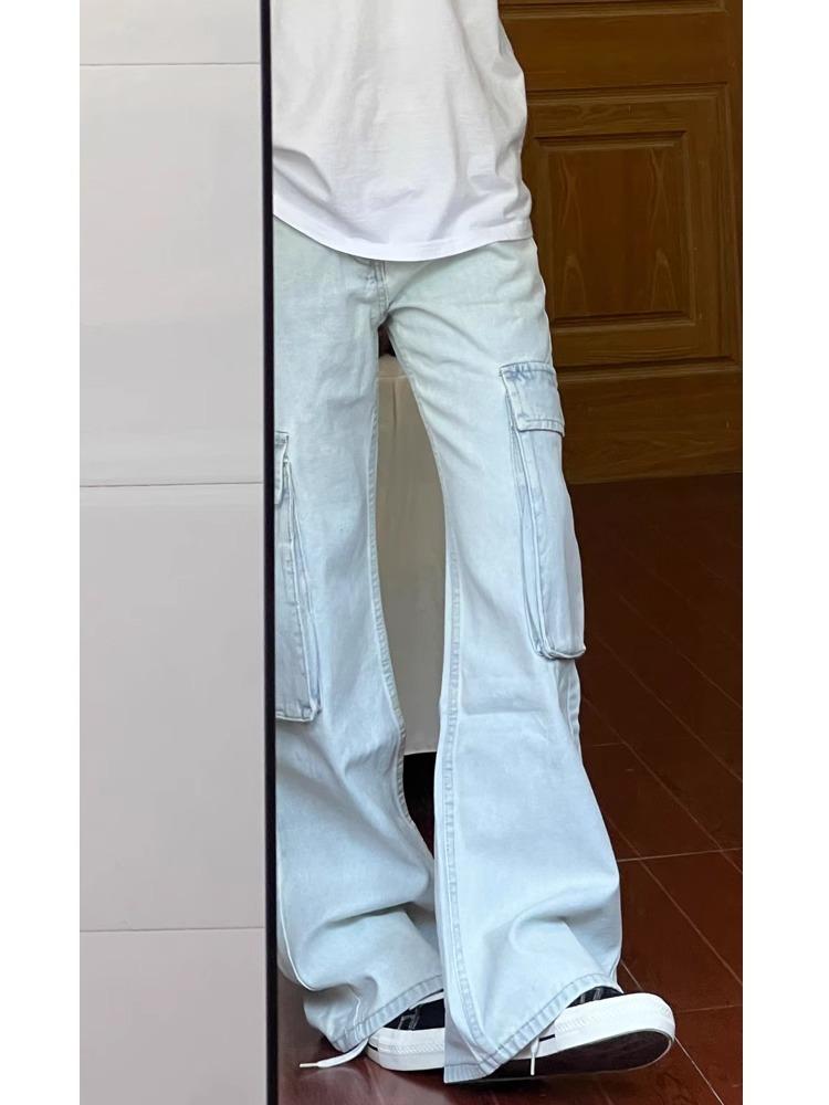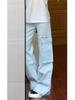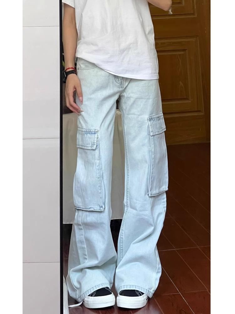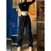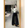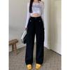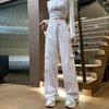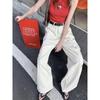 Monos de pierna ancha estilo americano retro de color claro para mujer, pantalones rectos holgados, adelgazantes, de cintura alta y combinables para otoño.