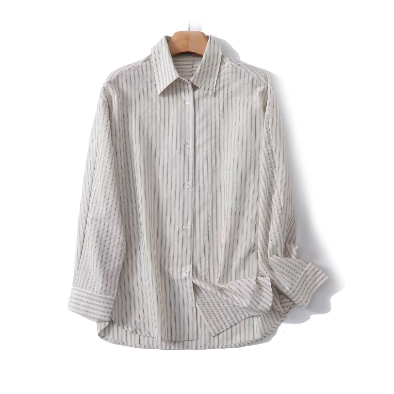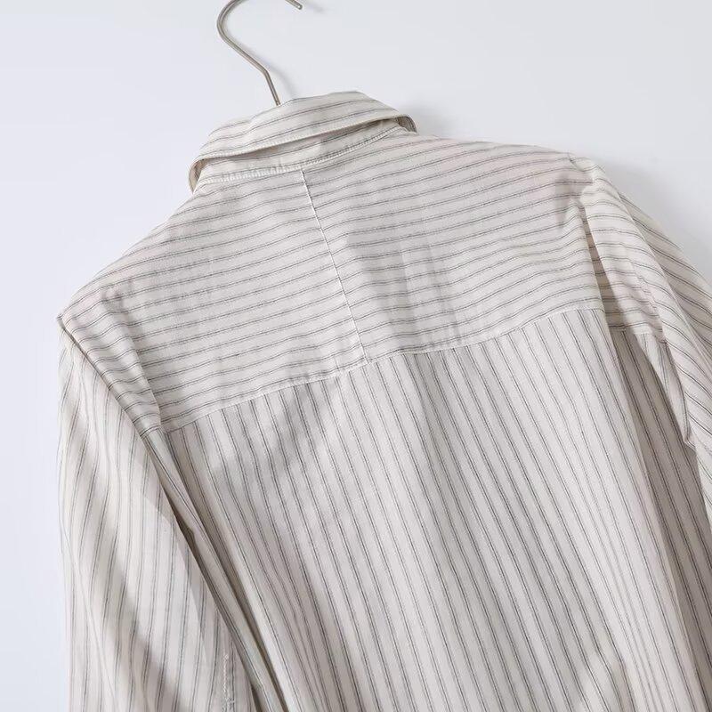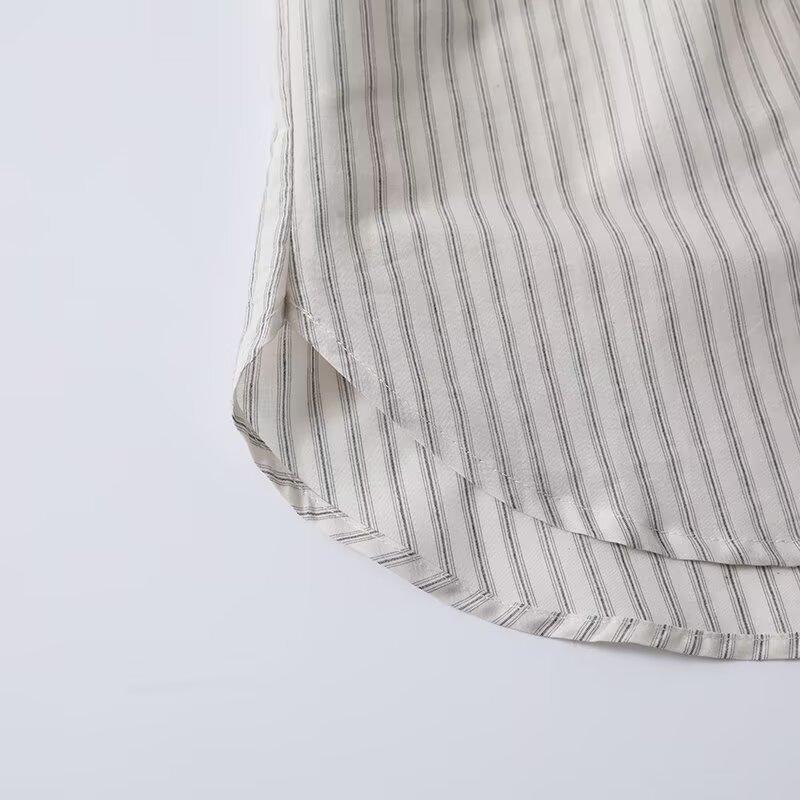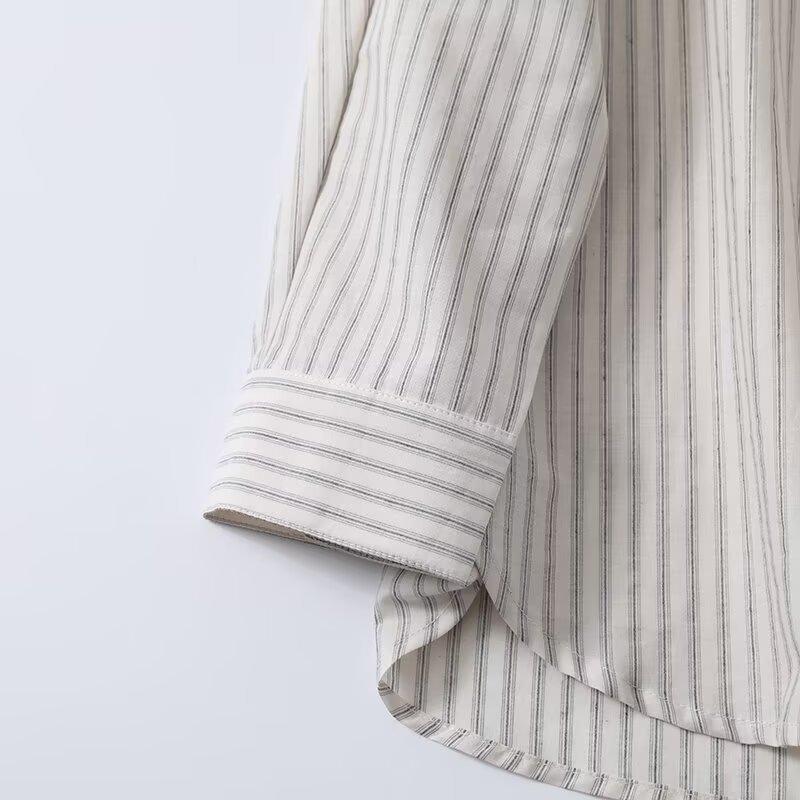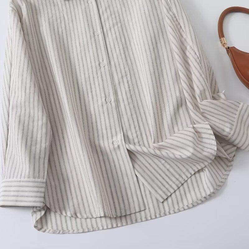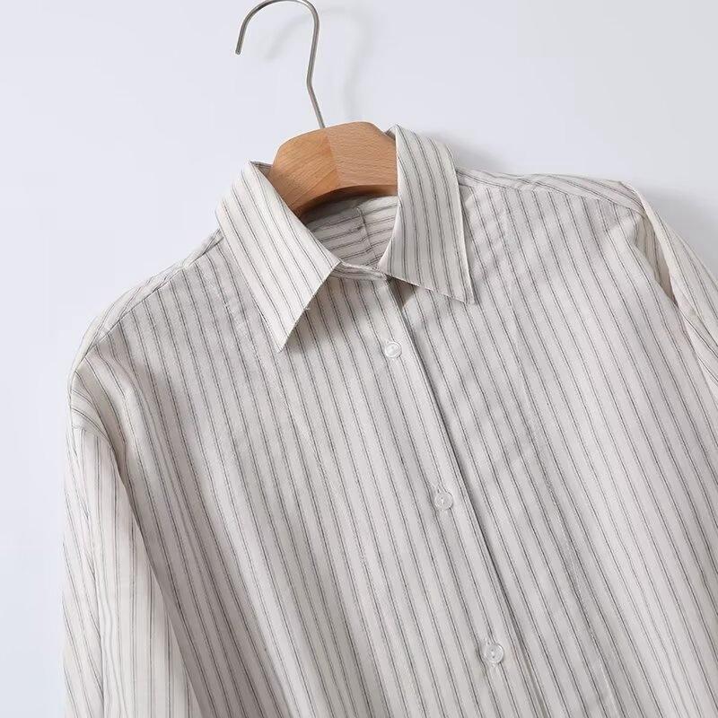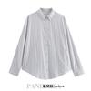 Camisa a rayas de manga larga con solapa, informal, elegante y combinable para mujer europea y americana de primavera 2025.