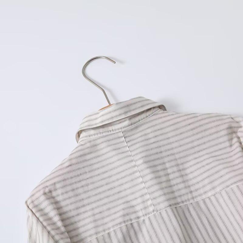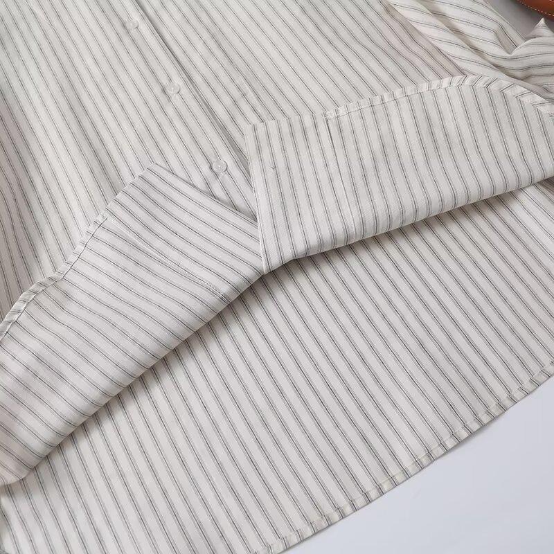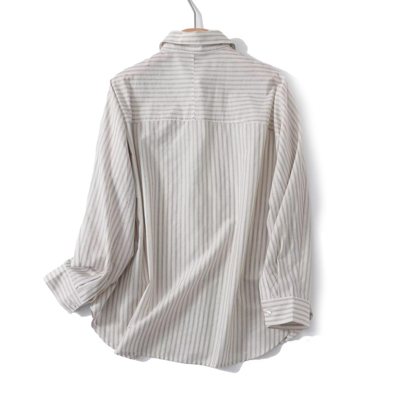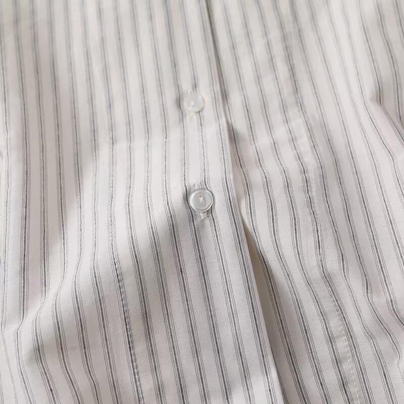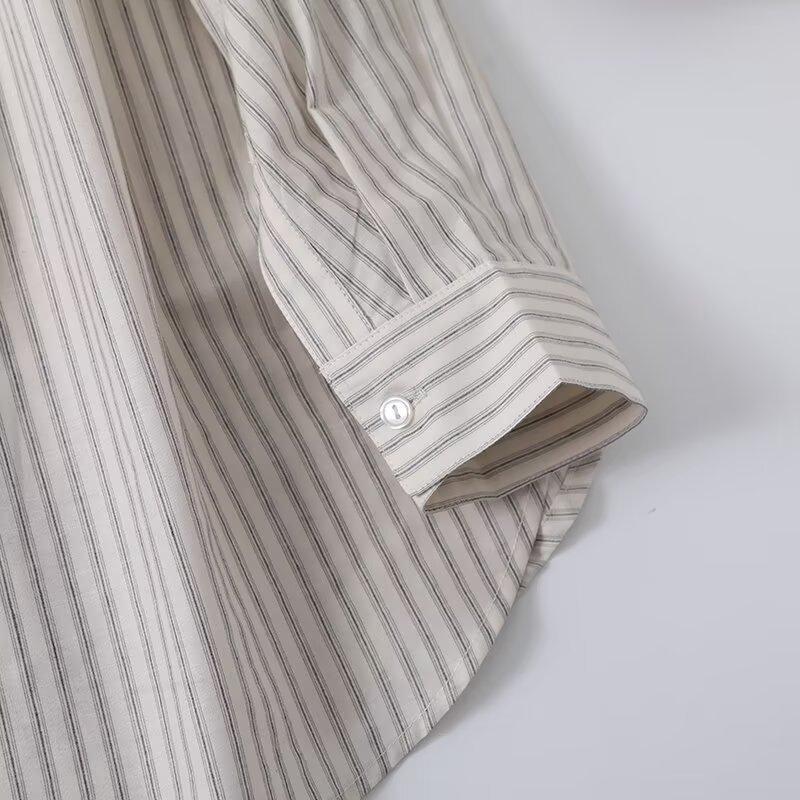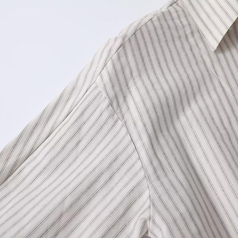 Camisa a rayas de manga larga con solapa, informal, elegante y combinable para mujer europea y americana de primavera 2025.